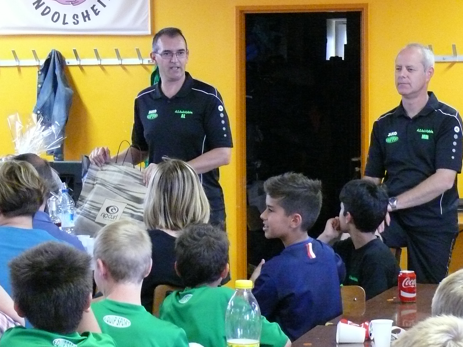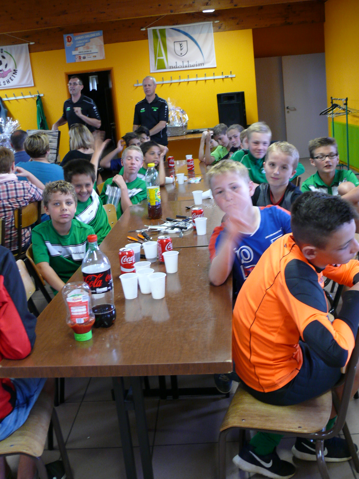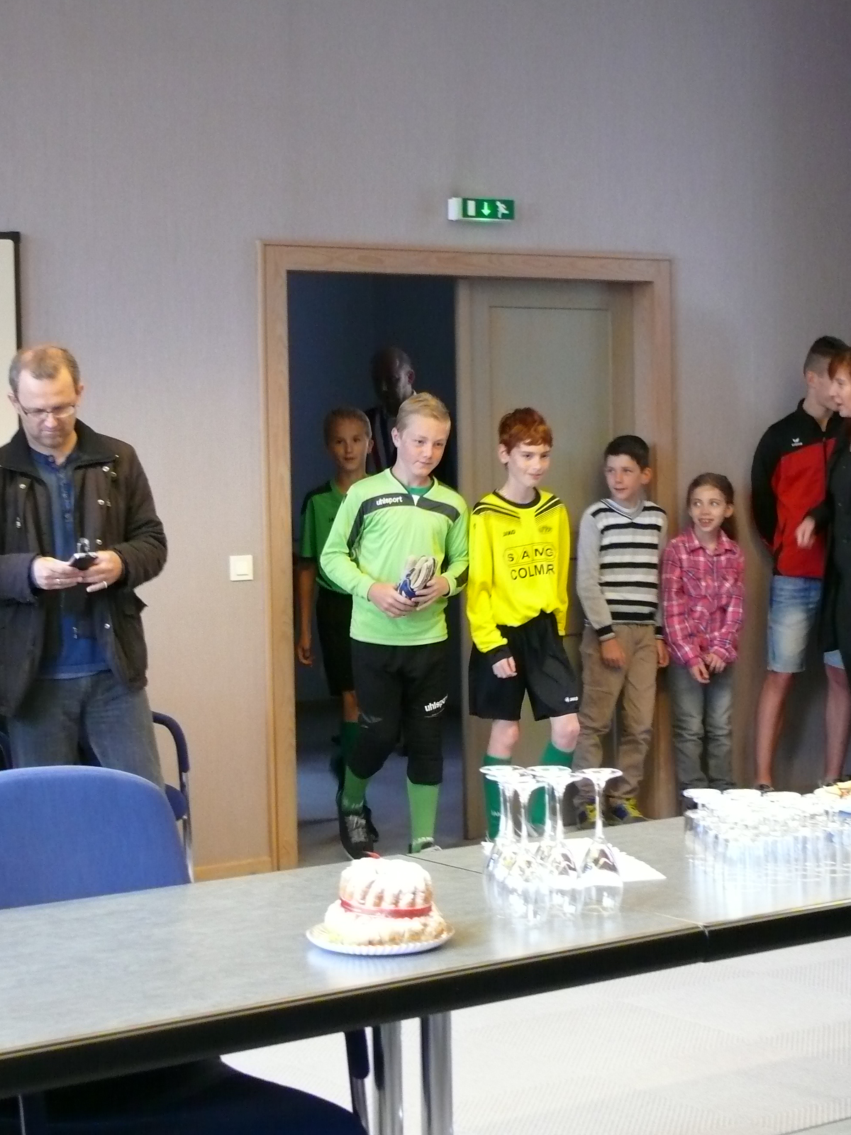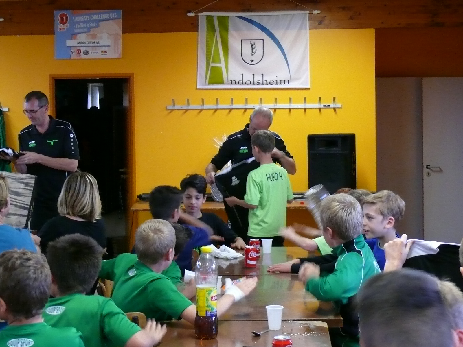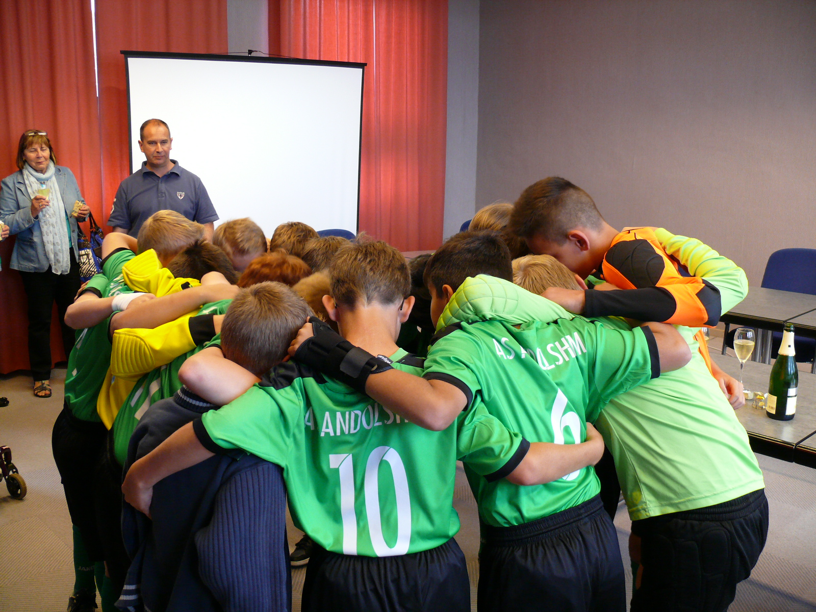 Après le vin d’honneur offert par la municipalité, joueurs et sympathisants se sont retrouvés au club-house de l’ASA autour d’un repas organisé par les parents. Ces derniers ont offert un magnifique panier garni aux éducateurs et chaque joueur s’est vu remettre un T-shirt du club avec son numéro et ses initiales. Le Président Francis Bonzon et la secrétaire de l’ASA Fabienne Fleith étaient invités à participer ce moment fort convivial pour clore la saison.