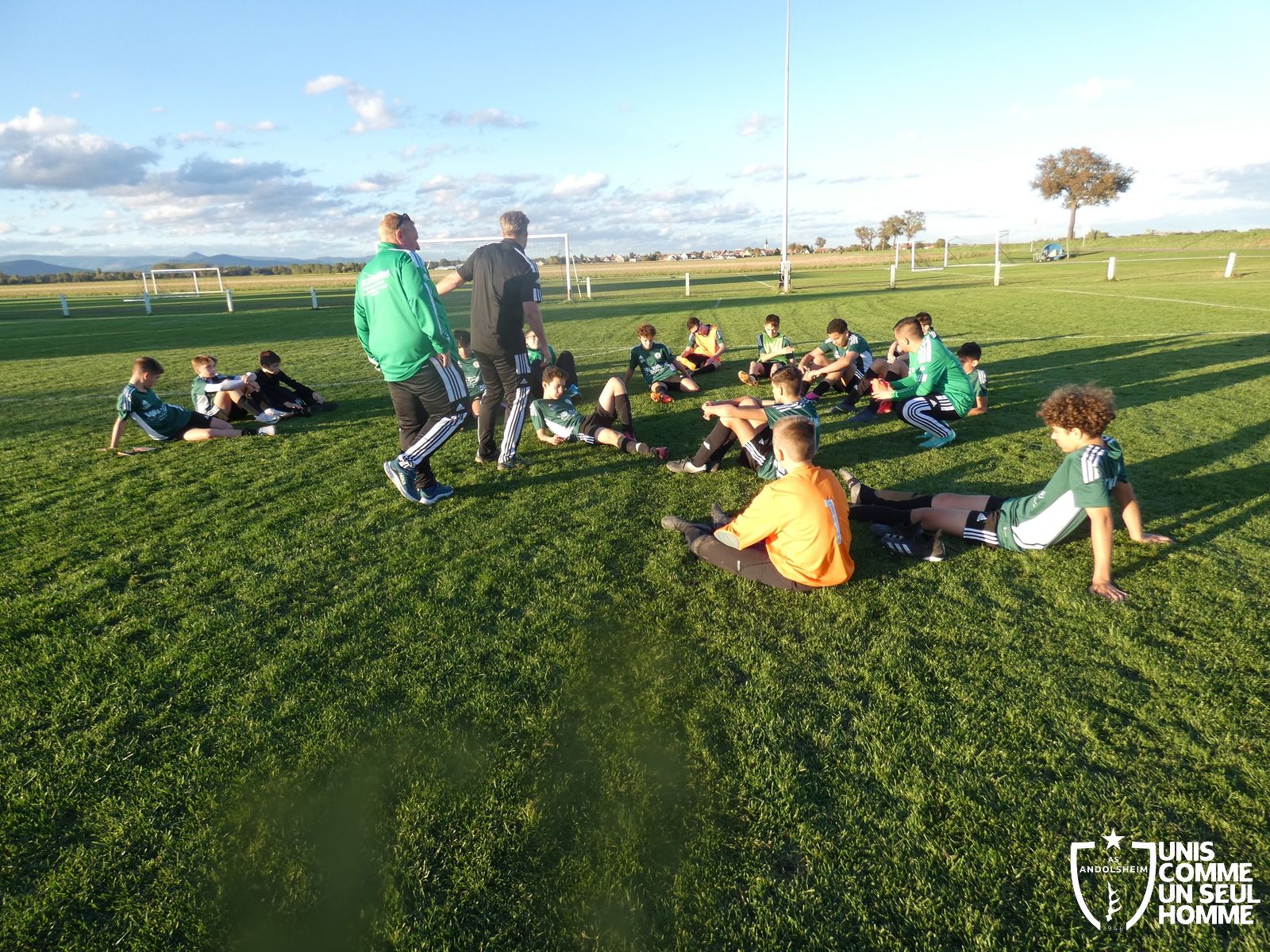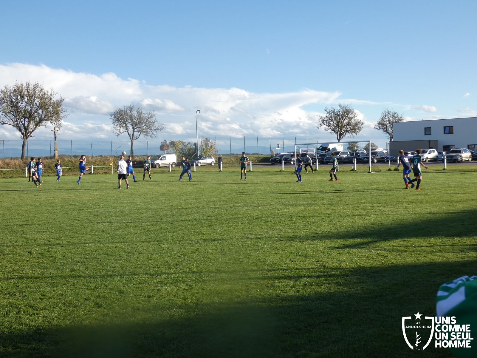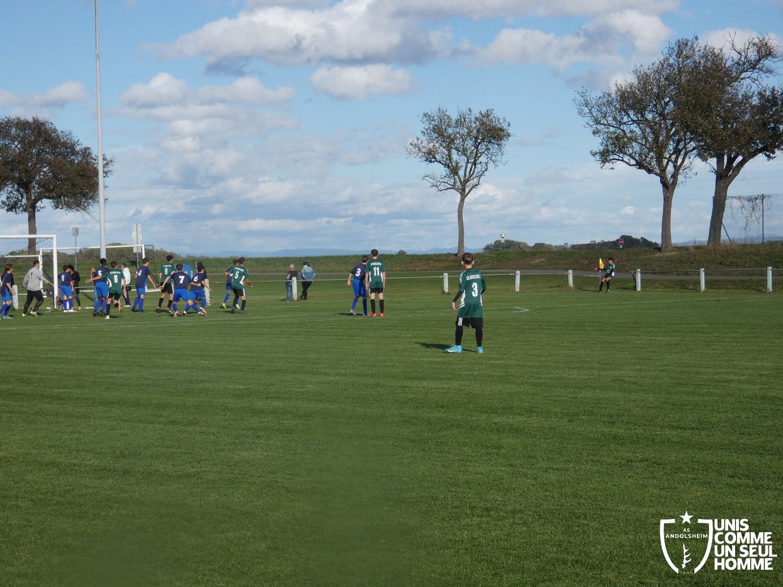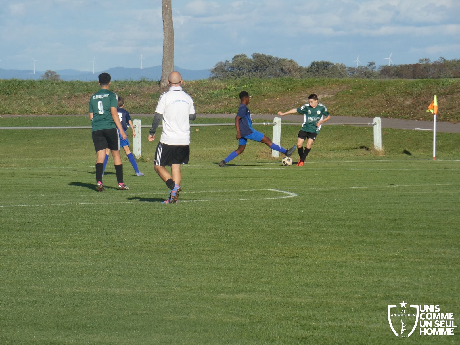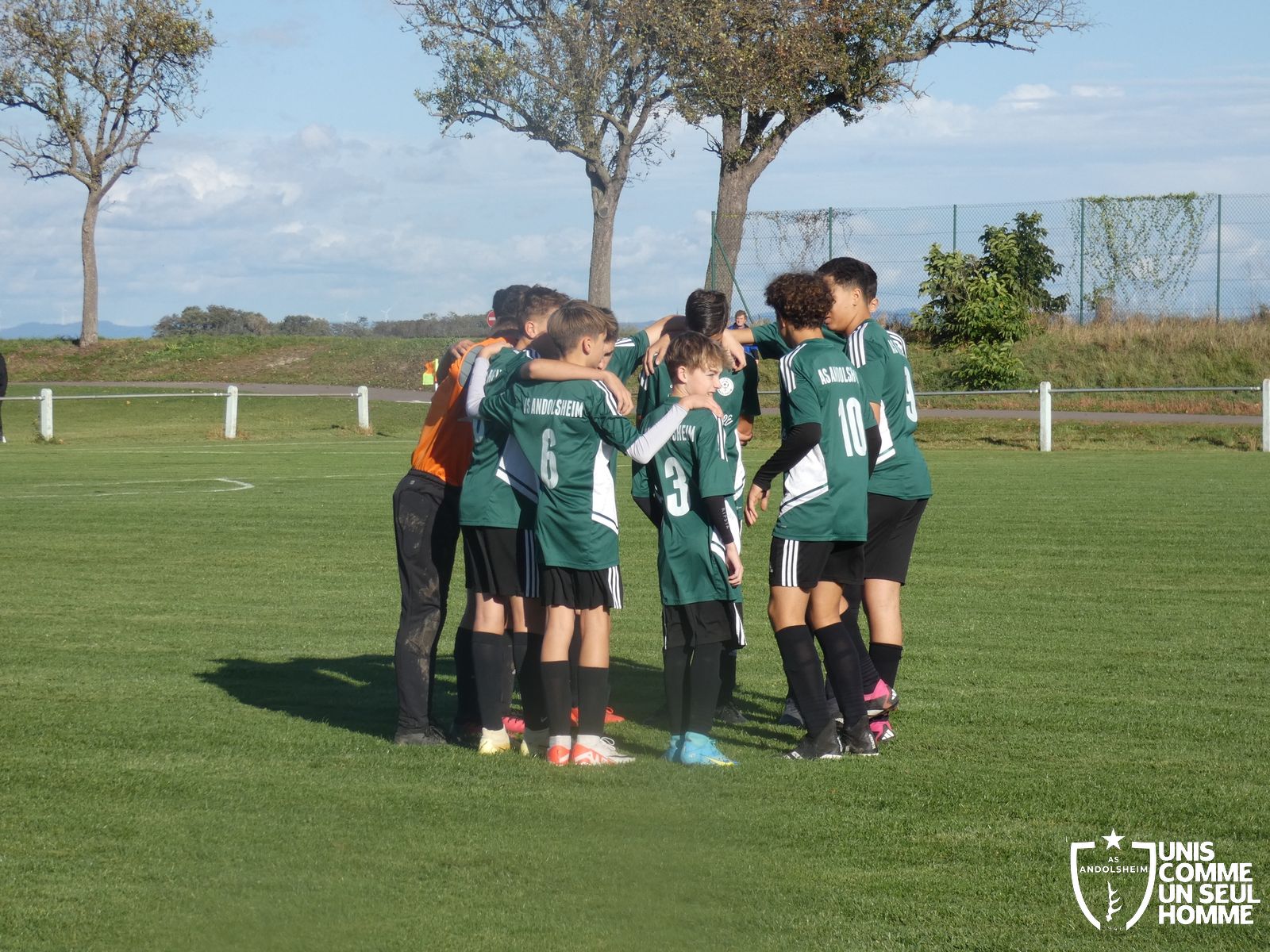 Ce samedi, nos Verts se sont déplacés sur les terres du FC Grussenheim. Marc et Stéphane étaient à la manœuvre pour le coaching. Après l’échauffement de rigueur, l’arbitre maison siffle le rassemblement pour une entrée sur le terrain à la manière des seniors. Louis A officie cet après-midi en tant que juge de touche. Nos jeunes pousses sont motivées et se mobilisent en scandant leur cri de guerre avant le coup de sifflet. Cet après-midi, c’est l’occasion de se remettre en course dans le championnat en prenant les trois points !