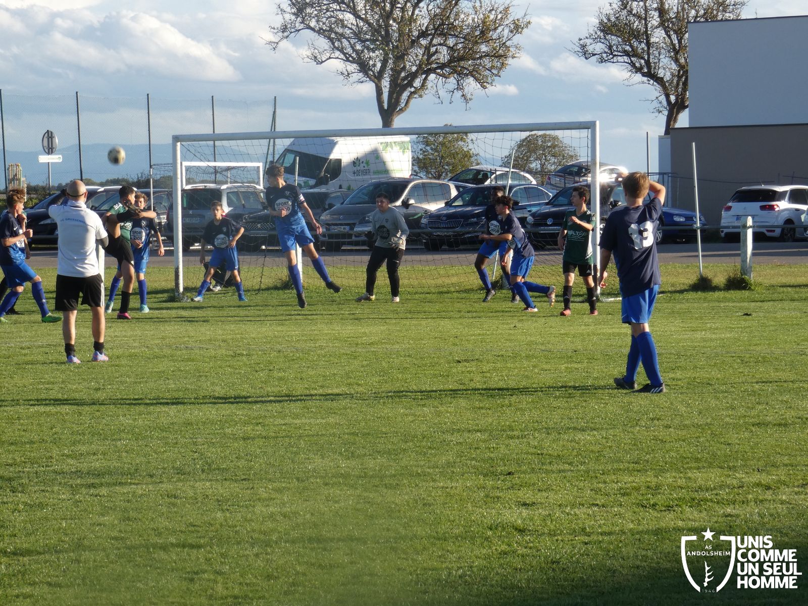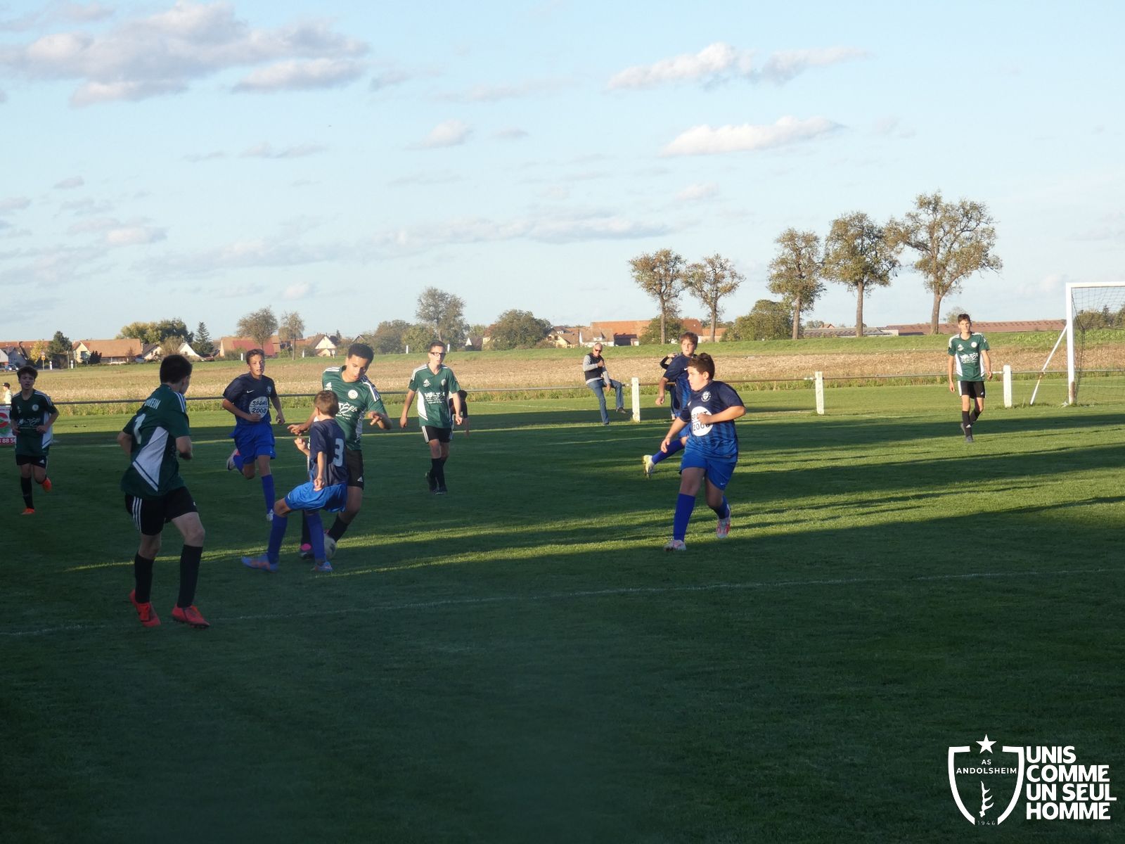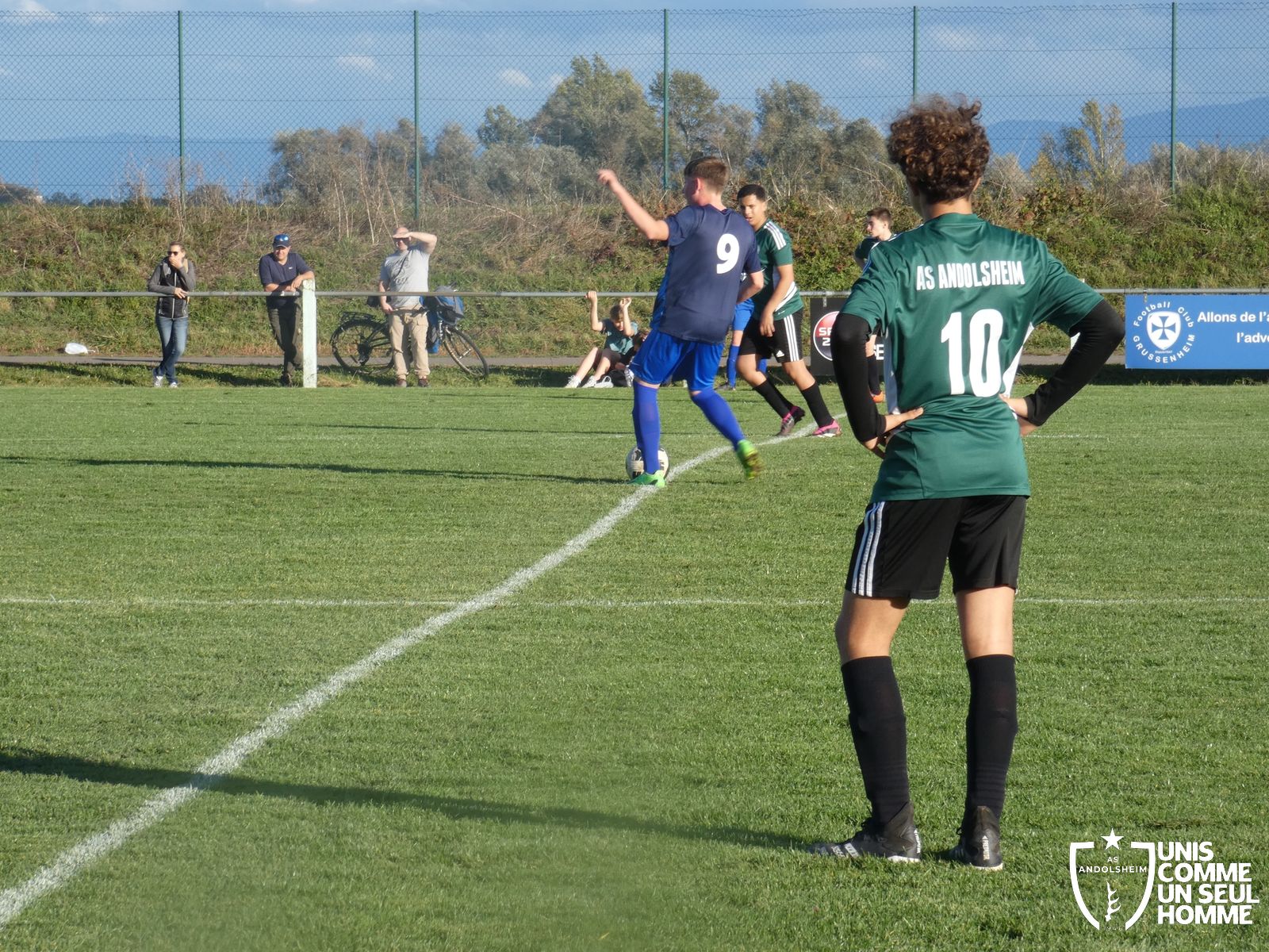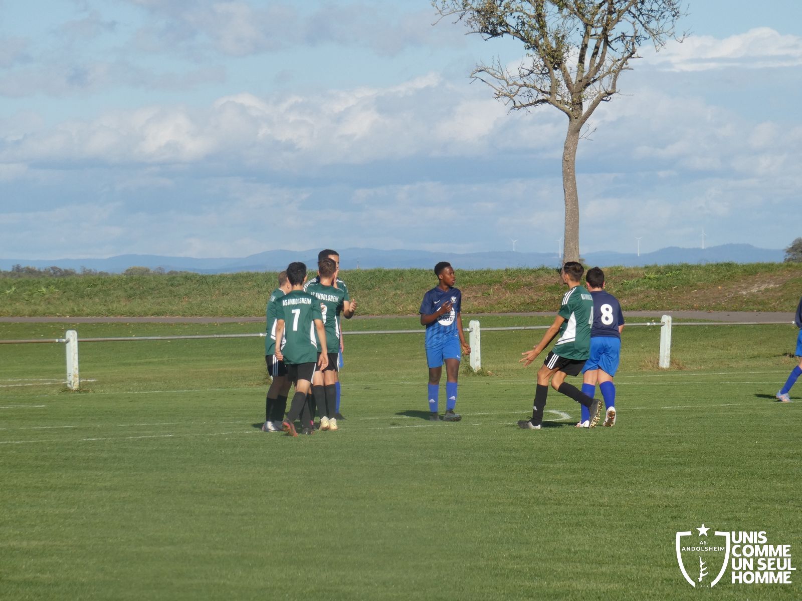 Ce samedi, nos Verts se sont déplacés sur les terres du FC Grussenheim. Marc et Stéphane étaient à la manœuvre pour le coaching. Après l’échauffement de rigueur, l’arbitre maison siffle le rassemblement pour une entrée sur le terrain à la manière des seniors. Louis A officie cet après-midi en tant que juge de touche. Nos jeunes pousses sont motivées et se mobilisent en scandant leur cri de guerre avant le coup de sifflet. Cet après-midi, c’est l’occasion de se remettre en course dans le championnat en prenant les trois points !
