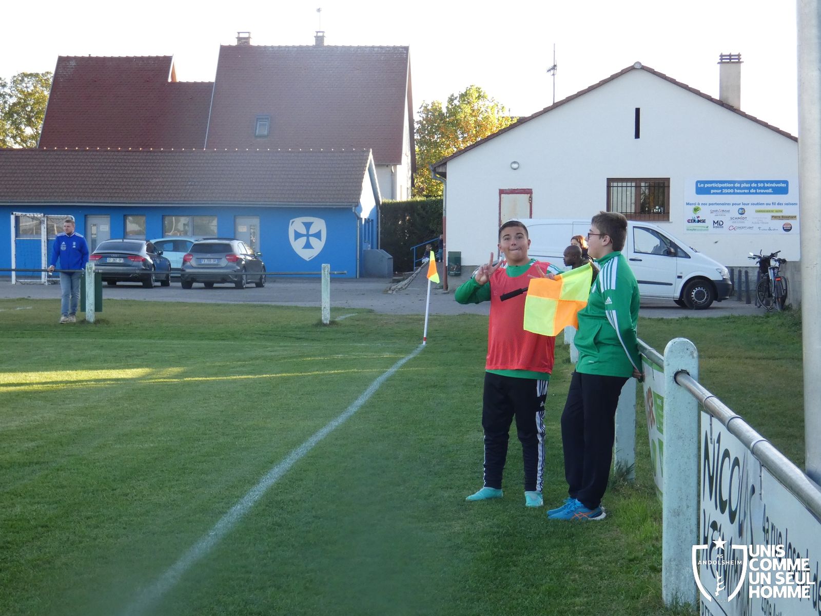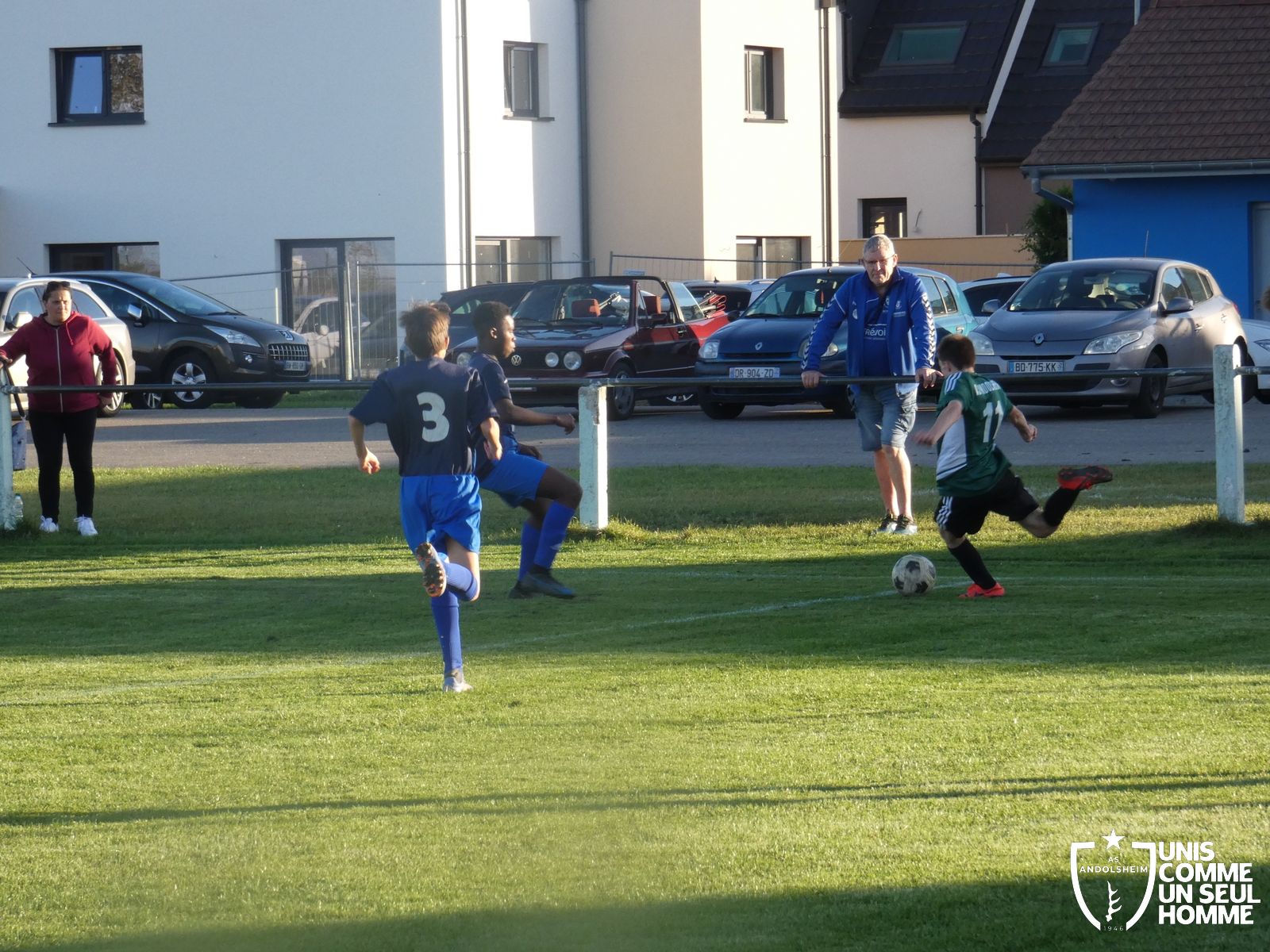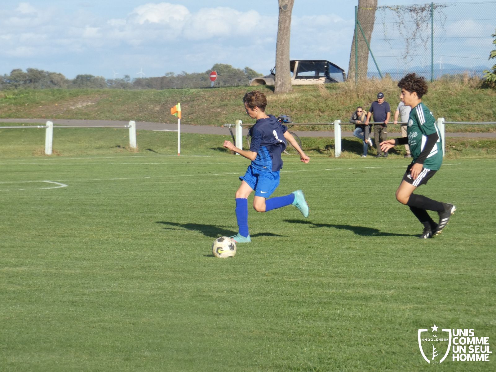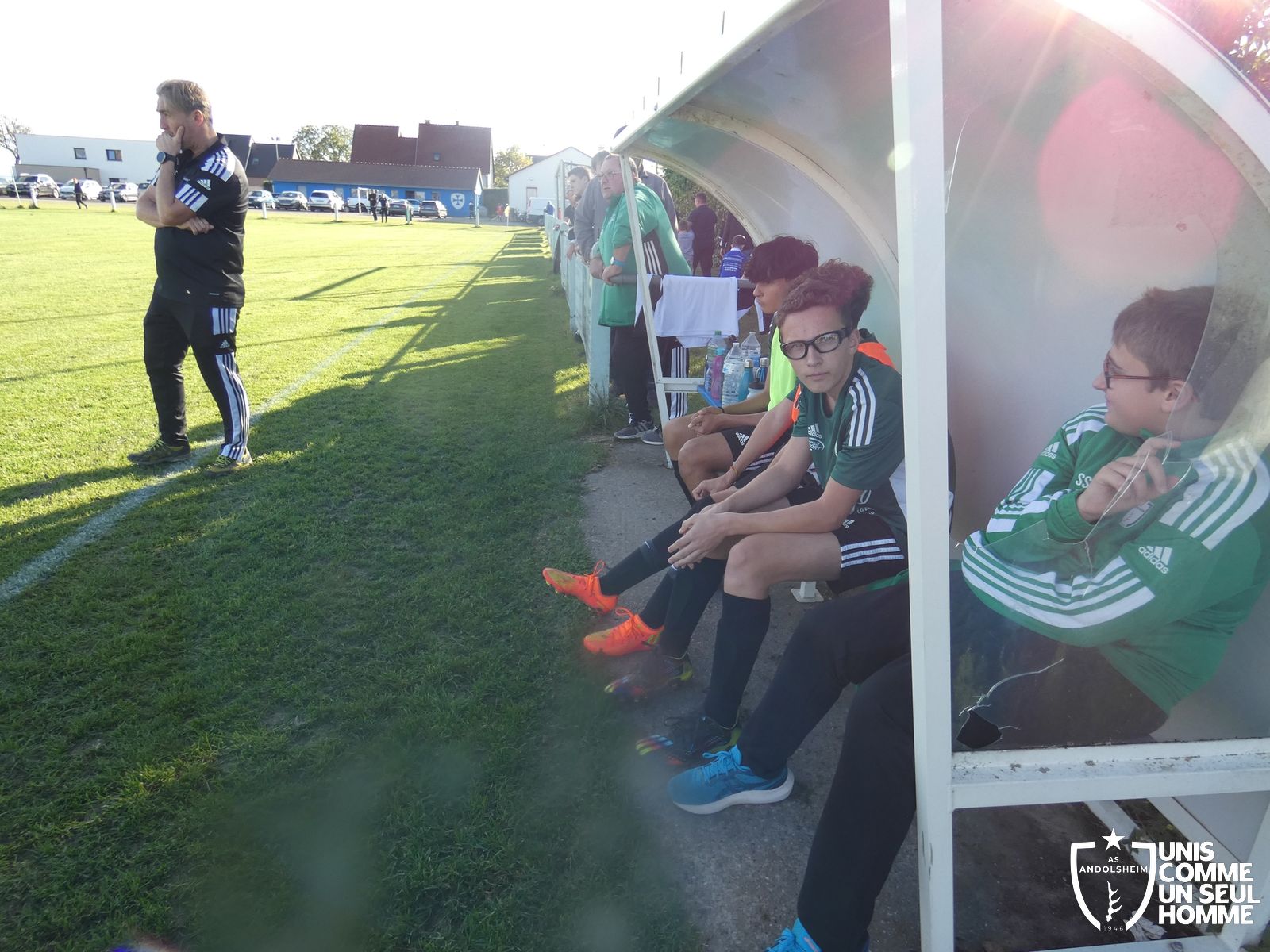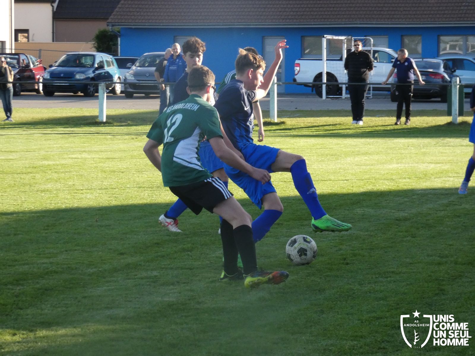 Ce samedi, nos Verts se sont déplacés sur les terres du FC Grussenheim. Marc et Stéphane étaient à la manœuvre pour le coaching. Après l’échauffement de rigueur, l’arbitre maison siffle le rassemblement pour une entrée sur le terrain à la manière des seniors. Louis A officie cet après-midi en tant que juge de touche. Nos jeunes pousses sont motivées et se mobilisent en scandant leur cri de guerre avant le coup de sifflet. Cet après-midi, c’est l’occasion de se remettre en course dans le championnat en prenant les trois points !