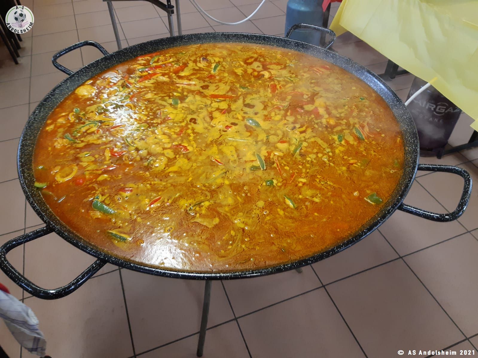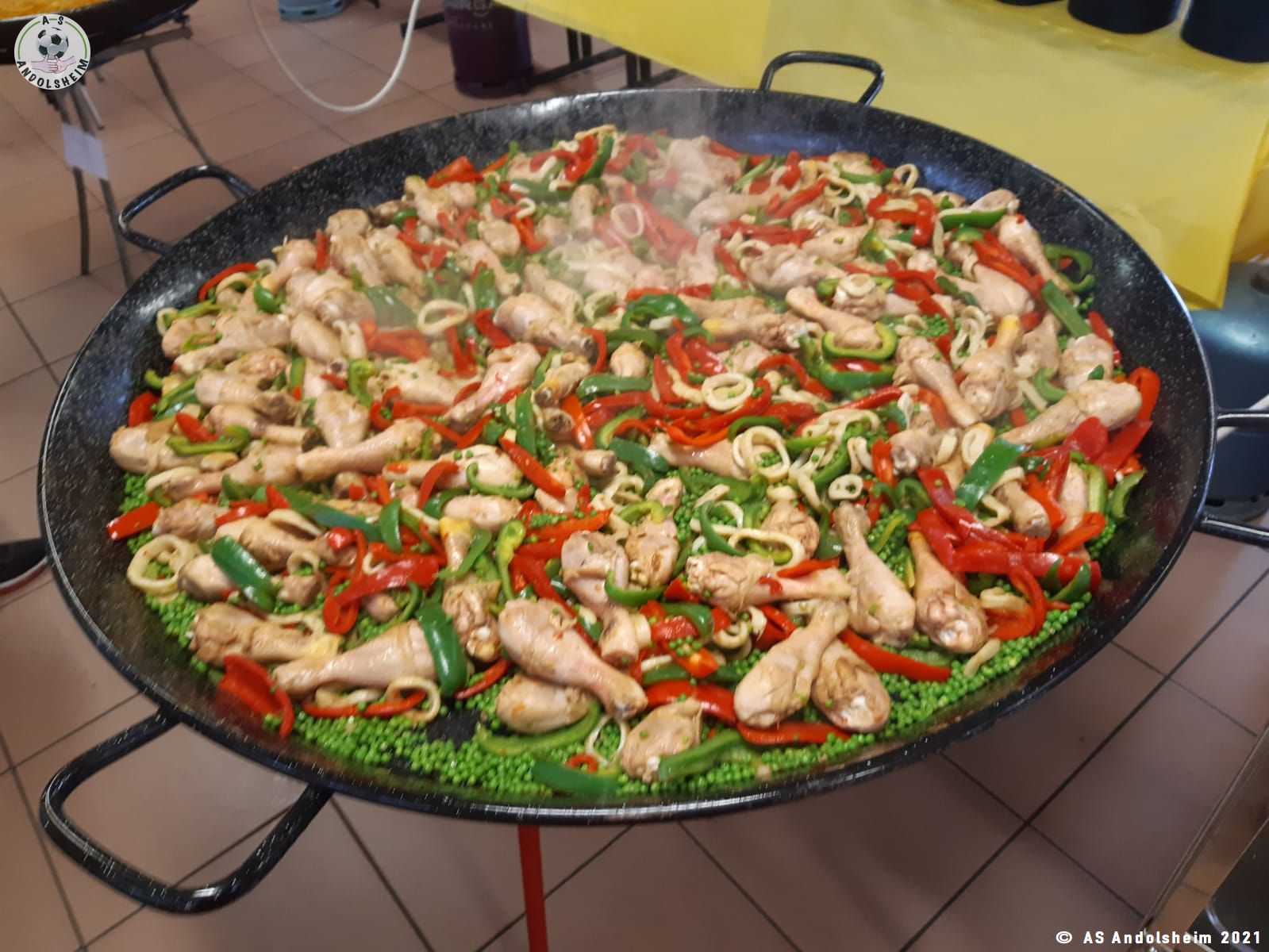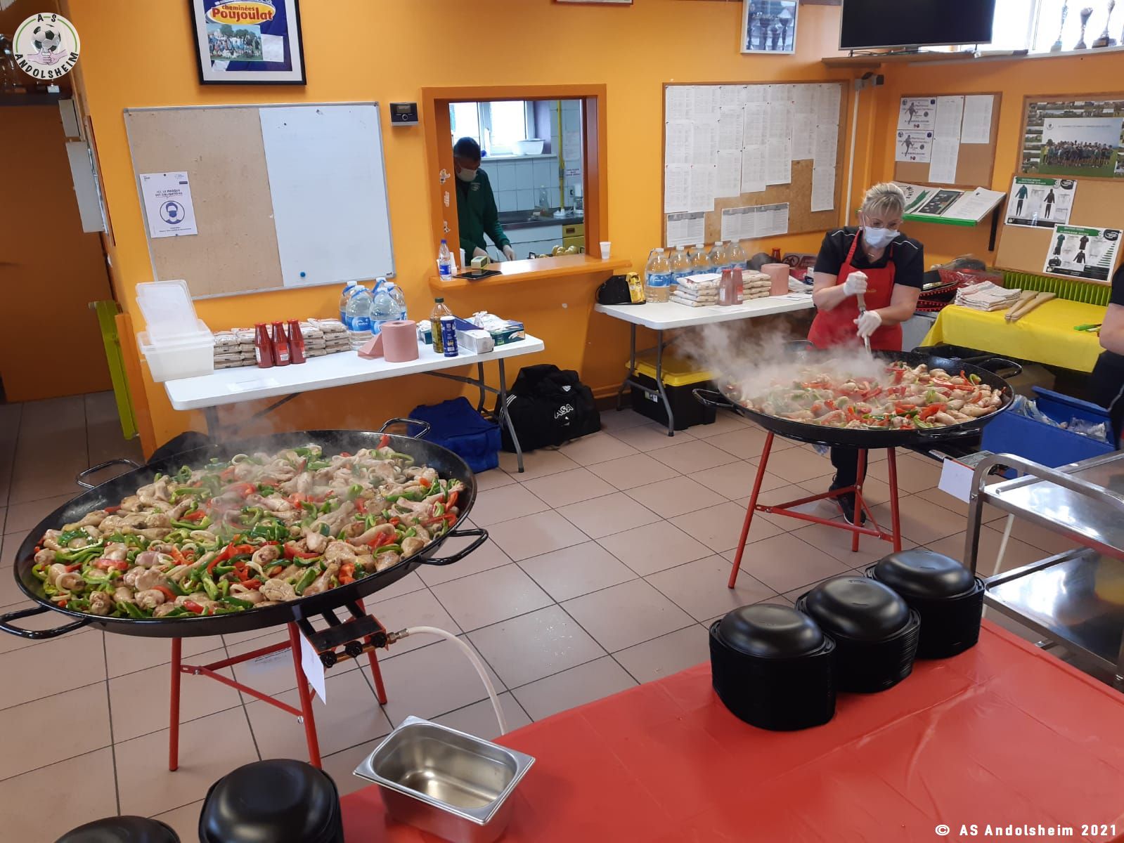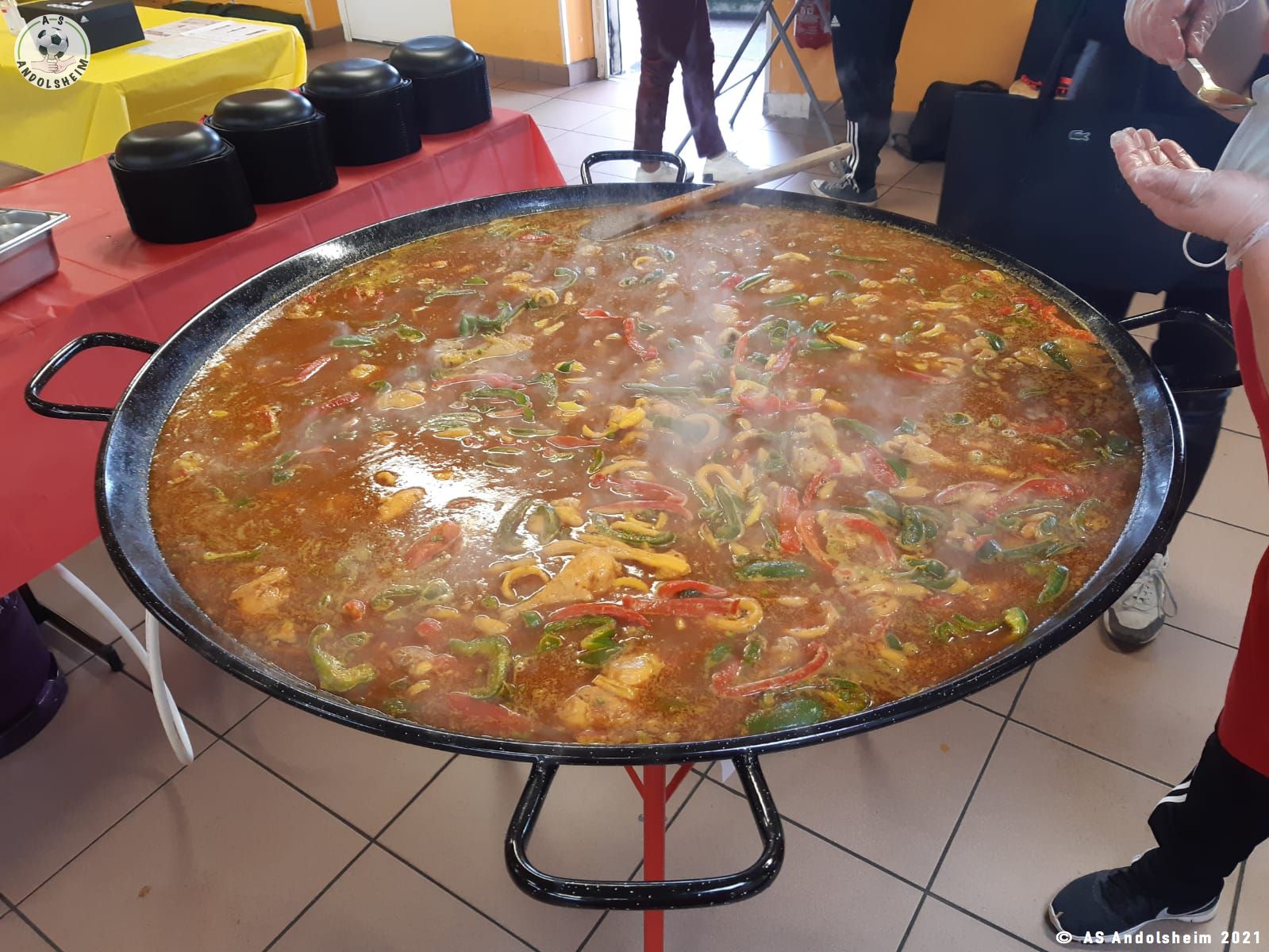 Nos bénévoles ont utilisé 6 grandes poêles pour vous concocter 480 parts de Paëlla.