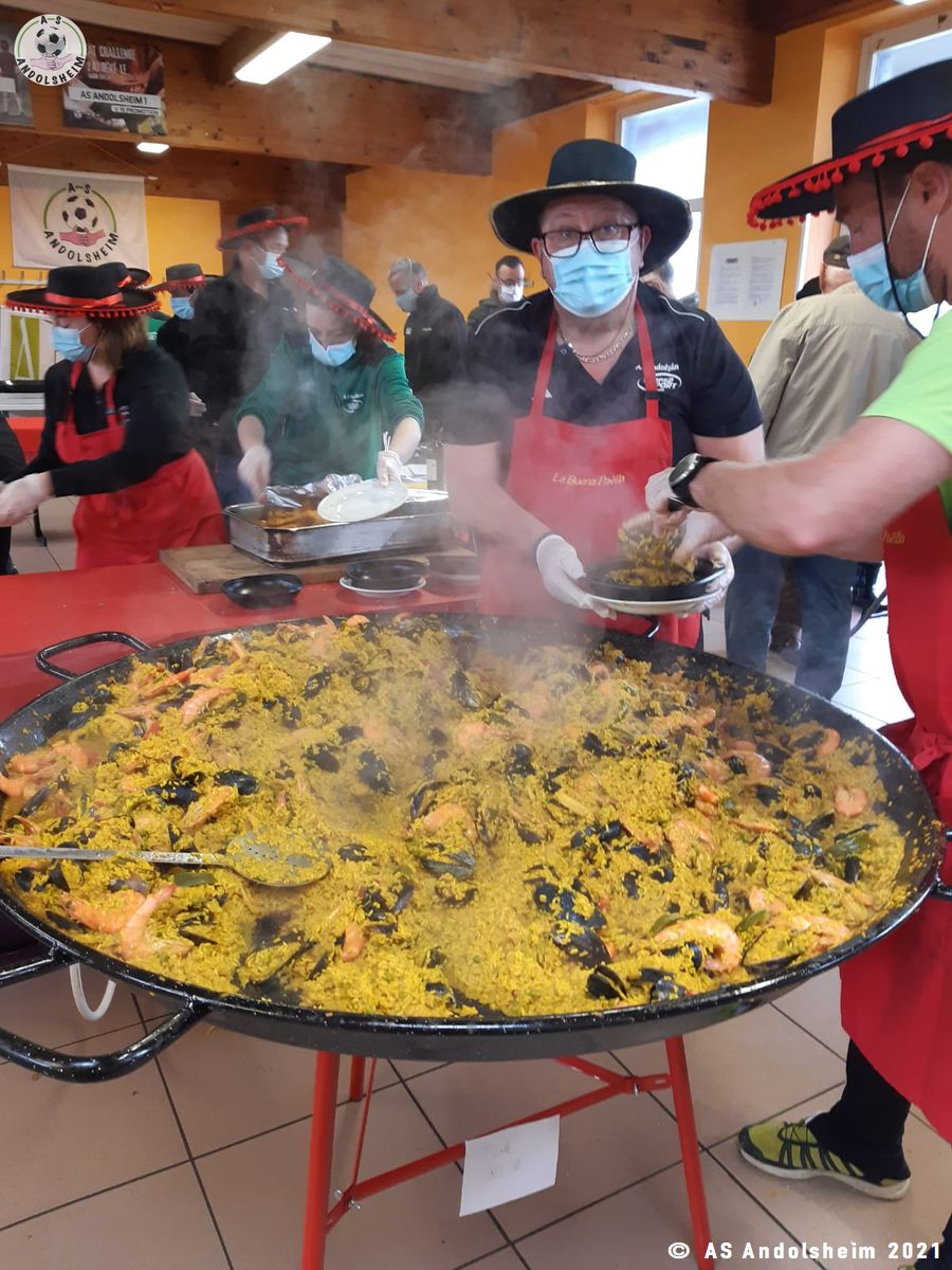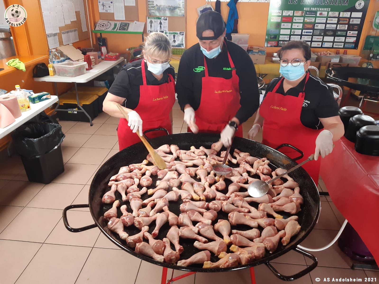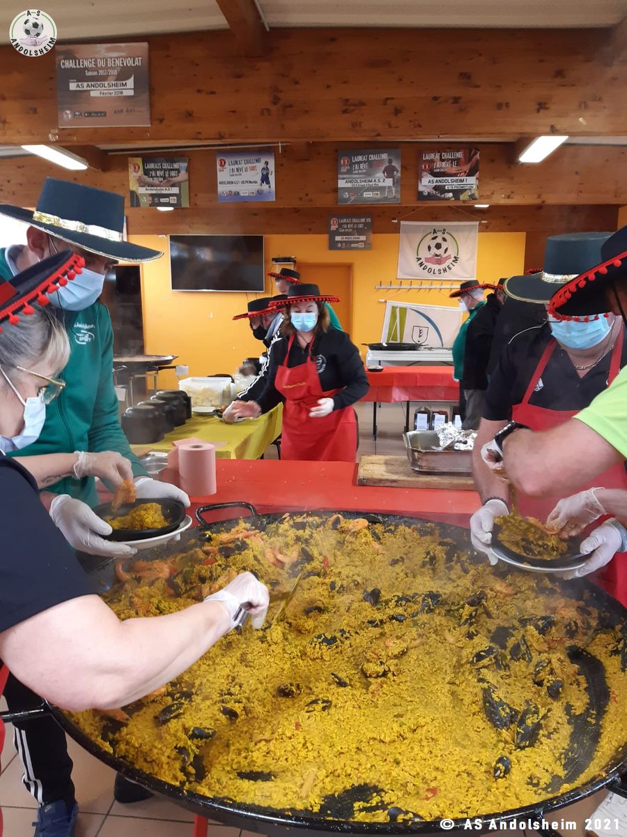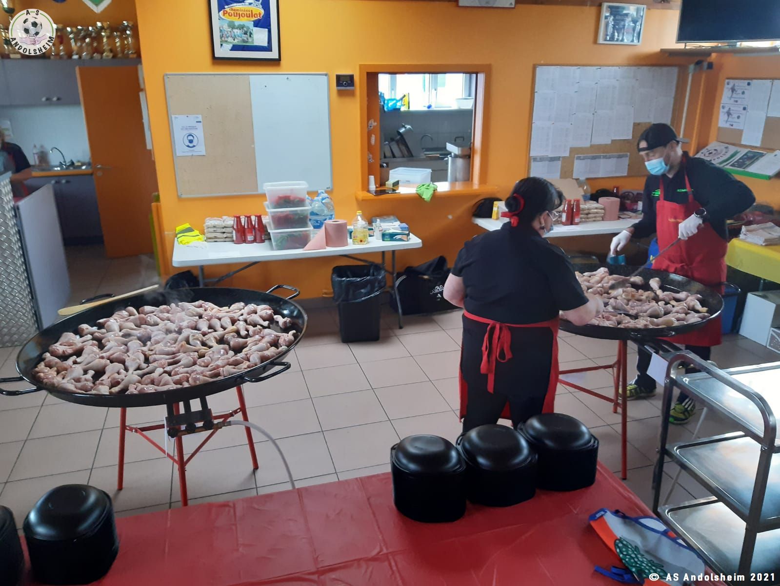 Nos bénévoles ont utilisé 6 grandes poêles pour vous concocter 480 parts de Paëlla.
