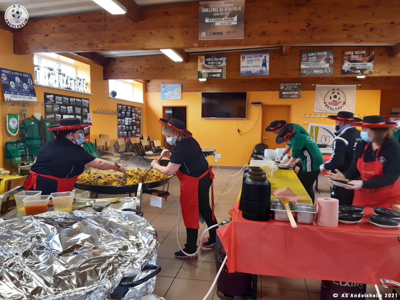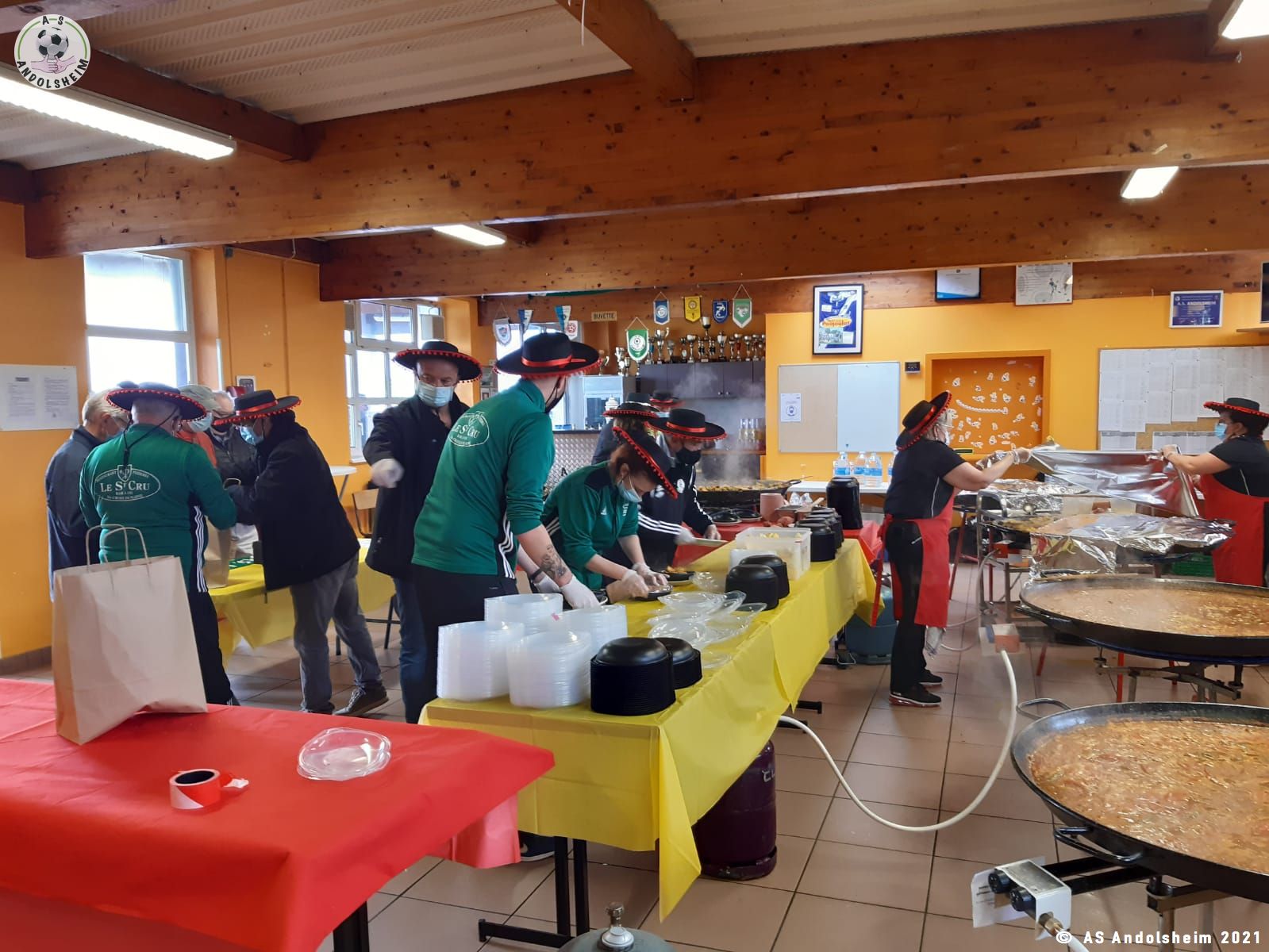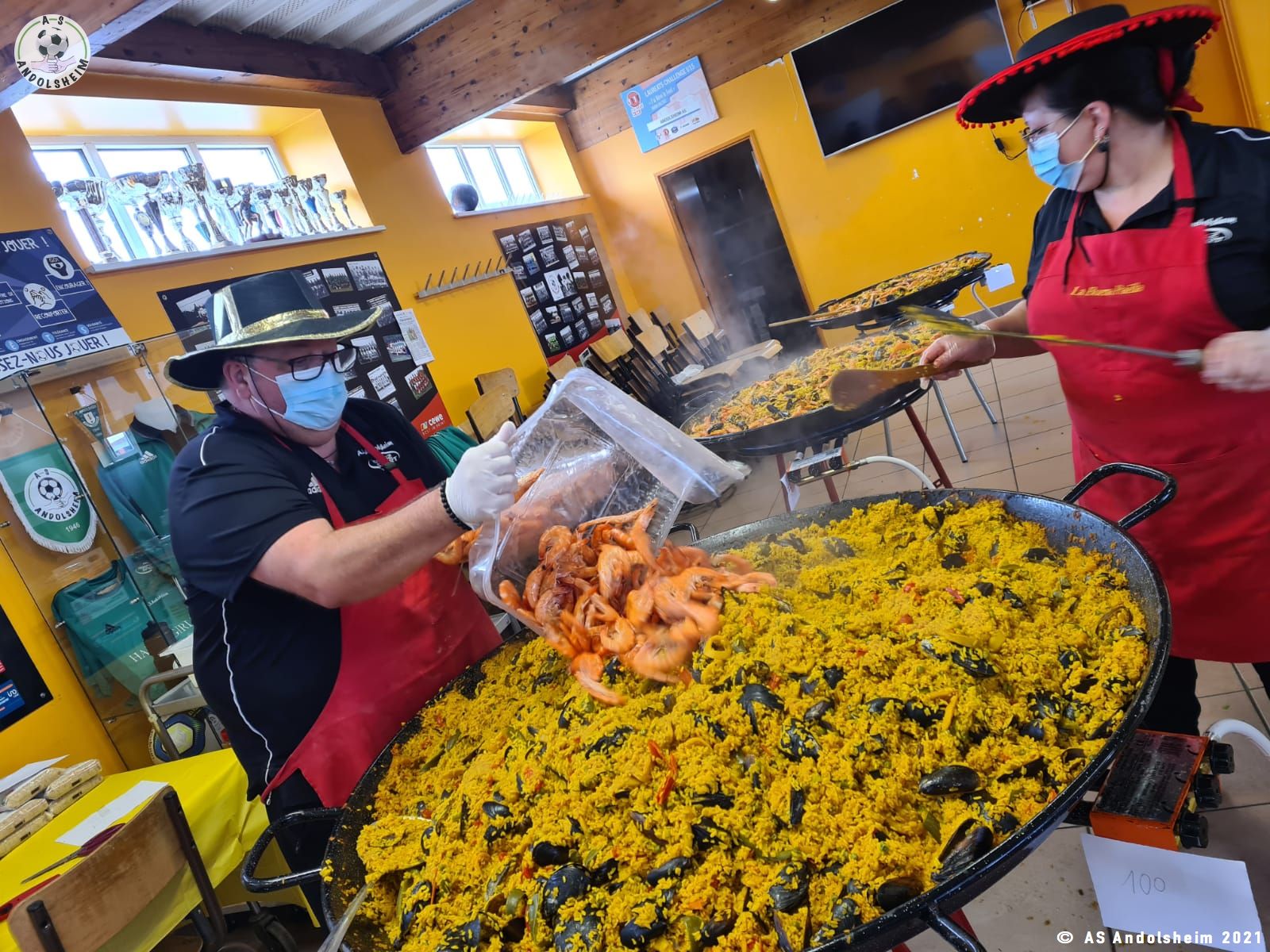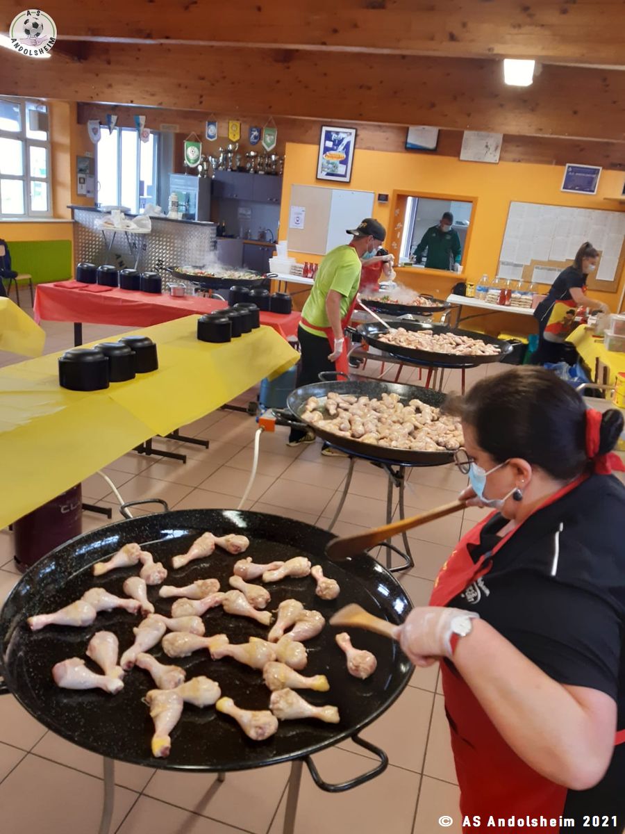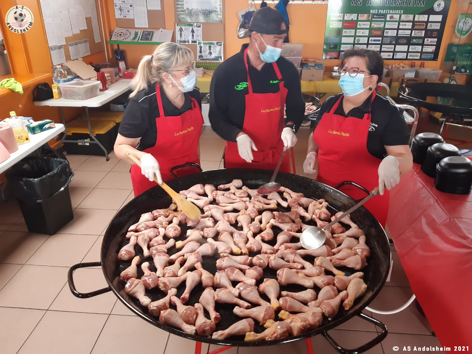 Nos bénévoles ont utilisé 6 grandes poêles pour vous concocter 480 parts de Paëlla.
