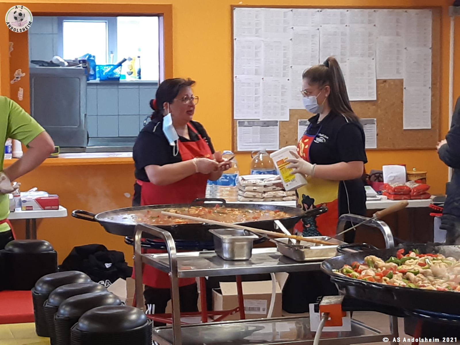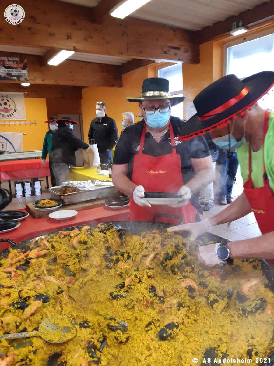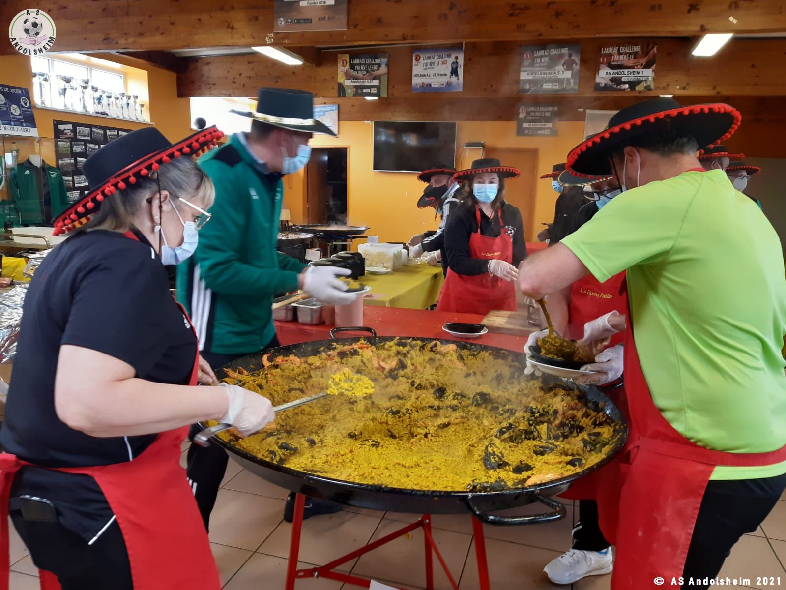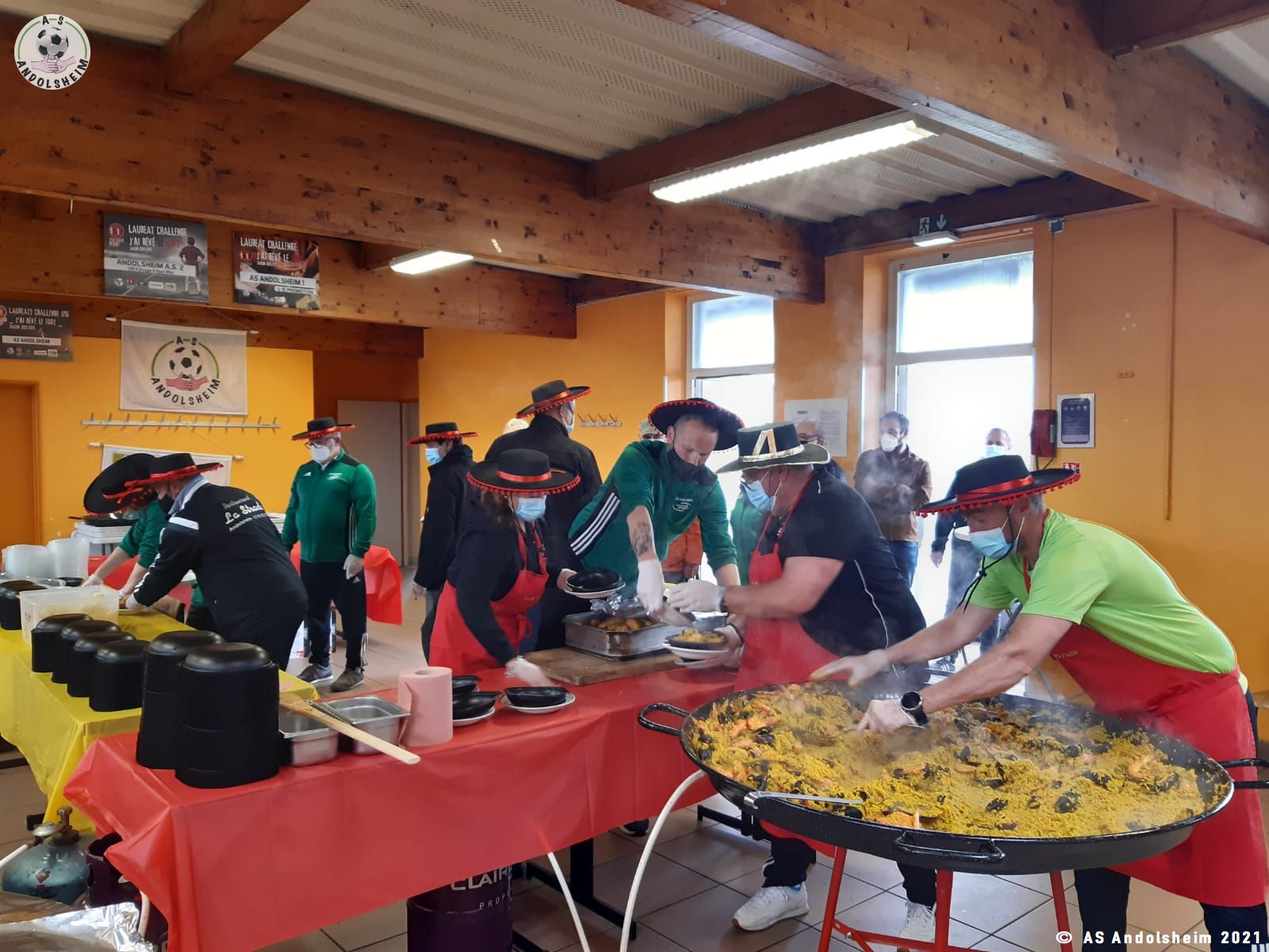 Nos bénévoles ont utilisé 6 grandes poêles pour vous concocter 480 parts de Paëlla.