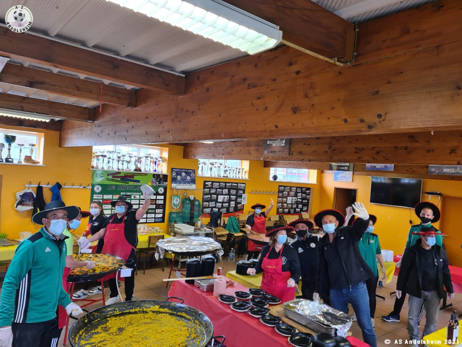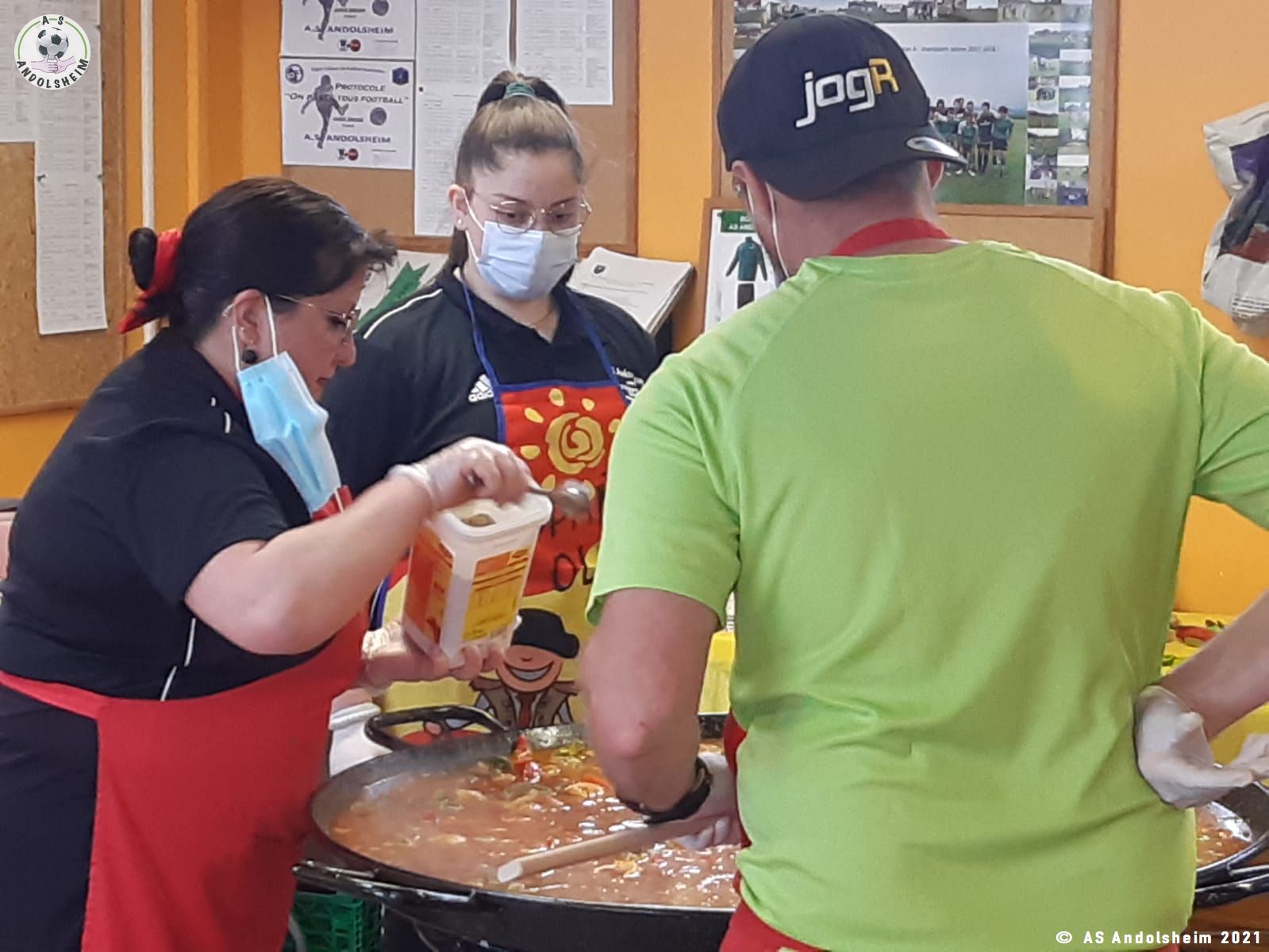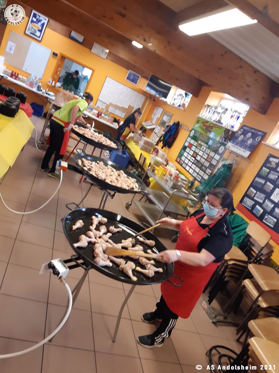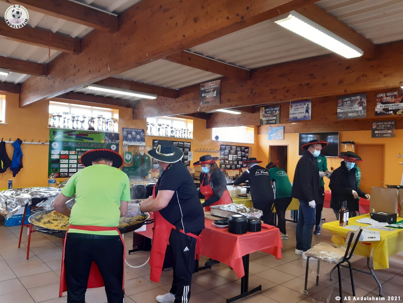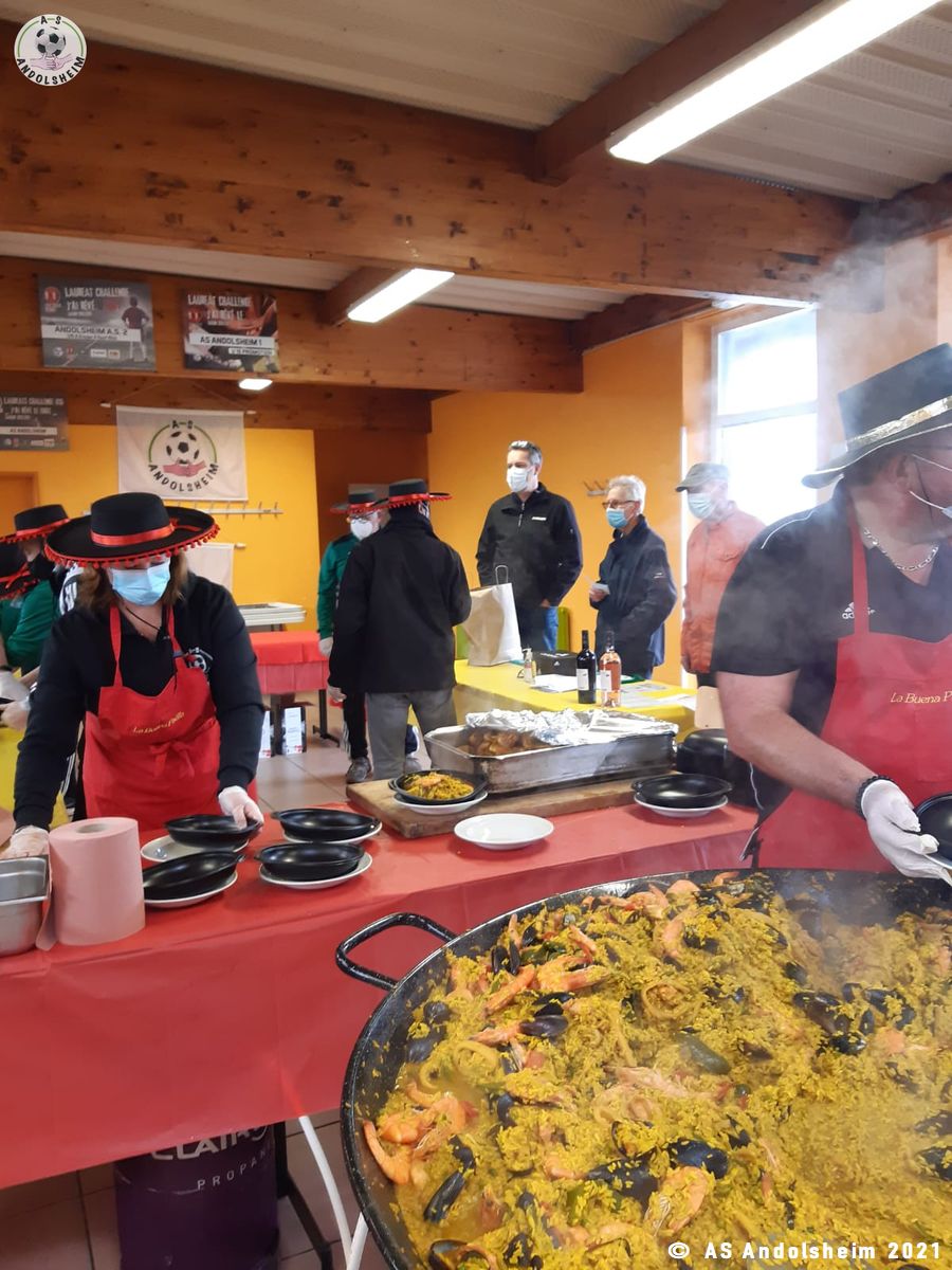 Nos bénévoles ont utilisé 6 grandes poêles pour vous concocter 480 parts de Paëlla.