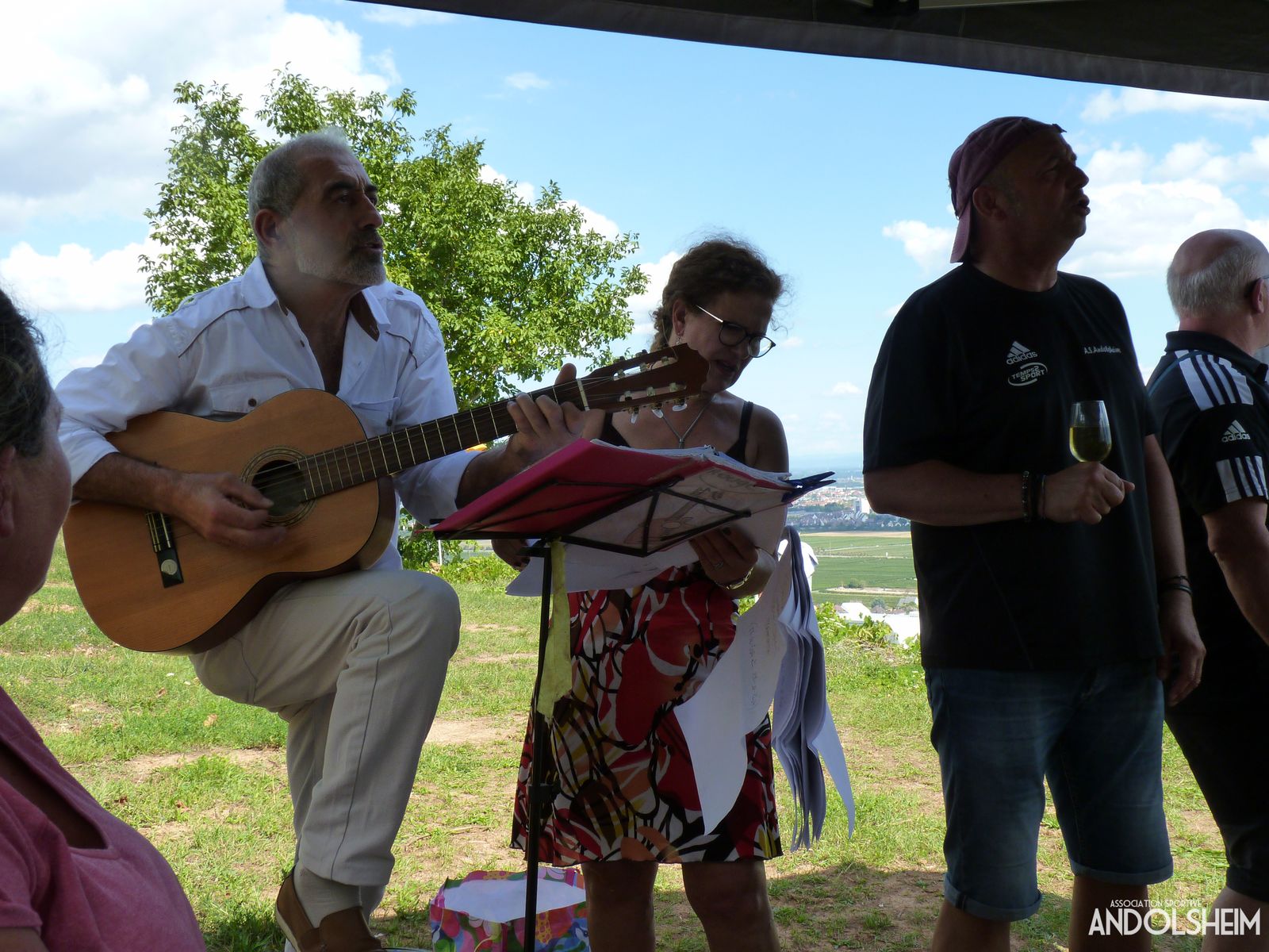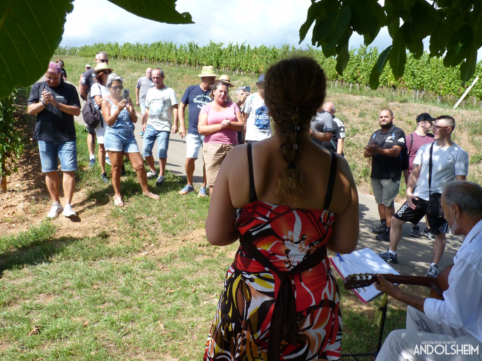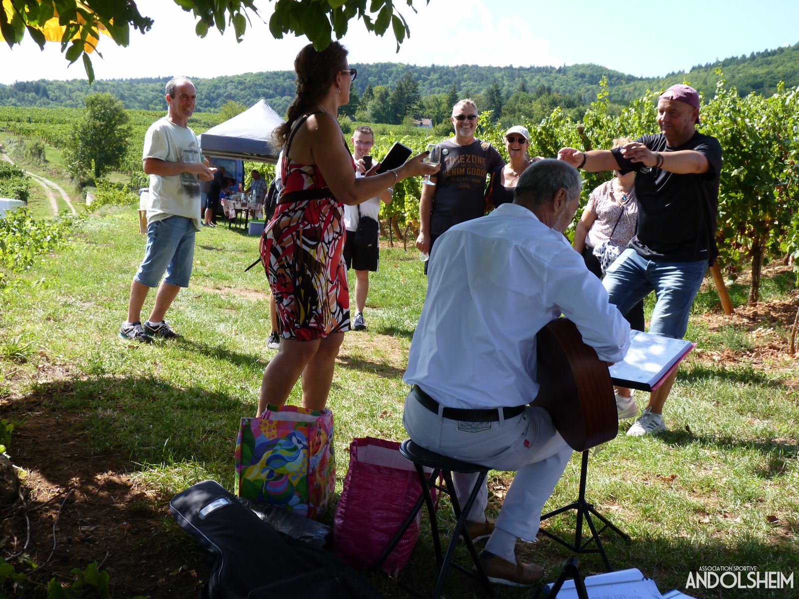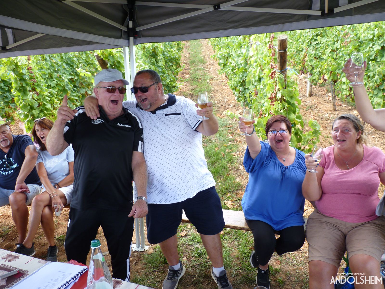 Aimé Ehrhart a été notre guide durant cette journée, ponctuée de plusieurs « ravitaillements »et pauses « dégustations » puis pour terminer un bon repas dans sa cave.