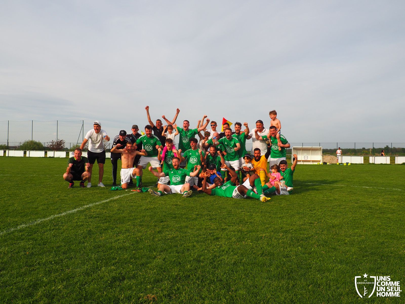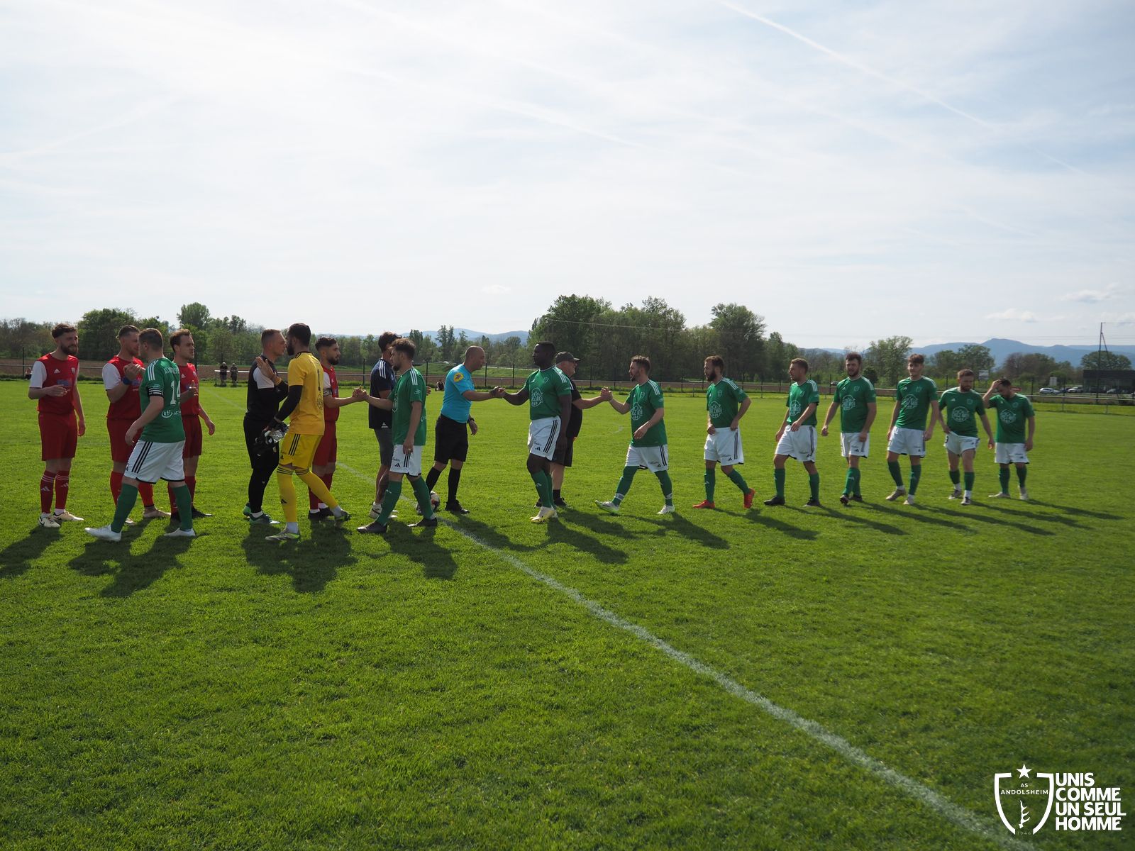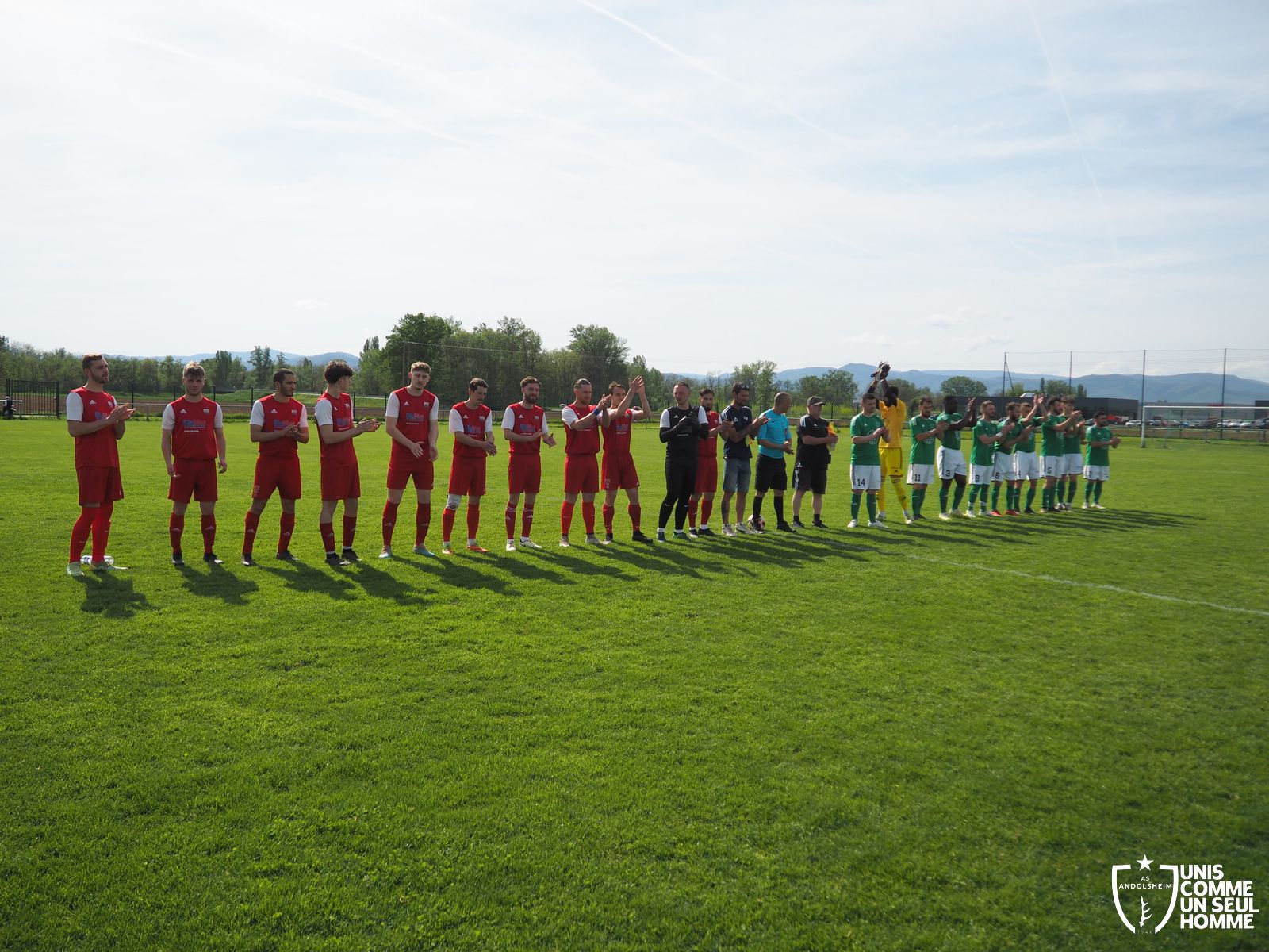 Et c’est bien un refrain différent que les verts entonnent en seconde période devant un public festif et familial : Gabin ouvre le score à la 55e. Max l’imite dix minutes plus tard. Josh Paret pose la cerise sur le gâteau à la dernière seconde. Victoire de l’ASA 3 à 0. Bonne continuation à Bergheim, qui peut encore briller, car on est aux deux tiers de la saison seulement. Merci à tous les bénévoles ASA qui réalisent des prouesses pour que chacun puisse se garer et s’abreuver dans un complexe sportif inachevé. Bravo à la une de l’ASA qui achève un week-end brillantissime pour ANDOLSHEIM et qui a pris ses responsabilités de leader de D3. Messieurs, encore bravo !