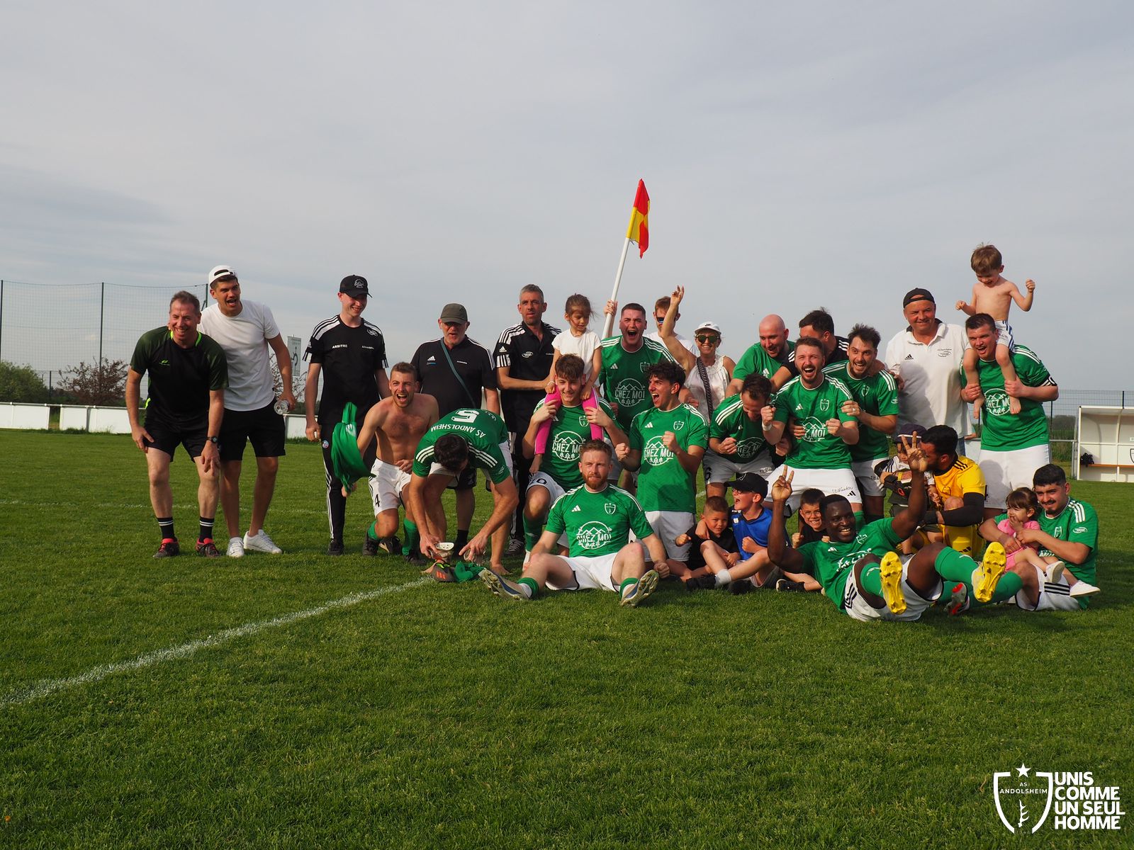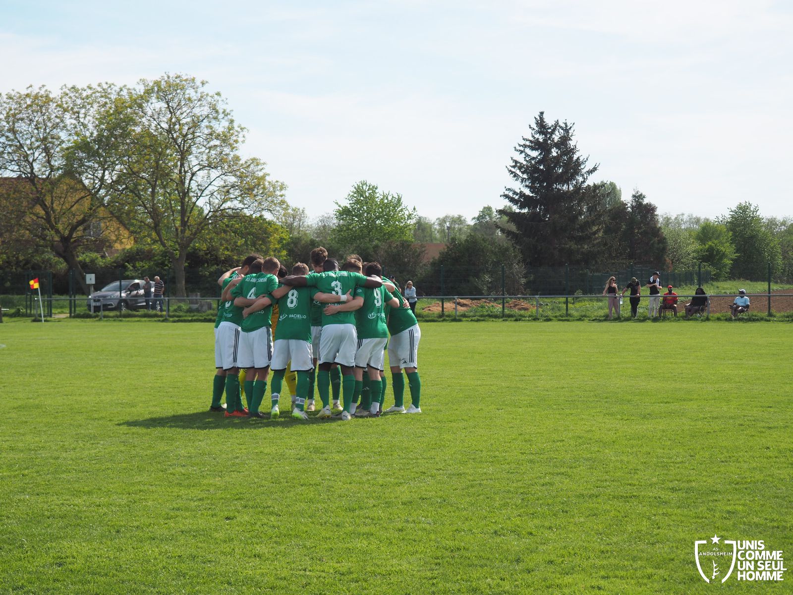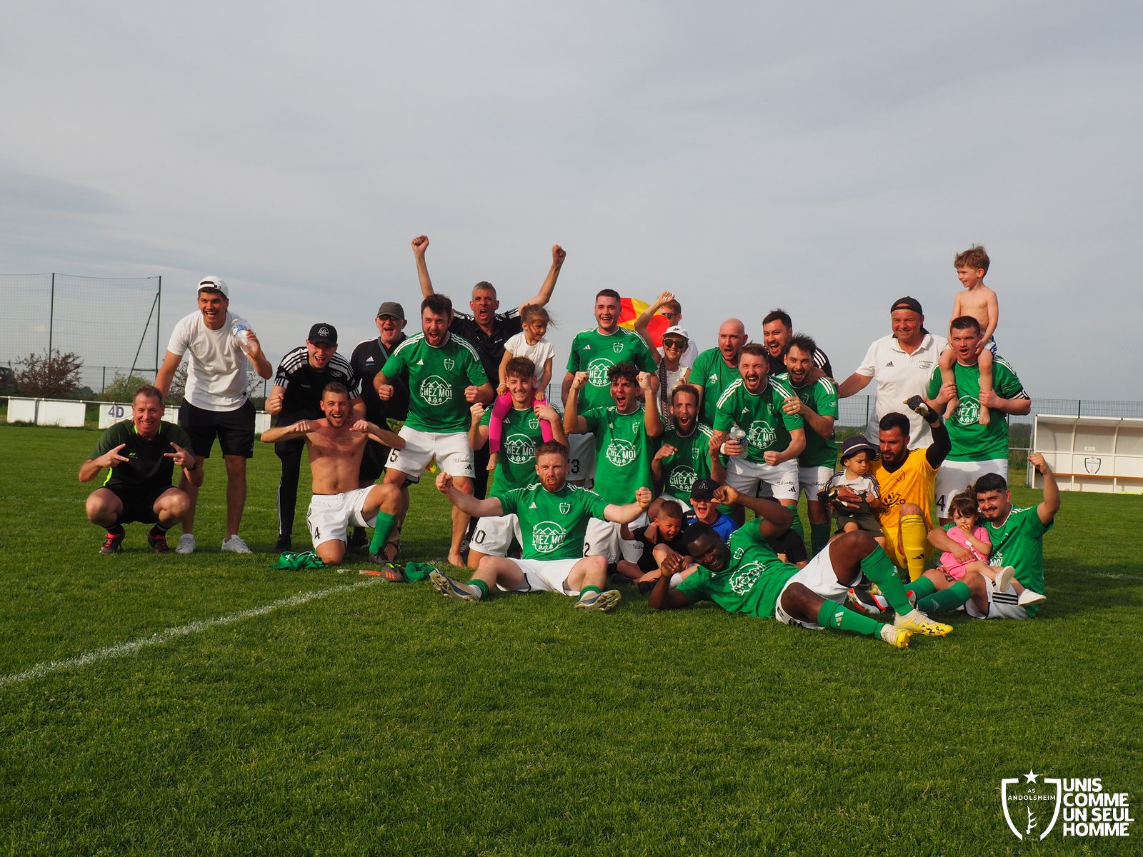 Et c’est bien un refrain différent que les verts entonnent en seconde période devant un public festif et familial : Gabin ouvre le score à la 55e. Max l’imite dix minutes plus tard. Josh Paret pose la cerise sur le gâteau à la dernière seconde. Victoire de l’ASA 3 à 0. Bonne continuation à Bergheim, qui peut encore briller, car on est aux deux tiers de la saison seulement. Merci à tous les bénévoles ASA qui réalisent des prouesses pour que chacun puisse se garer et s’abreuver dans un complexe sportif inachevé. Bravo à la une de l’ASA qui achève un week-end brillantissime pour ANDOLSHEIM et qui a pris ses responsabilités de leader de D3. Messieurs, encore bravo !