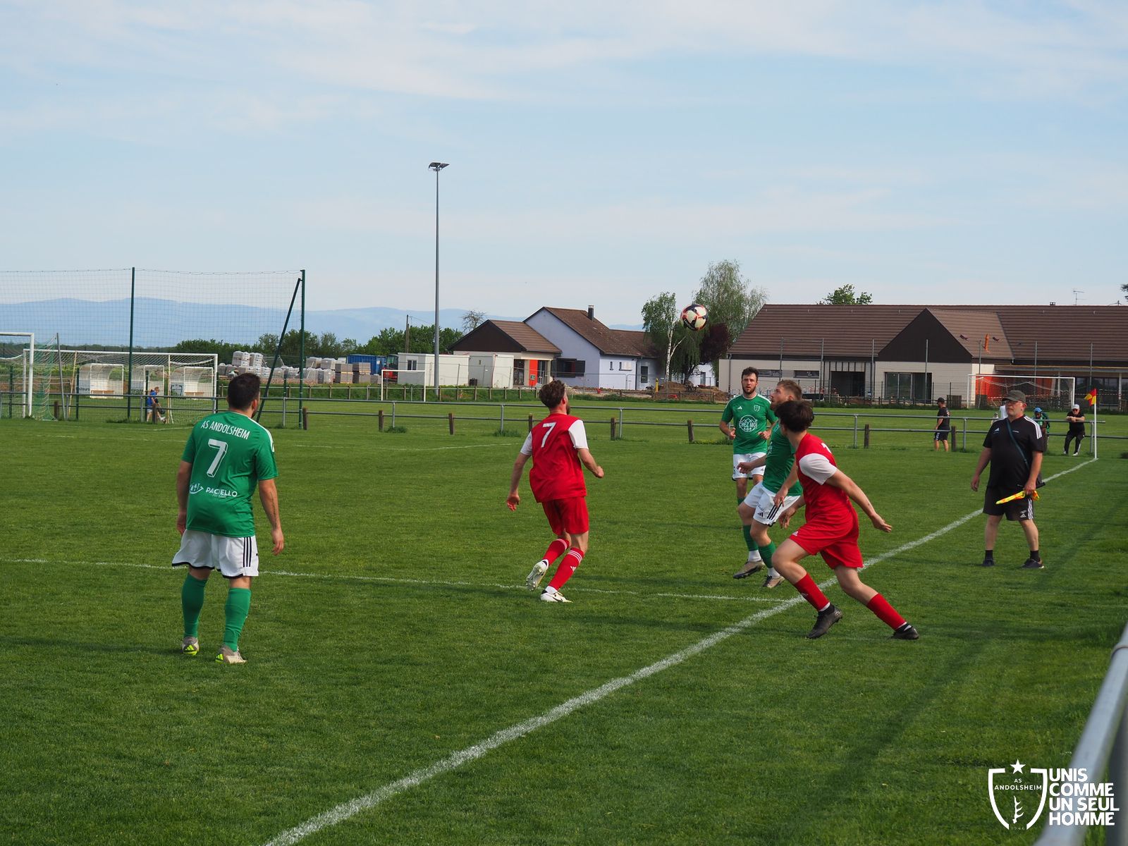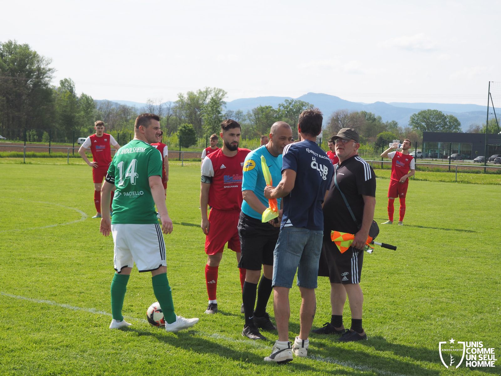 En ce dimanche presque caniculaire, notre équipe fanion reçoit les sports réunis de Bergheim. Attention, cette formation est talentueuse, elle n’occupe pas la 4e place d’un groupe de 12 équipes sans raison… Nos garçons, eux, sont leaders depuis une semaine et vont devoir confirmer ce nouveau statut. Monsieur le Maire et son adjoint Raymond en sont conscients et viennent assister à cette belle rencontre, et partager la boisson alsacienne de l’amitié avec le public nombreux. L’arbitre officiel siffle à 16 h 07, assisté comme toujours d’un arbitre de touche visiteur, et de notre cher Laury qui maîtrise sa ligne de touche comme Mozart maîtrisait son clavecin... Même si c’était dans une autre époque et dans un autre championnat.