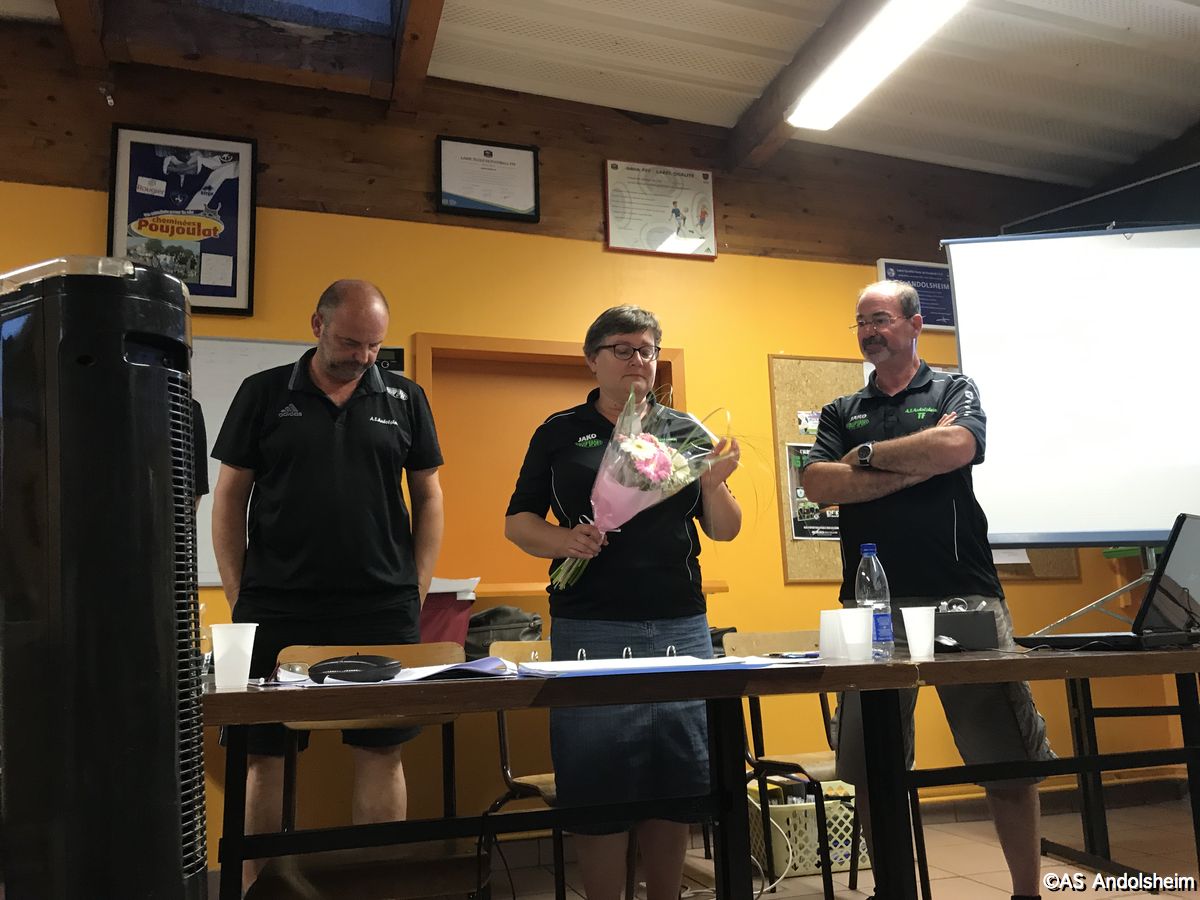 Parmi les moments forts de cette soirée, les applaudissements de l'assistance à Fabienne et Thierry Fleith, respectivement secrétaire et trésorier du club depuis de nombreuses années et qui ont décidés de prendre du recul et c'est avec beaucoup d'émotion que le président Francis Bonzon l'ai à tous les deux remercié.
