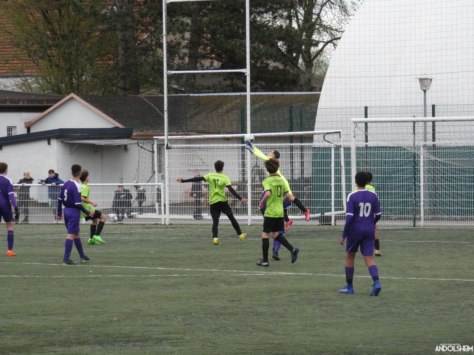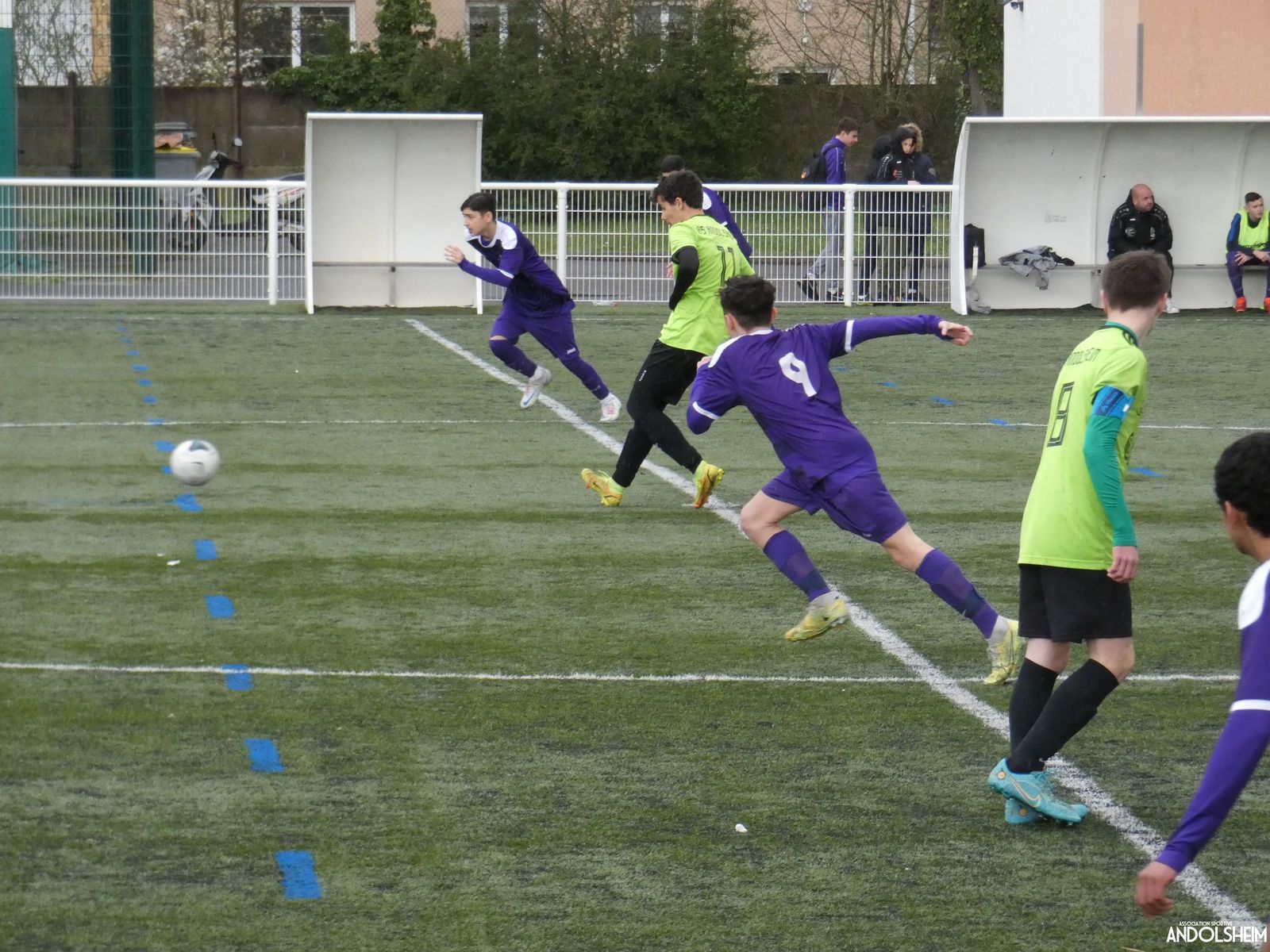 Les Violets, de leur côté ont de l’audace à revendre et se permettent de percer à nouveau les filets de Théo suite à un coup franc et une reprise de la tête du numéro 7.