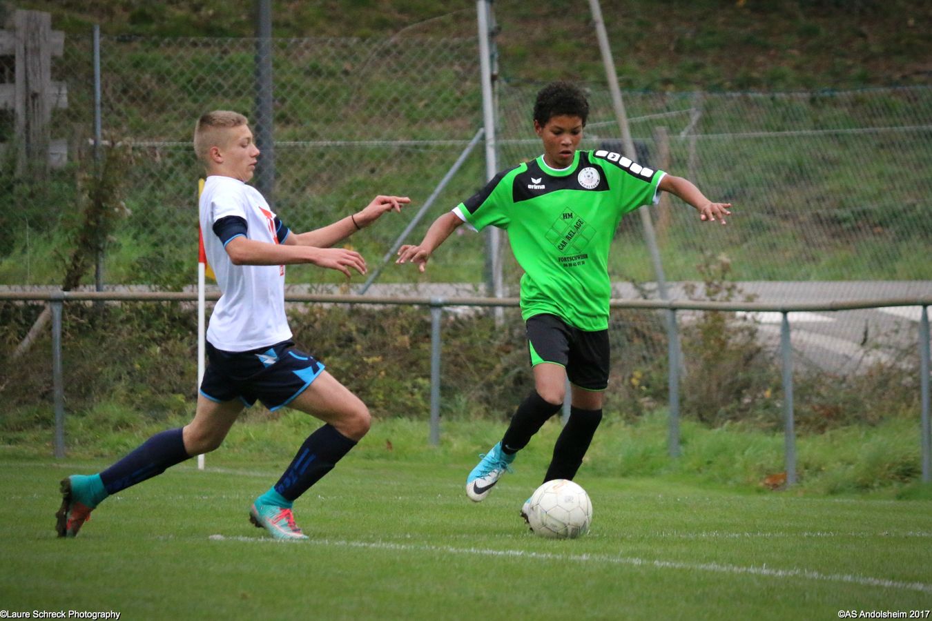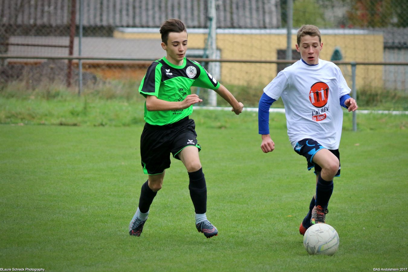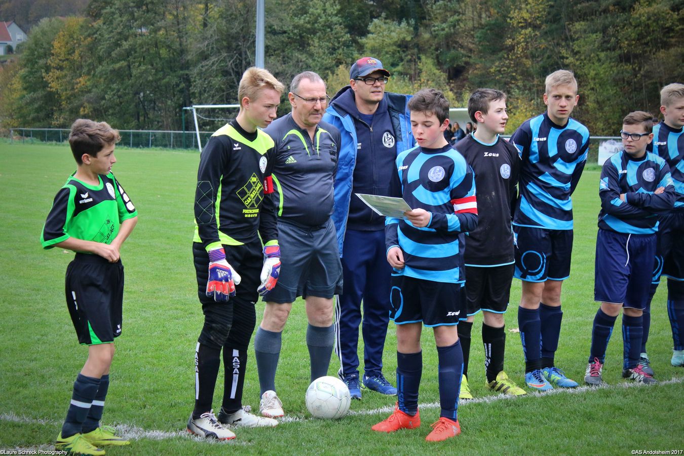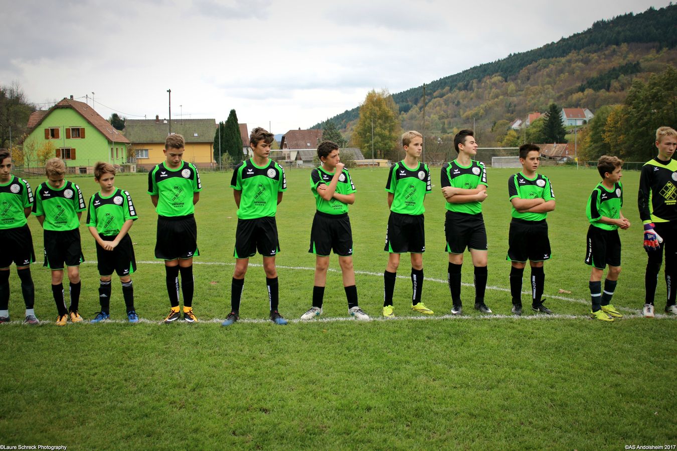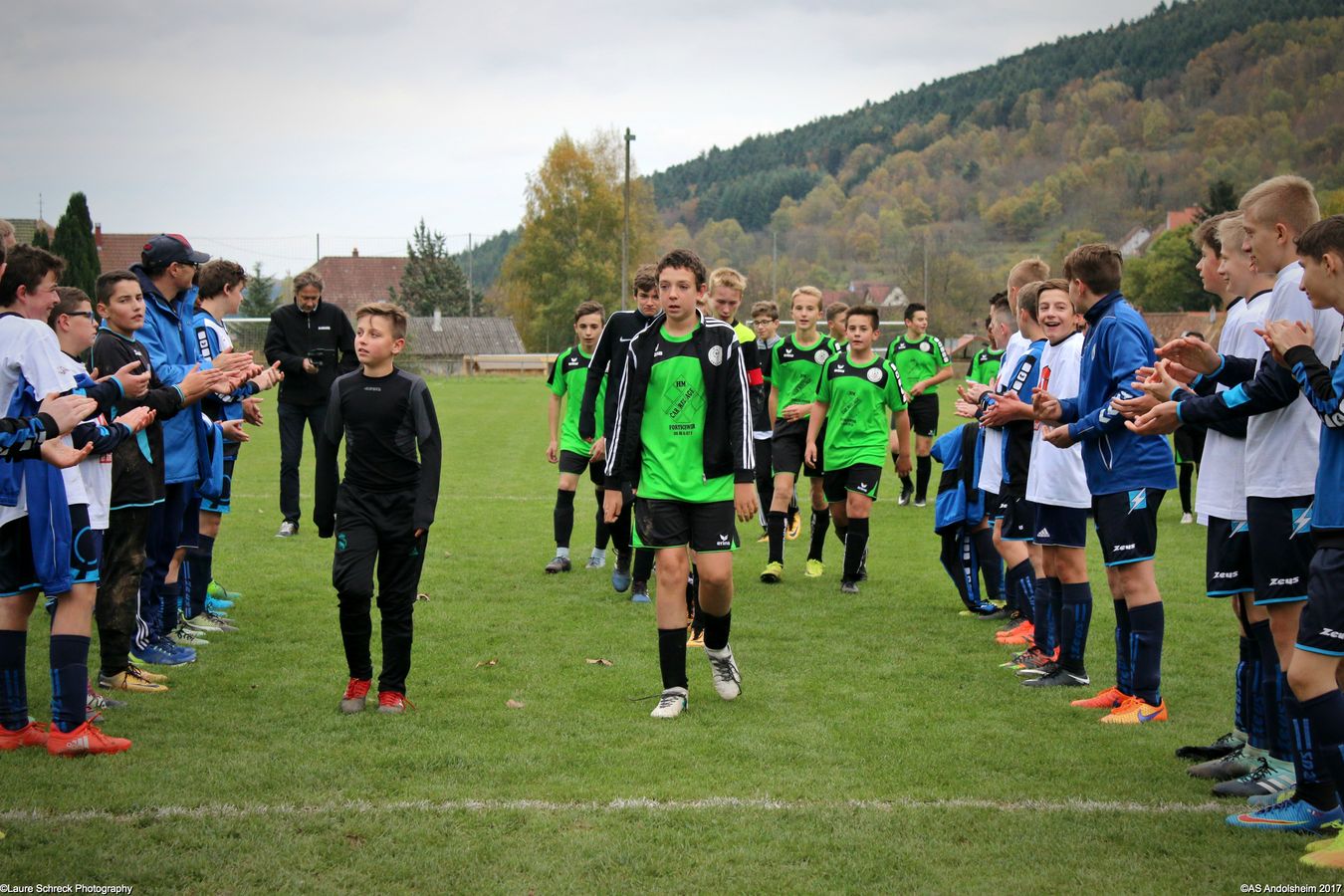 "Ce samedi 28 octobre, nos U15 ont rendu visite, pour un match amical, au SC Maisonsgoutte, au fond de la vallée de Villé. L'organisation de la rencontre est à mettre au crédit des coachs des 2 clubs qui ont fait connaissance lors de la remise des Trophées du Fair-Play au musée Würth à Erstein le 24 septembre dernier. L'idée était de faire se rencontrer les 2 lauréats départementaux saison 2016-2017 du Challenge U15 "J'ai Rêvé le Foot". L'initiative de ce match était soutenue par le District d'Alsace. Son Président en personne, Mr. René Marbach, s'est déplacé pour y assister. Il était accompagné du Président de l'AS Mundolsheim, club à l'origine du protocole "Haie d'Honneur" en Promotion 67 en début de saison et que le District aimerait généraliser.