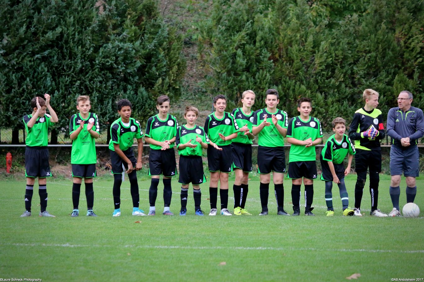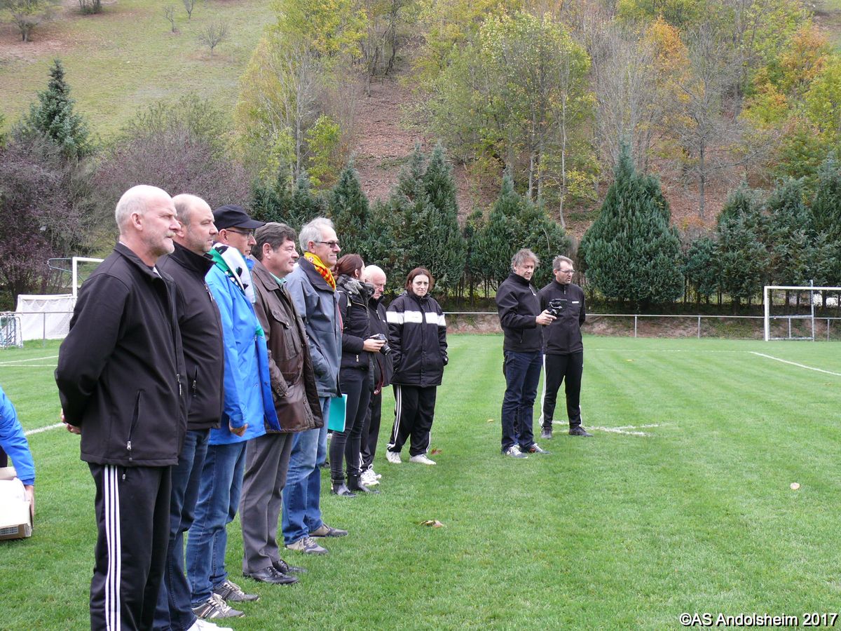 De très nombreuses personnes se sont déplacées pour soutenir les 2 équipes. Nos hôtes ont été impressionnés par la forte délégation venue d'Andolsheim. Outre les nombreux parents présents, nos jeunes pousses ont notamment été encouragées par le Président Francis Bonzon, le responsable de l'Ecole de Foot Pascal Wuest et les membres du comité Hugo Guthmann, Gilles Fouillet, Michel Horrenberger, Pierrot Faller et Laurent Huillet. Nous avons également eu la surprise de revoir notre ancienne secrétaire Fabienne, à présent membre de la commission d'appel de la Ligue Grand Est.