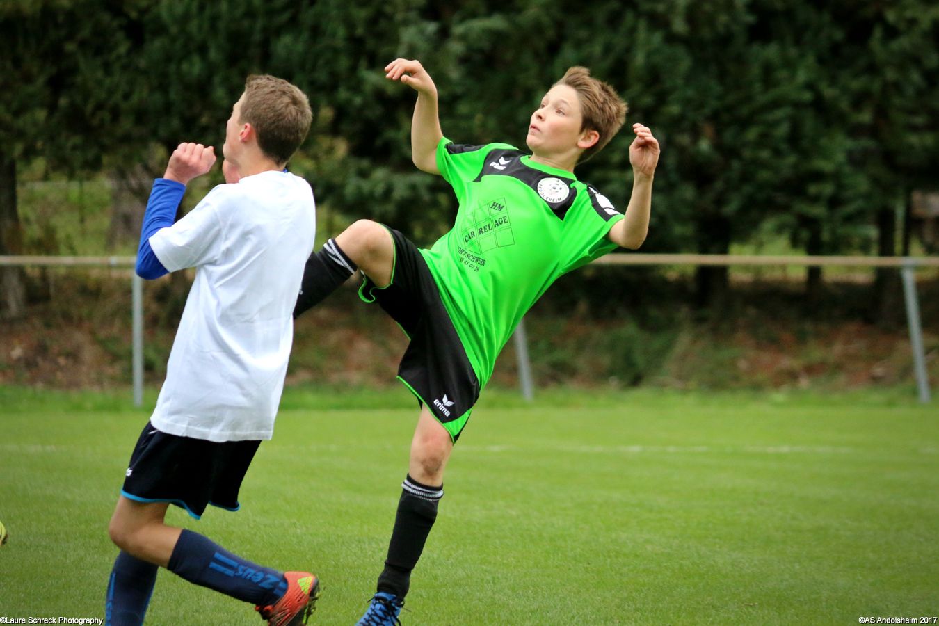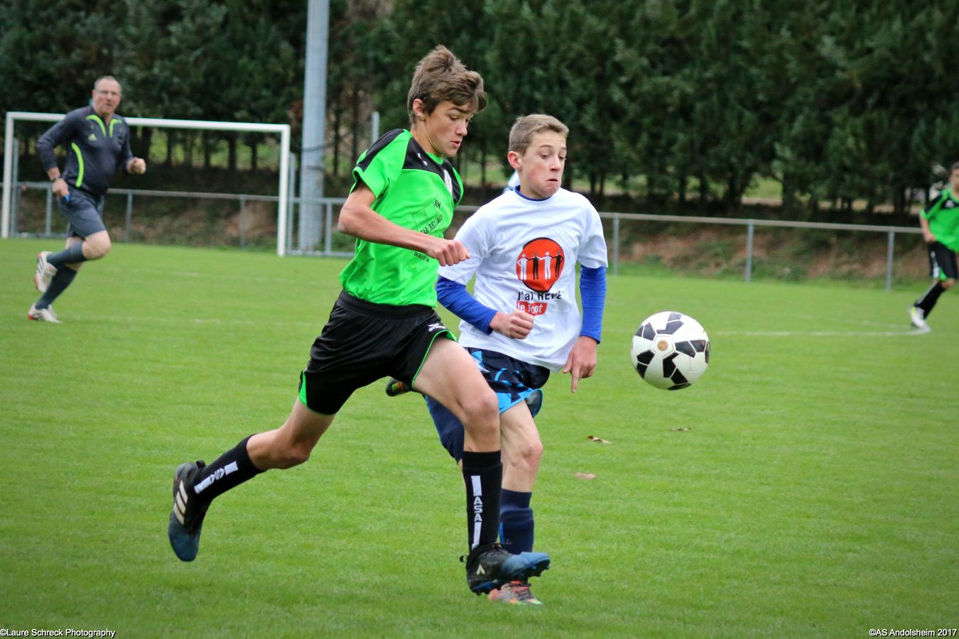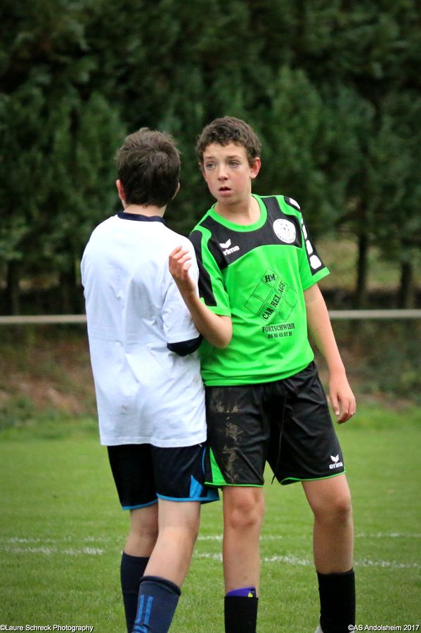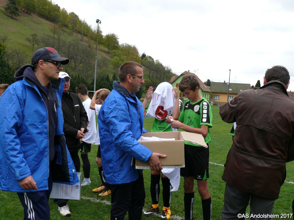 Avant la rencontre, chaque joueur a été présenté à Mr. Marbach et s'est vu remettre un T-shirt "J'ai Rêvé le Foot" par celui-ci. Le score de la rencontre reste anecdotique, puisque les 2 clubs en ont profité pour réaliser une large revue des effectifs. En effet, ils avaient convenu de faire participer tous les joueurs de la catégorie présents en ce milieu de vacances scolaires. L'AS Andolsheim s'est ainsi déplacée avec pas moins de 17 joueurs et le SC Maisonsgoutte était renforcé par la présence de 4 joueurs U16. Pour la petite histoire, nos hôtes ont remporté la rencontre par 6 buts à 4. A la fin de la rencontre, les 2 équipes se sont mutuellement fait une haie d'honneur, ainsi qu'au très bon arbitre de la rencontre, mettant en pratique le protocole initié par l'AS Mundolsheim et voulu par le District d'Alsace.