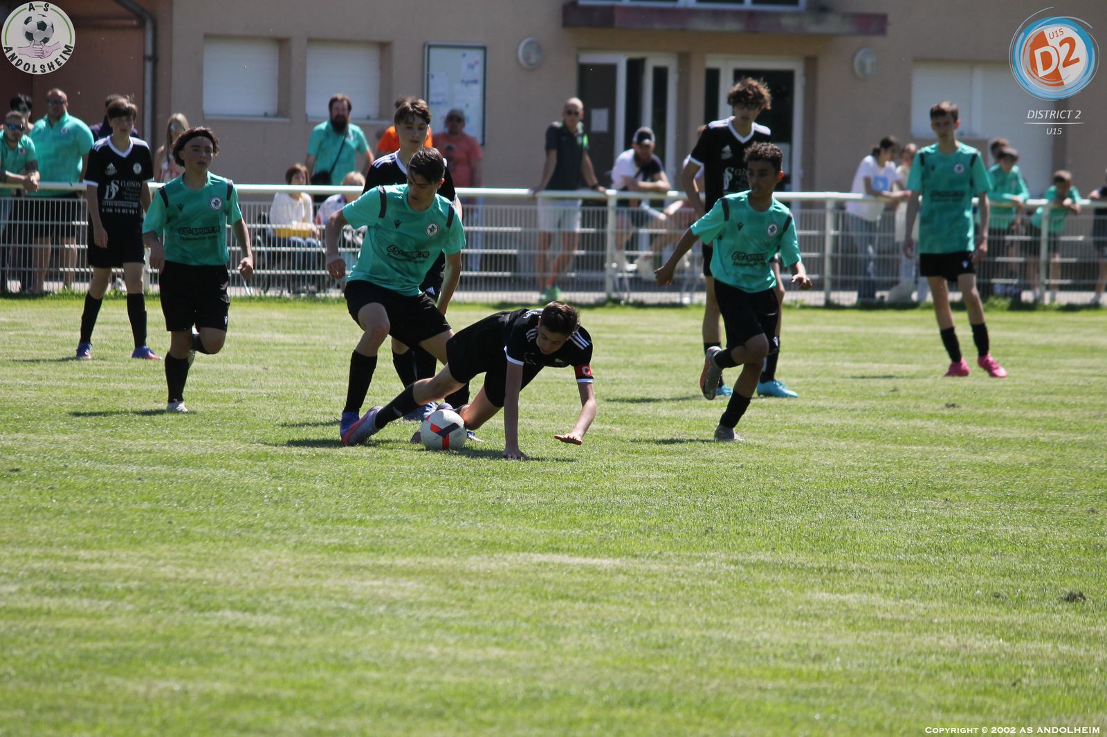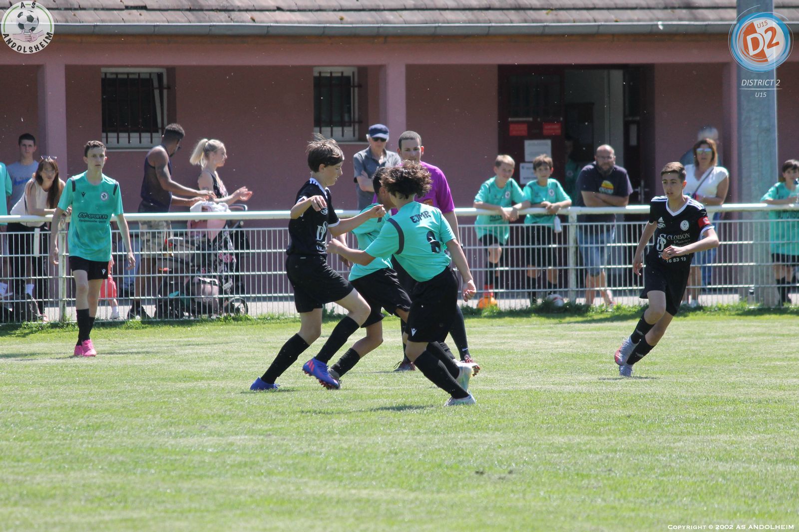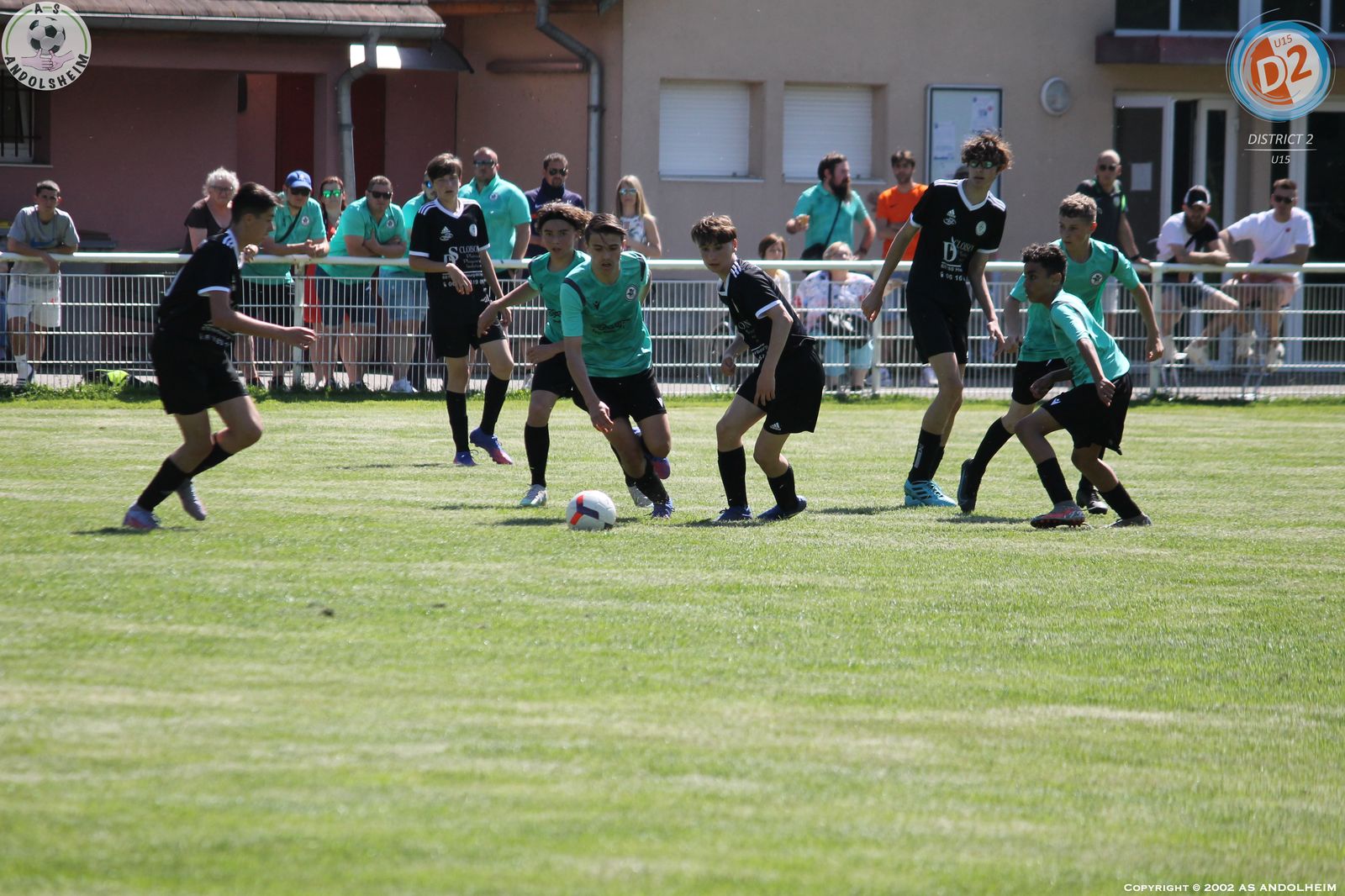 Match de tous les dangers pour nos U15 leaders avec 2 points d’avance sur le Morschwiller FC qui nous accueillait avec l’intention de nous ravir cette première place. Mais pour cela il fallait battre nos jeunes tout de noirs vêtus et je vous garantis que cette tenue est porteuse de réussite. Déjà utilisée au match aller et avec le même résultat : une très belle victoire. Pour revenir au ballon, nous avons bien démarré, un peu timorés et craintifs mais le jeu était en place et on a vite ouvert le score par Kaïs sur une passe lumineuse de Vicente. L’équipe recevante a constamment essayé d’user de balles longues et sur un coup franc lointain on a faillit se faire surprendre mais Robin est bien intervenu et ses défenseurs ont fini le travail avec hargne. Et dans la foulée, Kaïs encore lui a profité d’une bévue du portier adverse pour creuser l’écart. Avec 2 buts d’avance à la mi-temps et une chaleur accablante, il a fallu gérer l’envie adverse qui voulait vite revenir au score. Deux penaltys discutables sont tombés du ciel pour les recevants sans savoir pourquoi mais à chaque fois notre Grand ROBIN a réussi à les contrer et sur le deuxième il n’a rien pu faire sur la reprise de l’attaquant car personne n’avait suivi l’arrêt de l’homme du match. Kaïs a encore eu deux superbes occasions dont un face à face immanquable qui aurait pu et dû tuer le match. On a encore souffert, mais le groupe était décidé qu’il fallait tout faire ensemble pour éviter les regrets et c’est chose faite. Merci à Robert, Antonio et Michel pour leur aide en l’absence de notre parisien Gillou. Merci aux nombreux parents venus encourager la troupe. Cette victoire elle est à eux (les jeunes) mais vous est aussi dédiée pour tous les efforts consentis. Place maintenant à une semaine très importante pour une autre finale qui nous attend dès samedi en espérant une vague verte autour du terrain pour encourager nos jeunes verts ou noirs (on fini par être superstitieux).