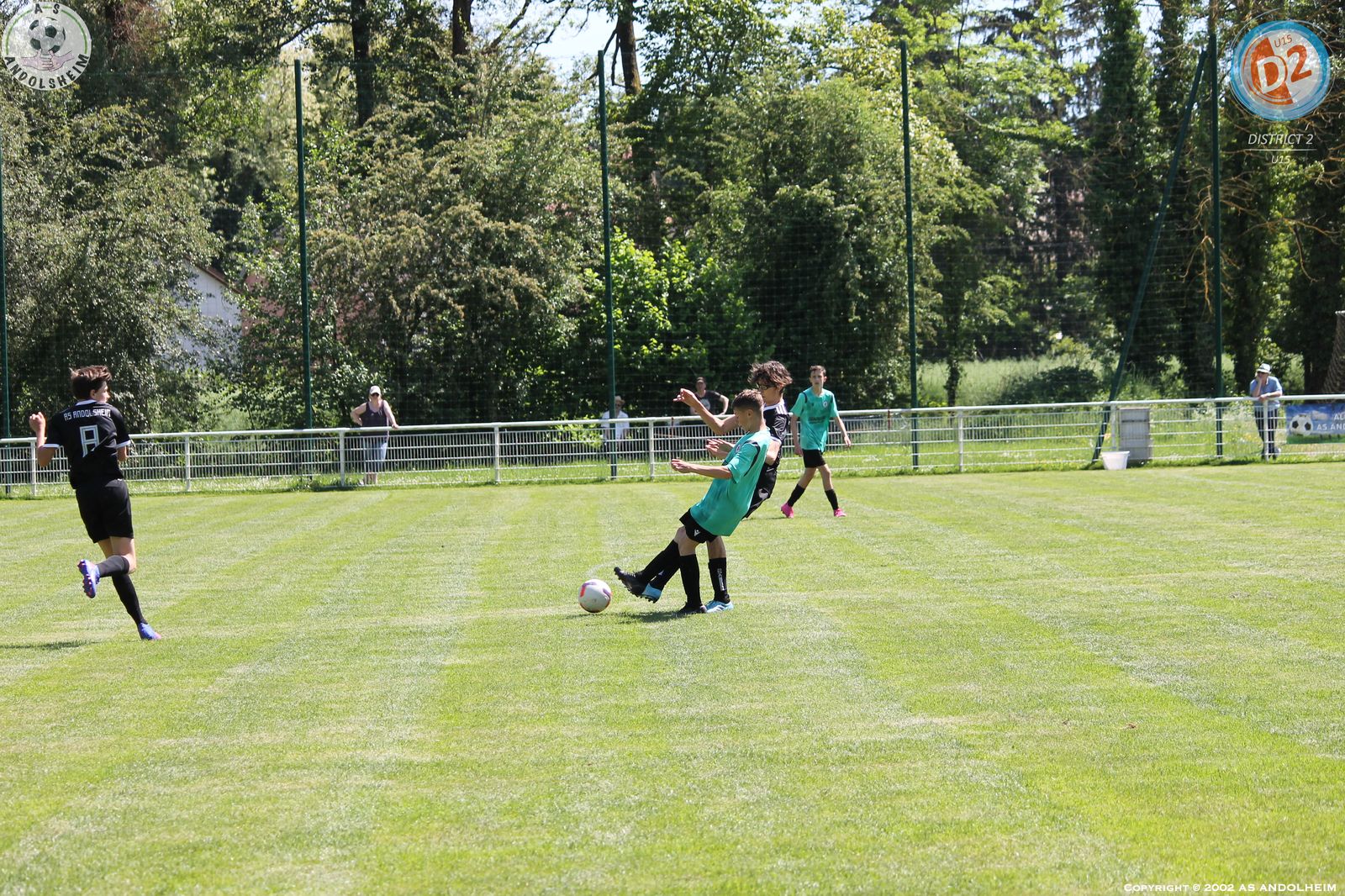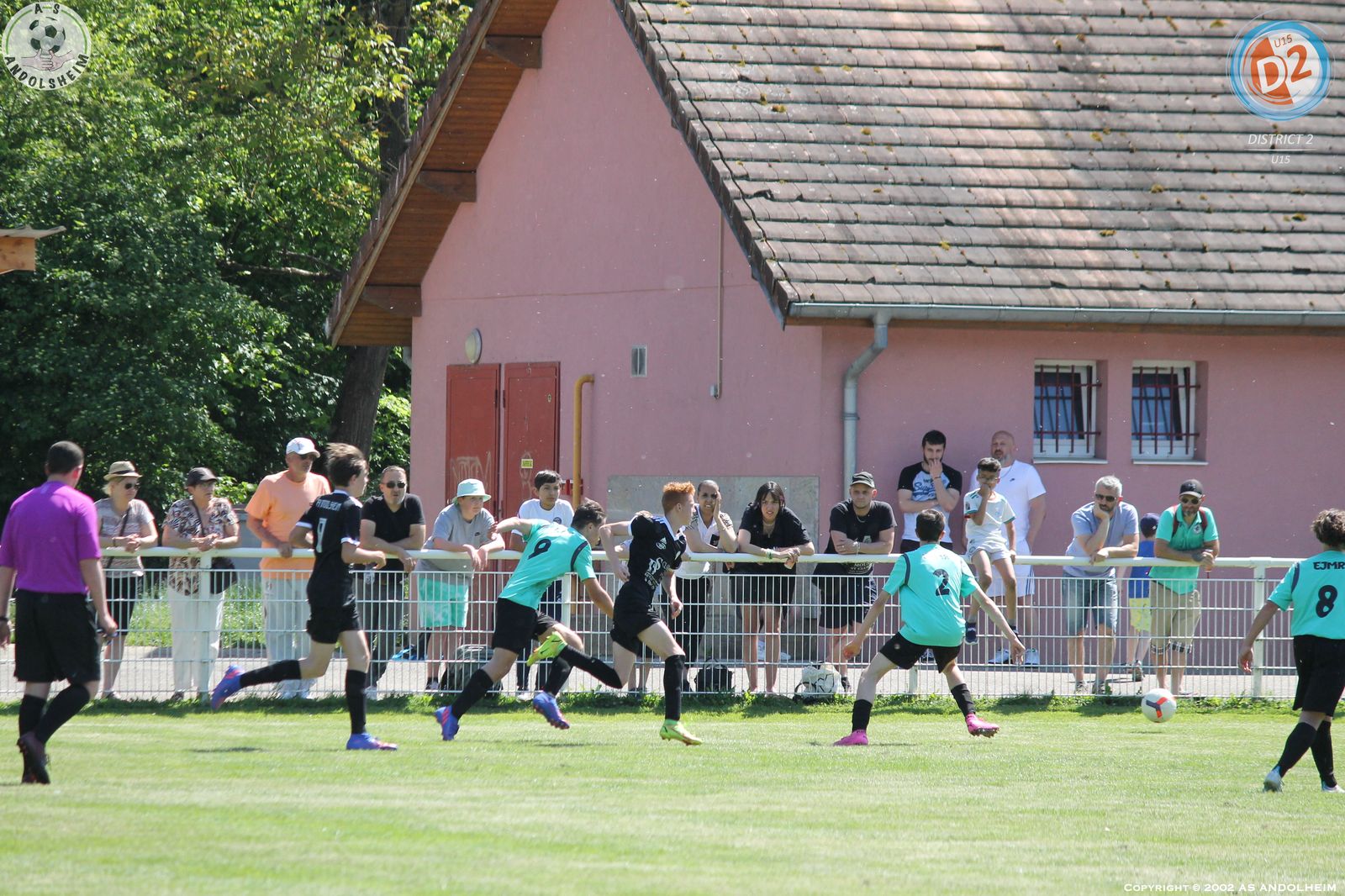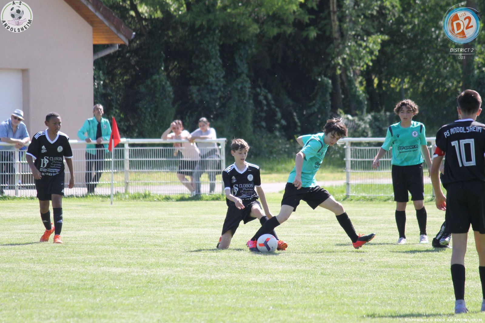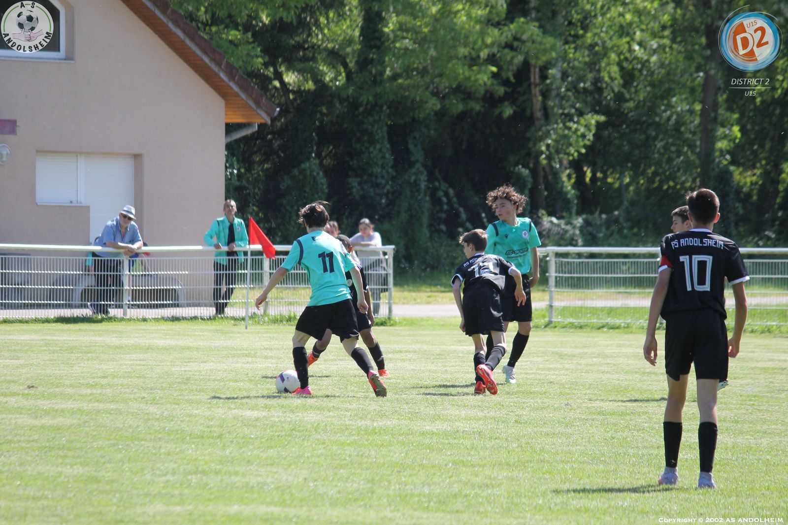 Match de tous les dangers pour nos U15 leaders avec 2 points d’avance sur le Morschwiller FC qui nous accueillait avec l’intention de nous ravir cette première place. Mais pour cela il fallait battre nos jeunes tout de noirs vêtus et je vous garantis que cette tenue est porteuse de réussite. Déjà utilisée au match aller et avec le même résultat : une très belle victoire. Pour revenir au ballon, nous avons bien démarré, un peu timorés et craintifs mais le jeu était en place et on a vite ouvert le score par Kaïs sur une passe lumineuse de Vicente. L’équipe recevante a constamment essayé d’user de balles longues et sur un coup franc lointain on a faillit se faire surprendre mais Robin est bien intervenu et ses défenseurs ont fini le travail avec hargne. Et dans la foulée, Kaïs encore lui a profité d’une bévue du portier adverse pour creuser l’écart. Avec 2 buts d’avance à la mi-temps et une chaleur accablante, il a fallu gérer l’envie adverse qui voulait vite revenir au score. Deux penaltys discutables sont tombés du ciel pour les recevants sans savoir pourquoi mais à chaque fois notre Grand ROBIN a réussi à les contrer et sur le deuxième il n’a rien pu faire sur la reprise de l’attaquant car personne n’avait suivi l’arrêt de l’homme du match. Kaïs a encore eu deux superbes occasions dont un face à face immanquable qui aurait pu et dû tuer le match. On a encore souffert, mais le groupe était décidé qu’il fallait tout faire ensemble pour éviter les regrets et c’est chose faite. Merci à Robert, Antonio et Michel pour leur aide en l’absence de notre parisien Gillou. Merci aux nombreux parents venus encourager la troupe. Cette victoire elle est à eux (les jeunes) mais vous est aussi dédiée pour tous les efforts consentis. Place maintenant à une semaine très importante pour une autre finale qui nous attend dès samedi en espérant une vague verte autour du terrain pour encourager nos jeunes verts ou noirs (on fini par être superstitieux).