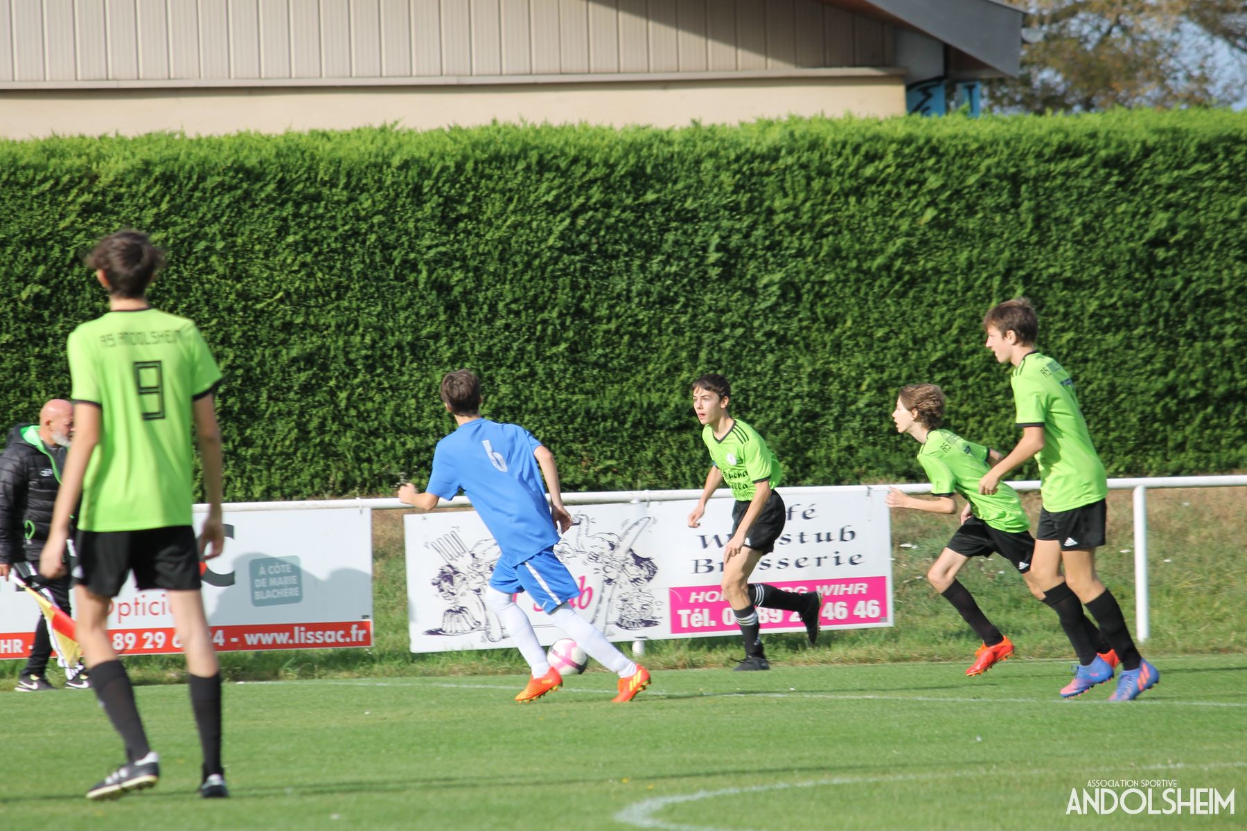 La reprise entérinait la suprématie des verts sur les corners obtenus … pour aucun concédés ! … sur l’un d’eux , Achille manquait le cadre … et comme souvent , l’arme fatale du contre punissait les verts, avec au départ une relance du gardien , un relai au milieu, une passe dans la profondeur, pour un 1 contre 1 fatidique pour l’ouverture du score du FC Horbourg .. bref un but c’est simple comme une contre attaque !