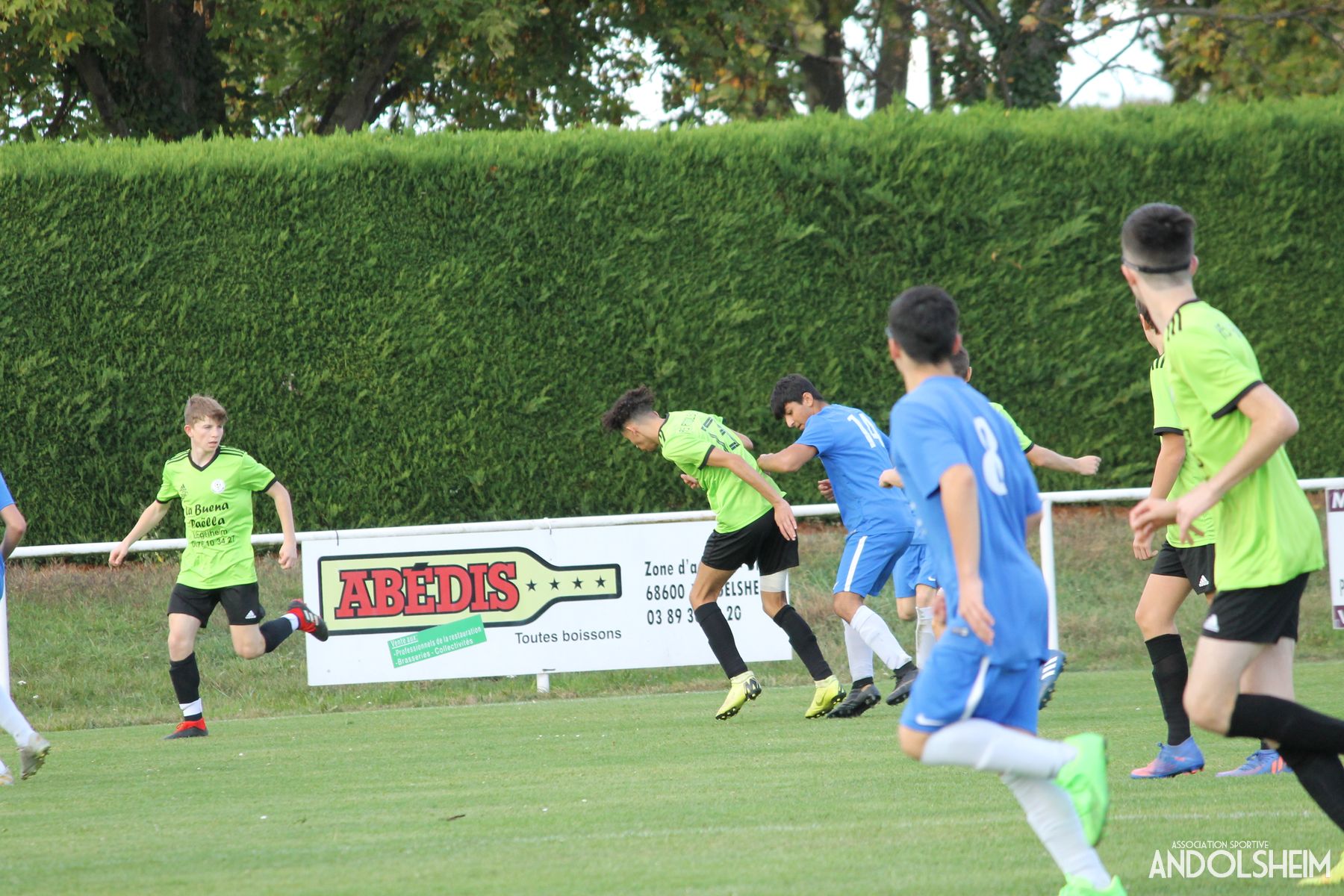 Zayd quelques minutes plus tard trouvait sur un contre le poteau gauche et la contre attaque qui suivait punissait les verts une deuxième fois avant que finalement le juge de touche invalide la réalisation des bleus .