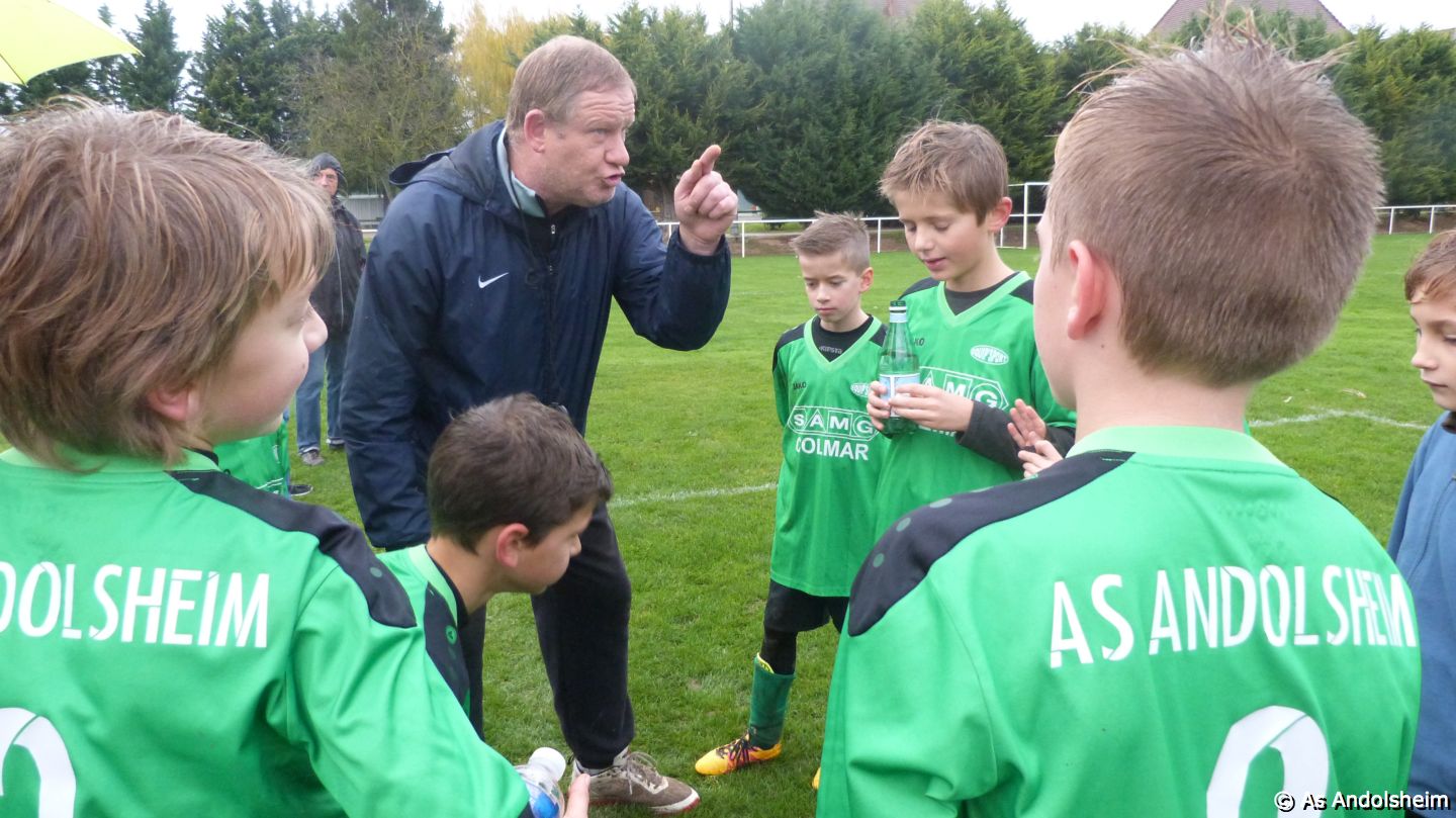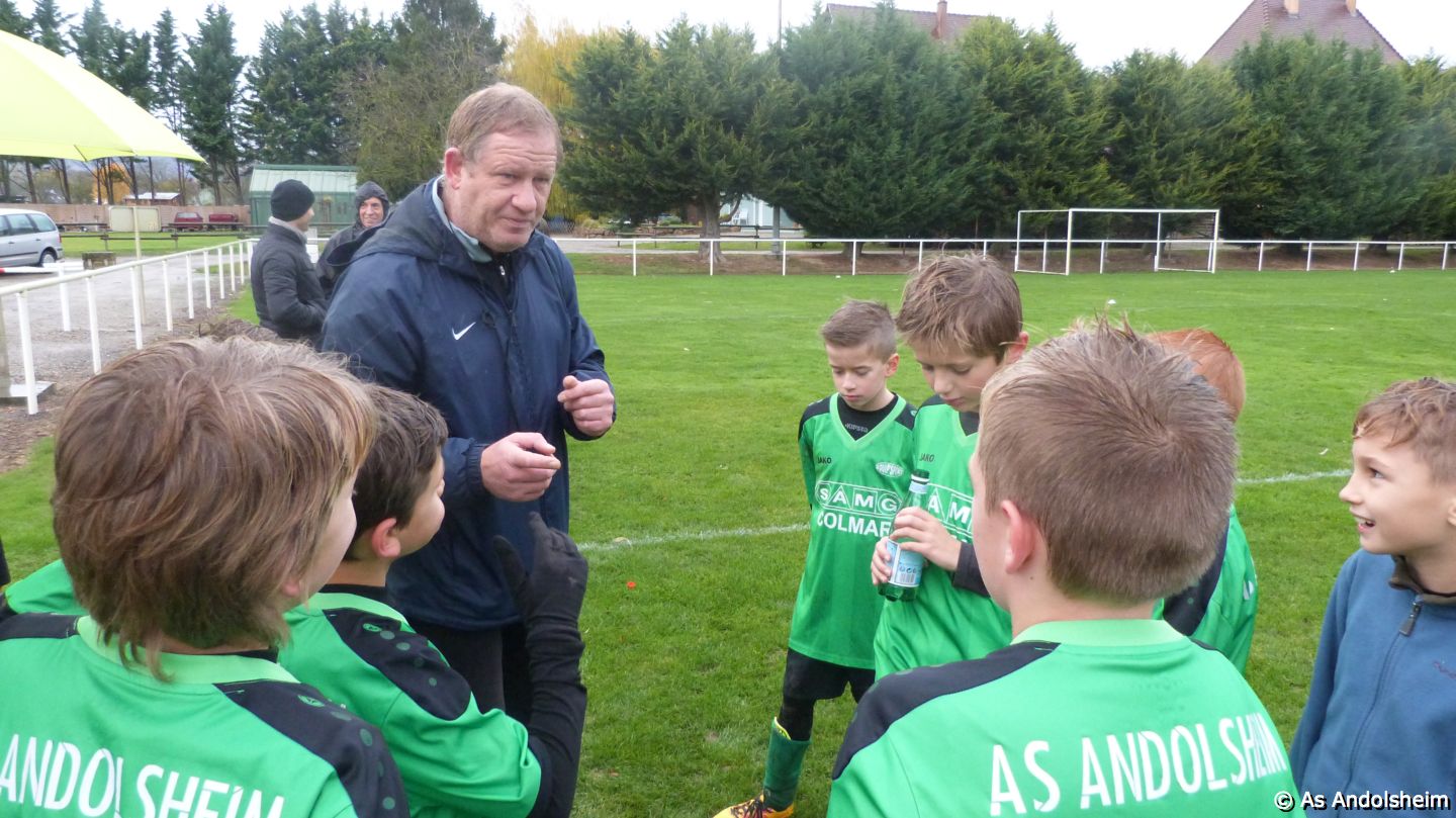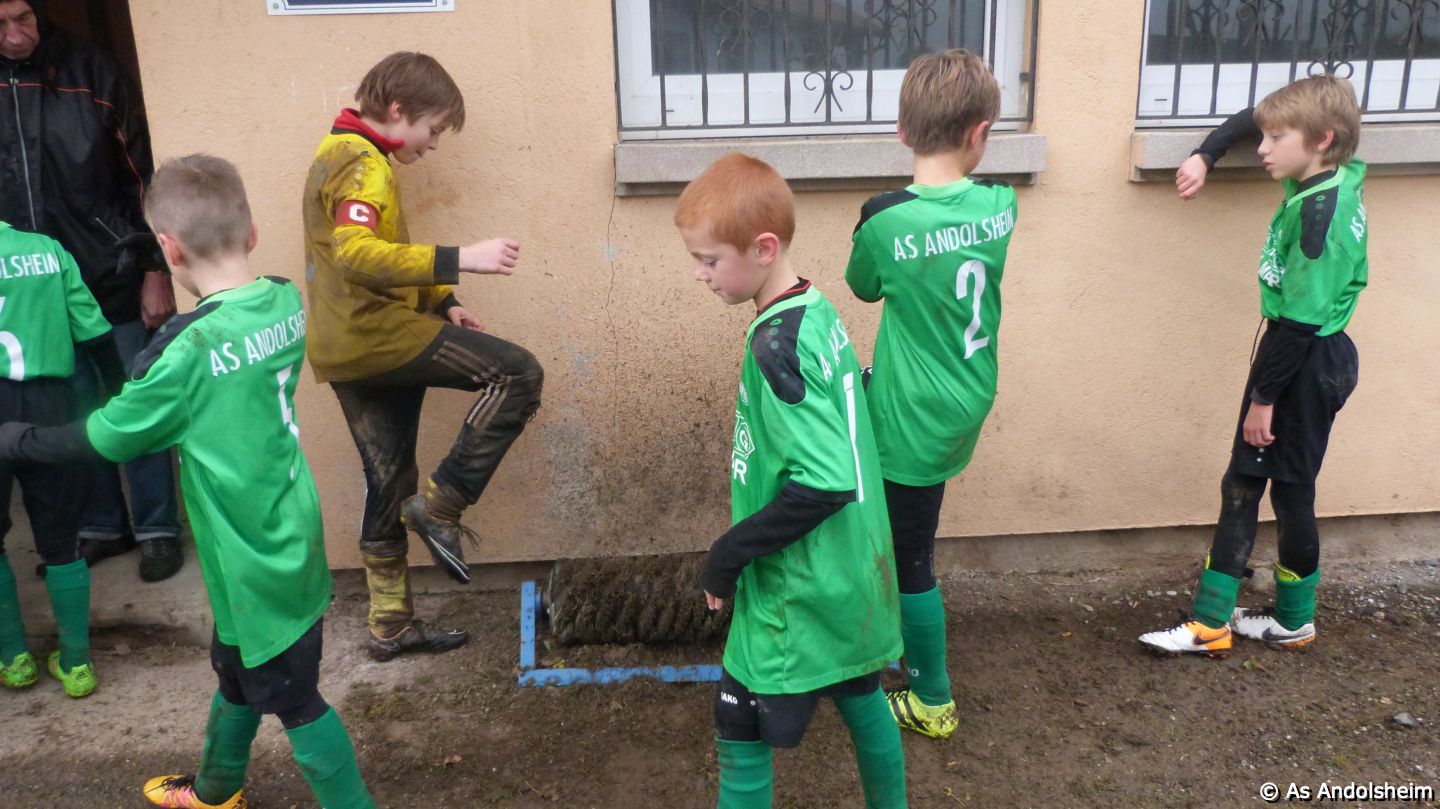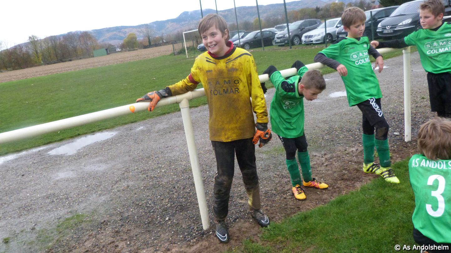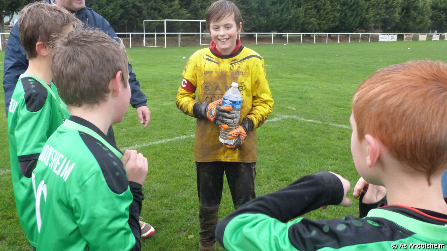 Avec notre ligne d’arrière au complet et notre gardien capitaine Clement qui assure et rassure de match en match ( en a profité pour se faire un masque de bien être et il adore la boue voir photo ). Bertrand « le calme » qui à l’arrière droite et dans ce couloir droit il apporte beaucoup par ses montées et sa pression sur l’adversaire (certain que bientôt il va marqué son but) coté gauche à l’arrière notre Maxou « le BOLT de l’équipe », en tant qu’avant ou ailier c’est le style d’arrière que je voudrais éviter (rapide, sangsue , un coup à gauche , au centre un arrière qui déstabilise une ligne d’attaque, Robin notre libéro la maitrise en soi d’une puissance de frappe et physique super relanceur incroyable ,alors que voulez vous avec une ligne d’arrière et gardien comme ceci, ça rassure et je vous parlerais des avants après. Donc malgré un terrain lourd et difficile de garder les appuis ANDO pressa d’entrée et à la 8éme sur un centre de Xavier et récupération d’Hector et un une deux avec Matteo qui tira au but ballon relâché par le gardien……GOAL……….. à l’affût dans la surface Noah par rage s’arracha pour tirer et mettre le ballon au fond des gages magnifique bravo Noah, jeune joueur en plein d’avenir. 1/0 pour ANDO. Là connaissant les joueurs je savais que cela irait plus loin, engagement de Ostheim et comme à leurs habitudes gros pressing de ANDO sur le porteur du ballon, maitrise total du jeu pour ANDO avec des combinaisons de passe à trois, d’ouverture et un Hector par une technique extra ( bon même si parfois il y a un geste de trop ) triple passage de jambes au milieu de la défense et une feinte de tir pour finalement GOAL ………….. BUT super de Hector après une feinte de tir un petit lobe qui se loge dans la lucarne 2/0 pour ANDO …. JUSTE AVANT LA FIN DE LA 1 ER MI TEMPS. Le temps pour moi de vous parlez de la ligne d’attaque du jour : Xavier ailier droit qui de match en match apporte de l’offensivité sur la défense .Kenan petit joueur rapide et très technique un petit diable pour l’adversaire , Noah de plus en plus percutant très sérieux aussi bien en attaque et quand il redescend bon dribbleur et 1 but aujourd’hui , Matteo joueur puissant qui quand la chance du buteur va revenir ça va faire mal, le manque de réussite ça me connait en tant qu’avant centre entre les barres transversales, les poteaux ……. , mais bientôt ça va rentrer et le Duo Matteo avec …HA HA Hector Mr mister BUT
