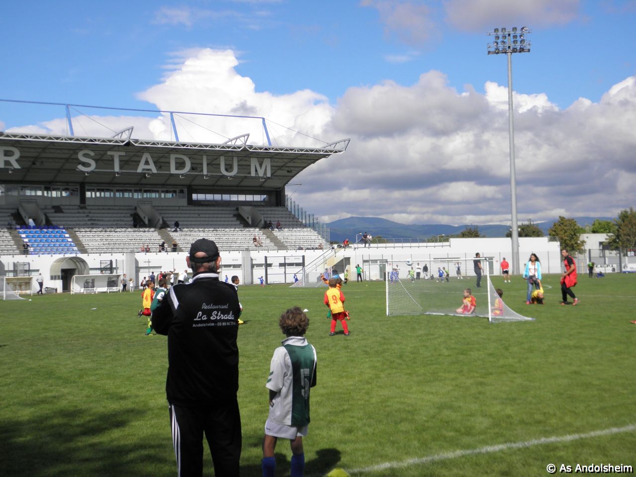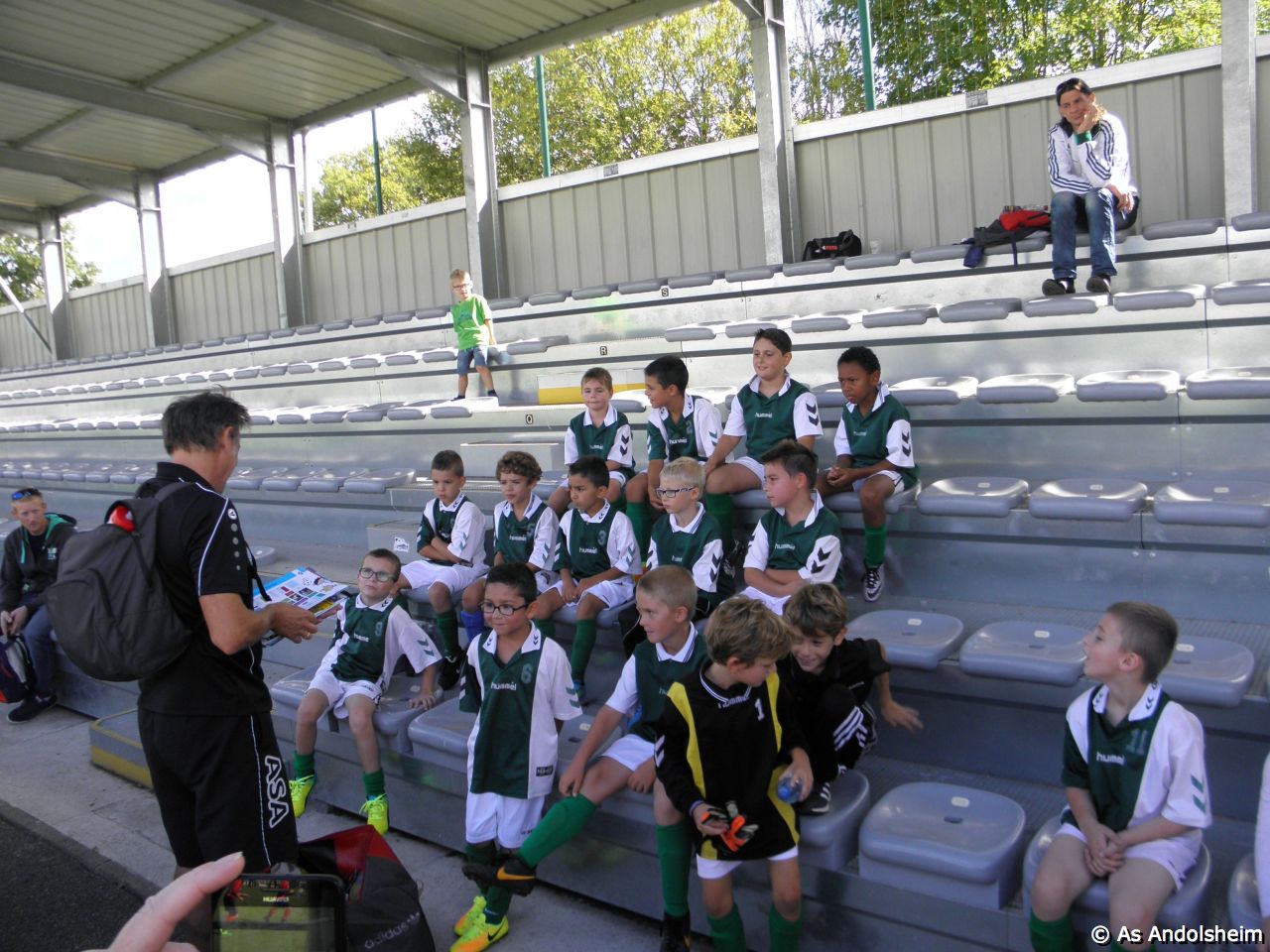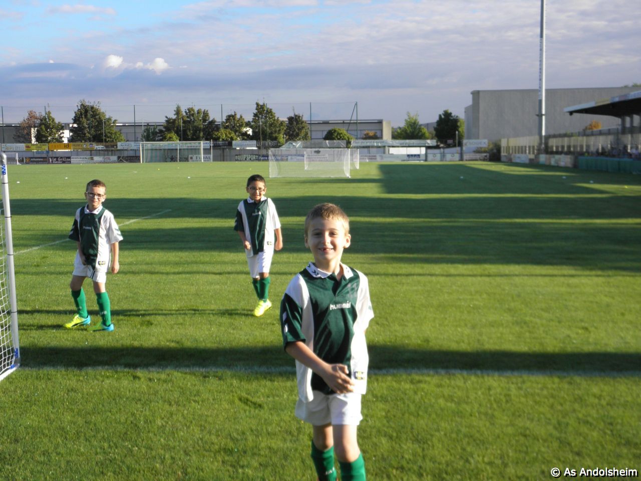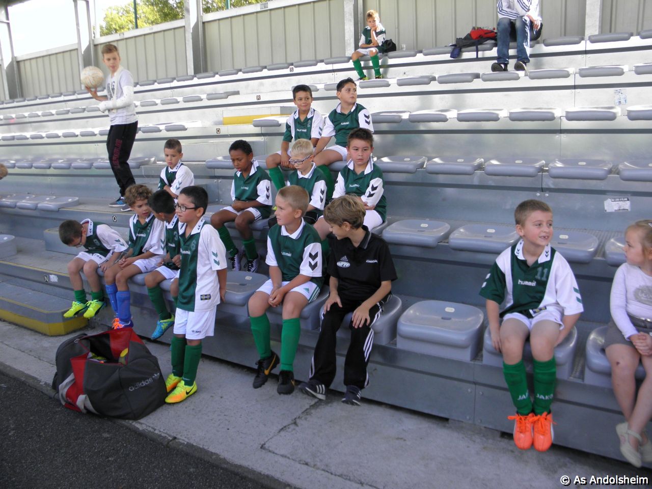 pour le coup d'envoi de la saison, lors de ce tournoi de rentrée qui réunissait environ une quarantaine d'équipes du secteur dont deux équipes de l'As Andolsheim avec pour les plus jeunes la découverte d'un premier match de football .. félicitons la parfaite organisation des Src ... 8 terrains dont 4 sur le terrain d'honneur aménagés avec des vrais buts aux normes et le plaisir de pouvoir faire trembler les filets (L'Asa avait pour l'occasion prêté quatre de ces buts aux Src ) ... ça y est la saison est lancé pour les jeunes pousses de l'Asa.