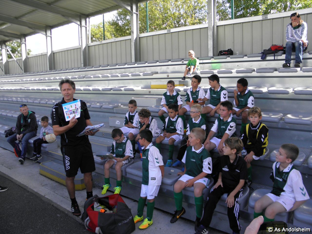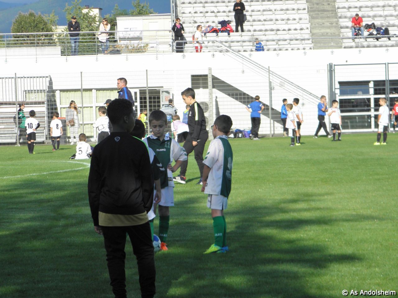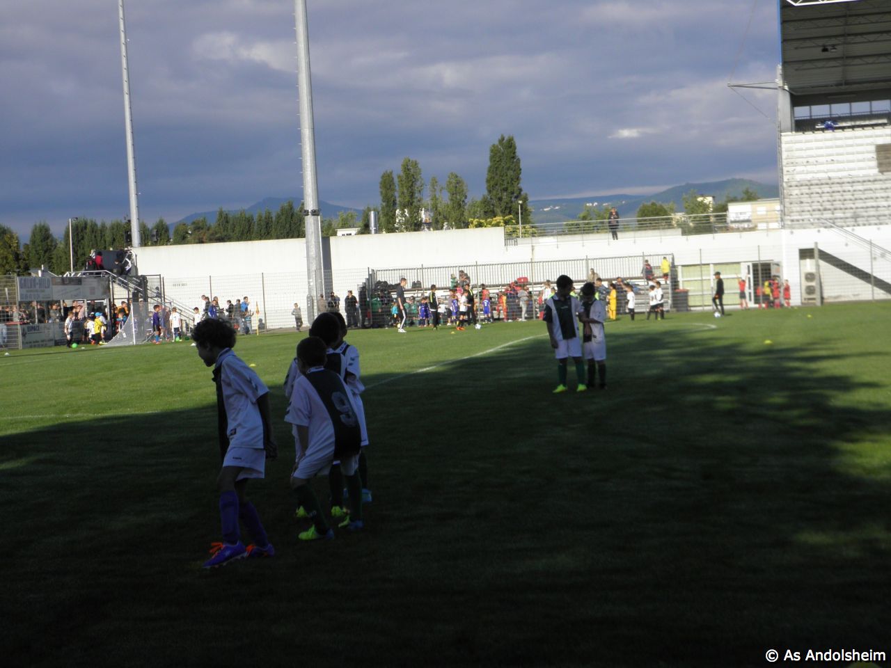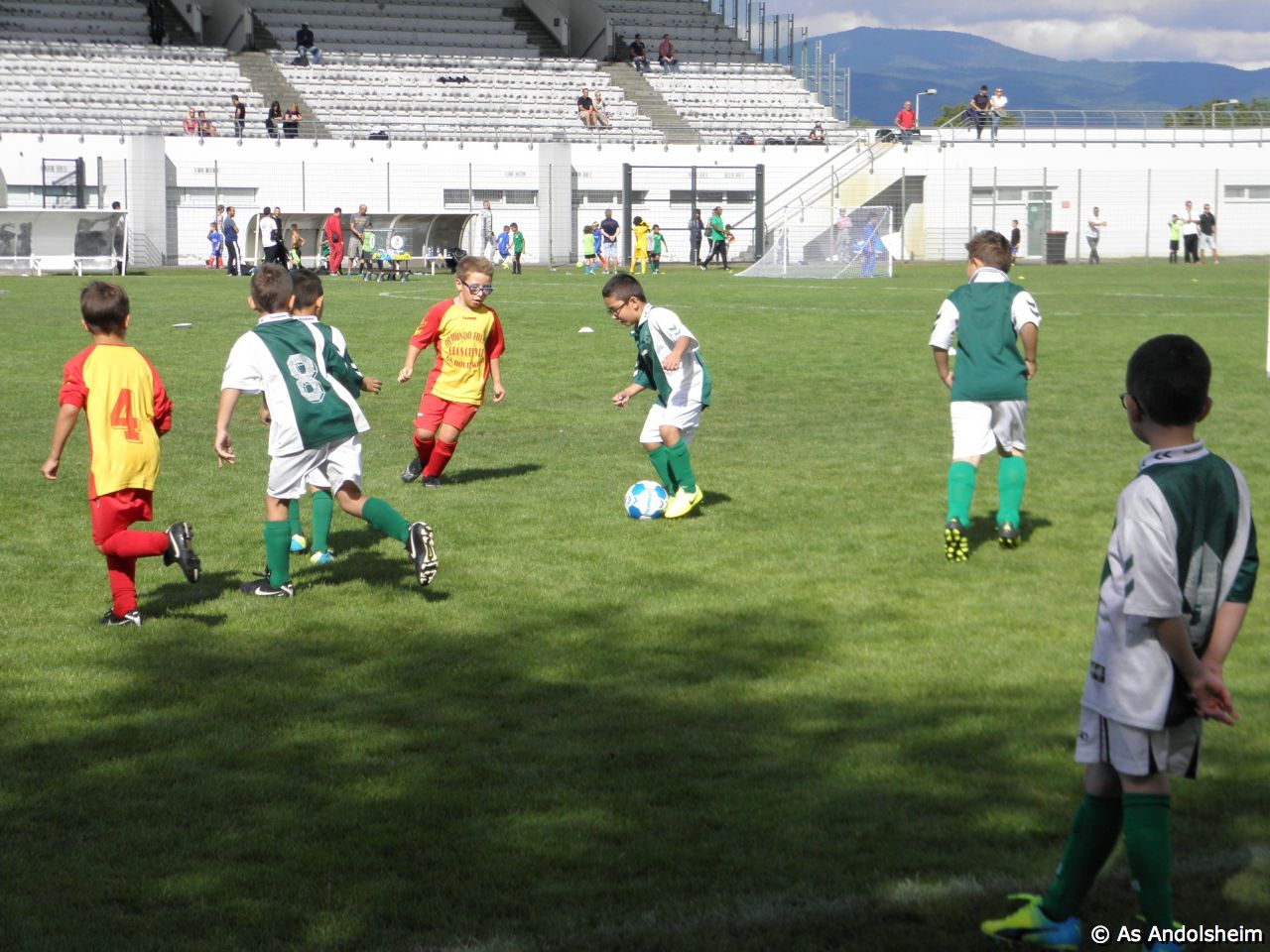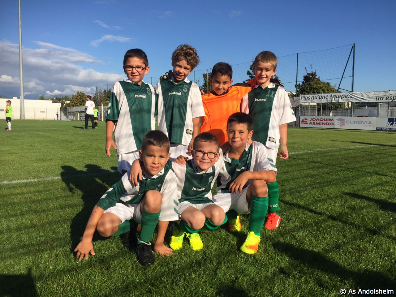 pour le coup d'envoi de la saison, lors de ce tournoi de rentrée qui réunissait environ une quarantaine d'équipes du secteur dont deux équipes de l'As Andolsheim avec pour les plus jeunes la découverte d'un premier match de football .. félicitons la parfaite organisation des Src ... 8 terrains dont 4 sur le terrain d'honneur aménagés avec des vrais buts aux normes et le plaisir de pouvoir faire trembler les filets (L'Asa avait pour l'occasion prêté quatre de ces buts aux Src ) ... ça y est la saison est lancé pour les jeunes pousses de l'Asa.
