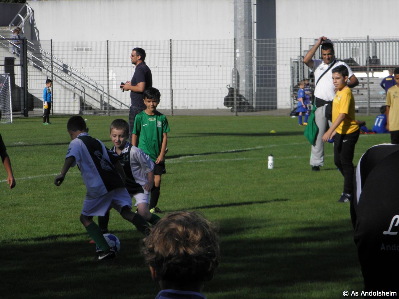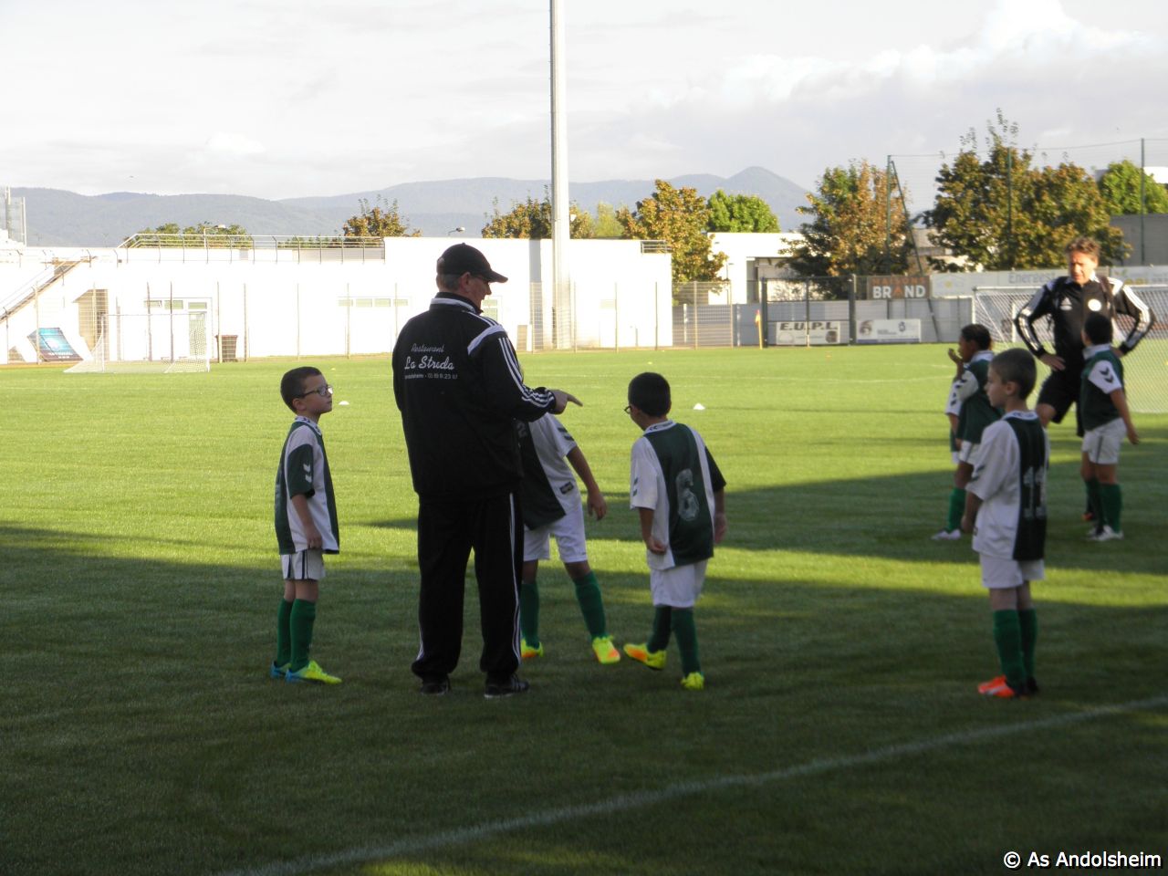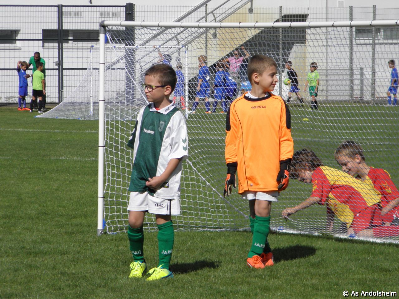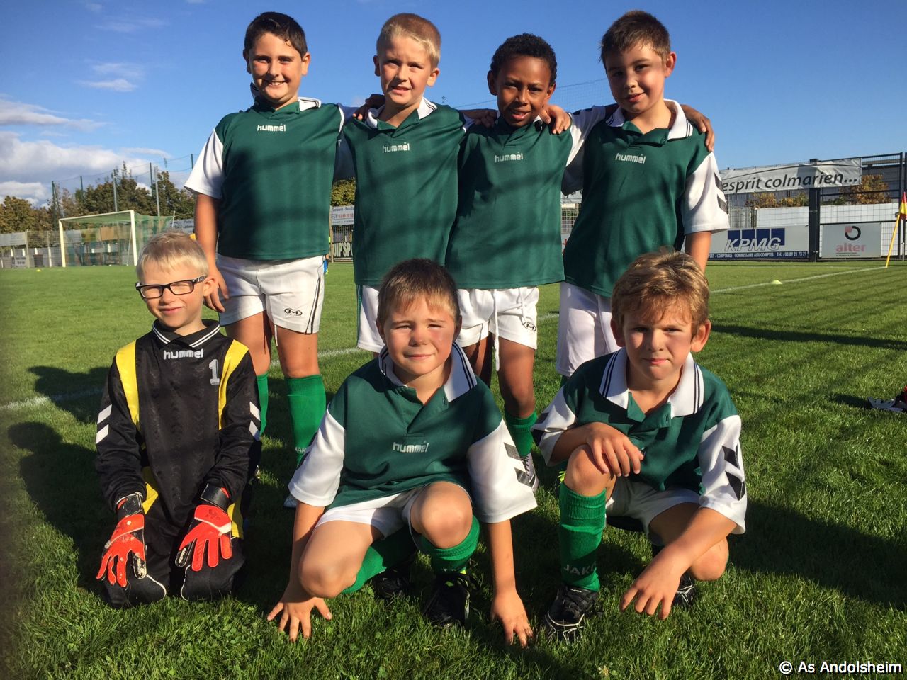 pour le coup d'envoi de la saison, lors de ce tournoi de rentrée qui réunissait environ une quarantaine d'équipes du secteur dont deux équipes de l'As Andolsheim avec pour les plus jeunes la découverte d'un premier match de football .. félicitons la parfaite organisation des Src ... 8 terrains dont 4 sur le terrain d'honneur aménagés avec des vrais buts aux normes et le plaisir de pouvoir faire trembler les filets (L'Asa avait pour l'occasion prêté quatre de ces buts aux Src ) ... ça y est la saison est lancé pour les jeunes pousses de l'Asa.