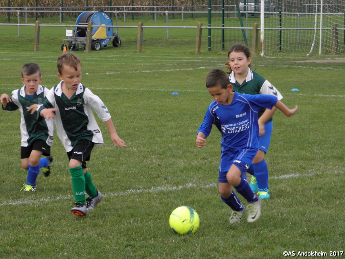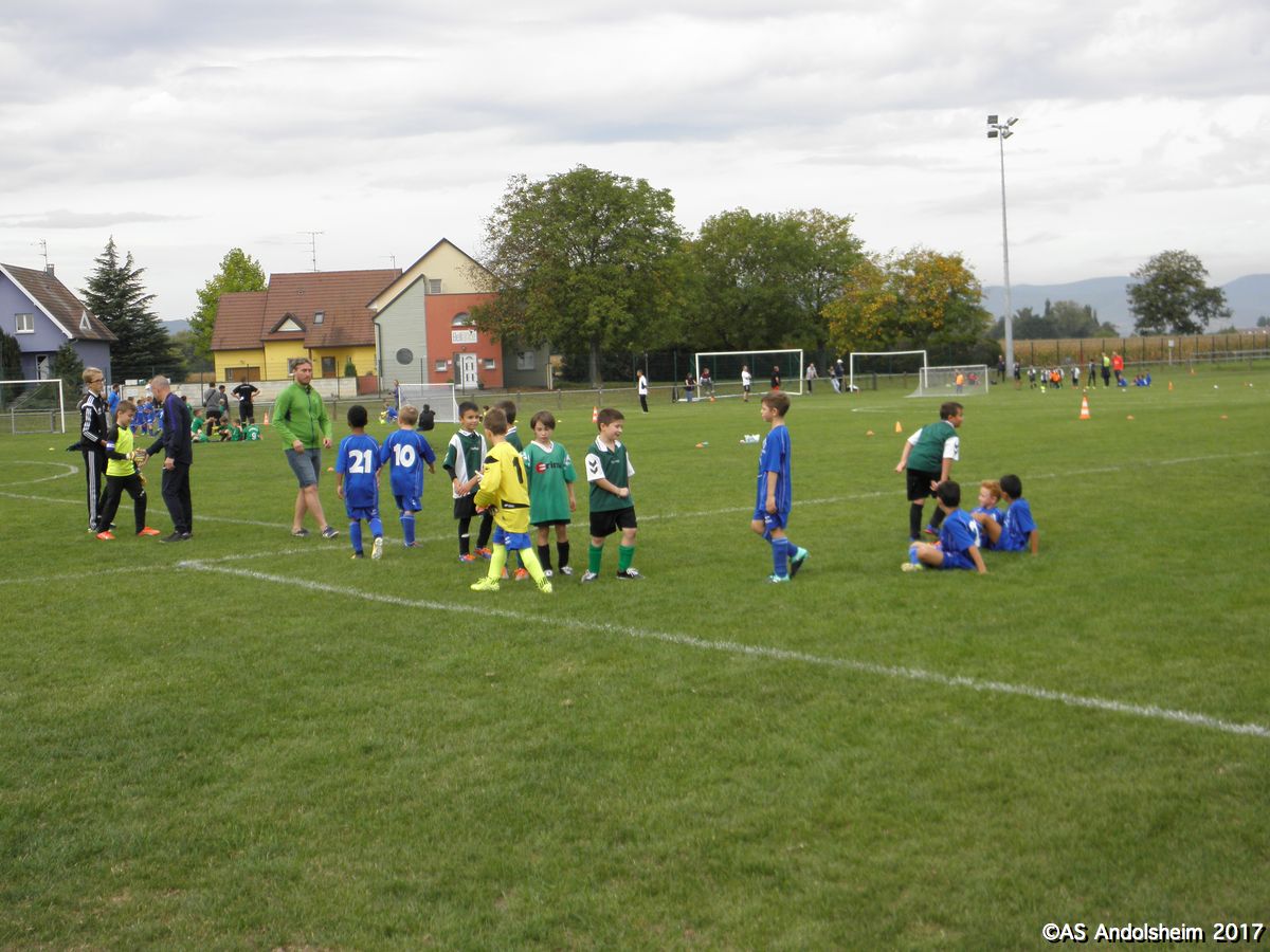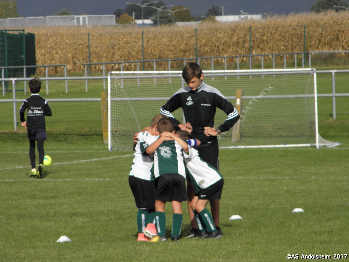 "Pour la reprise de la phase automne de la Ronde des Débutants, c'est l'ASA qui était en charge d'ouvrir le bal en accueillant les autres équipes du groupe. C'est par une matinée douce et sans nuages que notre club a reçu ses homologues de l'ASC Biesheim (2 équipes), des SR Widensolen et du FC Horbourg (2 équipes). De notre côté, nous avons engagé 3 équipes qui étaient encadrées par Emmanuelle, Maxime et Marc (papa de Gabin). L'arbitrage a été assuré par Mathias Motsch, Théo Heinrich, Mathieu Hélin et Viktor Ehrlacher, tous les 4 joueurs U15 au club. La météo aidant, c'est avec l'enthousiasme propre à l'âge des Débutants que chaque participant a défendu de son mieux les couleurs de son club lors de 2 rencontres de 2x10 minutes. Afin que chacun ait une chance de toucher le ballon et de marquer un but, la Ligue de Football a préconisé l'organisation d'une séance de tirs aux buts à la fin de la 1ère rencontre. Les enfants se sont très vite pris au jeu et ont imité le comportement des joueurs professionnels lors des tirs aux buts visibles à la télévision. Ils se tenaient par les épaules, criaient à tue-tête pour encourager leur tireur ou leur gardien. C'était une folie douce, rafraîchissante et surtout innocente. Comme tout le monde s'est pris au jeu, il a été convenu d'organiser une seconde séance de penalties après la seconde rencontre. La matinée s'est achevée au centre du terrain. Tous les enfants se sont réunis et ont formé une ronde géante. Animés par un éducateur de Horbourg, ils ont remercié notre club pour l'organisation, les parents présents venus les encourager, leurs entraîneurs et les arbitres. Dans un éclat de rire général, les enfants se sont ensuite laissé tomber par terre les uns après les autres pour un "domino géant". Pour clore la matinée, tout le monde s'est retrouvé, toujours dans la joie et la bonne humeur, autour d'un bon goûter. Un grand merci à Pascal et Jean qui ont monté en toute hâte, avant le début du plateau, les filets sur les nouveaux buts. Cela a permis à tous de pouvoir tirer sur de vrais buts sur les 4 terrains."