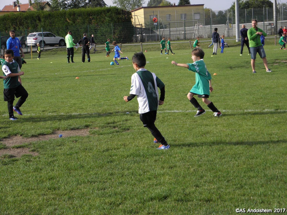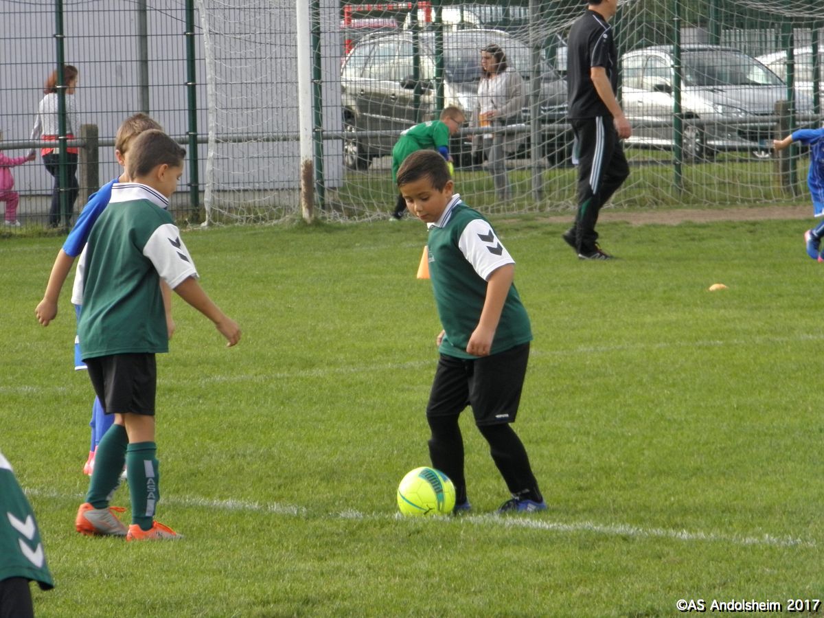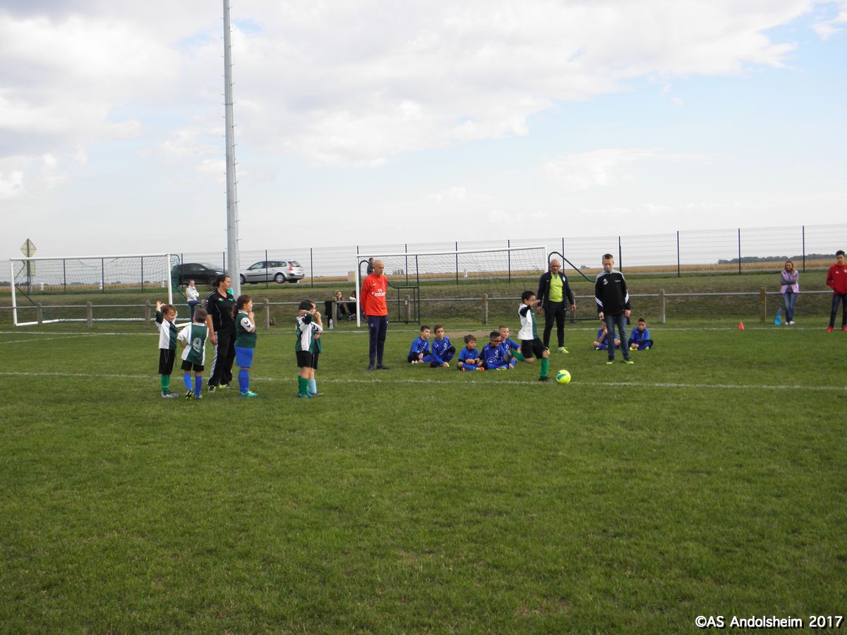 "Pour la reprise de la phase automne de la Ronde des Débutants, c'est l'ASA qui était en charge d'ouvrir le bal en accueillant les autres équipes du groupe. C'est par une matinée douce et sans nuages que notre club a reçu ses homologues de l'ASC Biesheim (2 équipes), des SR Widensolen et du FC Horbourg (2 équipes). De notre côté, nous avons engagé 3 équipes qui étaient encadrées par Emmanuelle, Maxime et Marc (papa de Gabin). L'arbitrage a été assuré par Mathias Motsch, Théo Heinrich, Mathieu Hélin et Viktor Ehrlacher, tous les 4 joueurs U15 au club. La météo aidant, c'est avec l'enthousiasme propre à l'âge des Débutants que chaque participant a défendu de son mieux les couleurs de son club lors de 2 rencontres de 2x10 minutes. Afin que chacun ait une chance de toucher le ballon et de marquer un but, la Ligue de Football a préconisé l'organisation d'une séance de tirs aux buts à la fin de la 1ère rencontre. Les enfants se sont très vite pris au jeu et ont imité le comportement des joueurs professionnels lors des tirs aux buts visibles à la télévision. Ils se tenaient par les épaules, criaient à tue-tête pour encourager leur tireur ou leur gardien. C'était une folie douce, rafraîchissante et surtout innocente. Comme tout le monde s'est pris au jeu, il a été convenu d'organiser une seconde séance de penalties après la seconde rencontre. La matinée s'est achevée au centre du terrain. Tous les enfants se sont réunis et ont formé une ronde géante. Animés par un éducateur de Horbourg, ils ont remercié notre club pour l'organisation, les parents présents venus les encourager, leurs entraîneurs et les arbitres. Dans un éclat de rire général, les enfants se sont ensuite laissé tomber par terre les uns après les autres pour un "domino géant". Pour clore la matinée, tout le monde s'est retrouvé, toujours dans la joie et la bonne humeur, autour d'un bon goûter. Un grand merci à Pascal et Jean qui ont monté en toute hâte, avant le début du plateau, les filets sur les nouveaux buts. Cela a permis à tous de pouvoir tirer sur de vrais buts sur les 4 terrains."