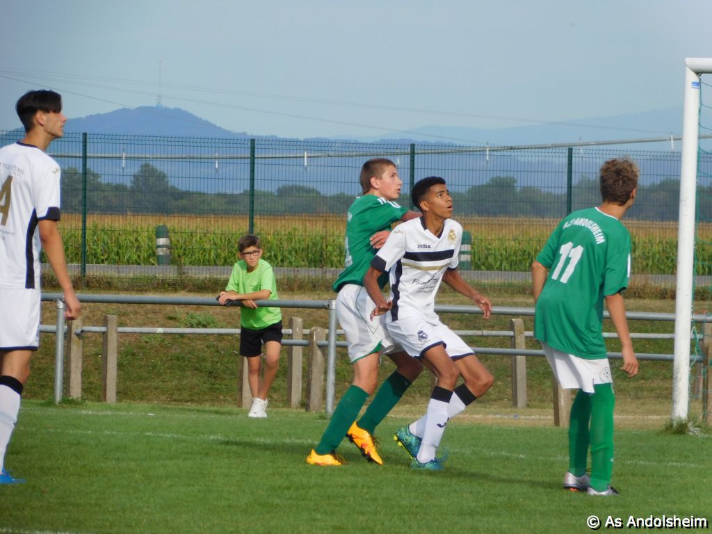 "La formation U18 de l’ASA a eu fort à faire face à une équipe du Real Mulhouse bien décidée à se qualifier. 90 minutes plus tard , l’arbitre officiel, d’ailleurs excellent tout au long de la rencontre, validait la qualification des visiteurs. L’ASA leur offrait une belle collation et ils reprirent l’autoroute mais dans l’autre sens.