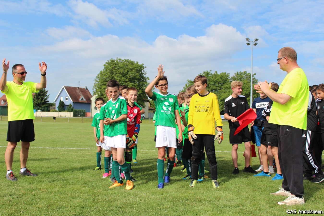 premier volet de cet événement, les rencontres de l'école de foot de l'AS Andolsheim ont lancé les réjouissances de ce 70 ème anniversaire du club, des Pitchounes au U 13, ... une mention spéciale et nos remerciements à Alain et les U 15 du club pour l'arbitrage des rencontres ainsi qu'a Pascal (ex espoir du club reconverti dans la communication) et DJ Ewen pour l'animation de cette matinée.