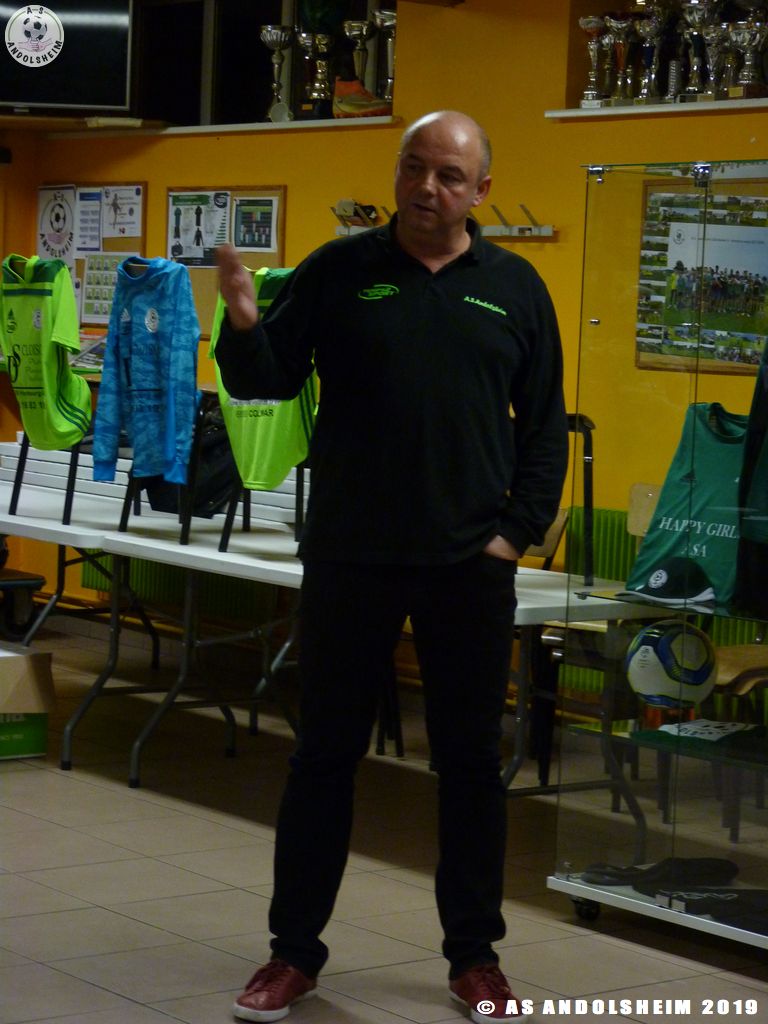 Le Président Francis BONZON a pris la parole et remercié nos sponsors pour leur soutien, grâce à eux nos équipes vont avoir de très beaux équipements pour bien représenter l'AS Andolsheim lors des matchs, il a bien expliqué que sans ces sponsors ce serait compliqué, les équipements et le matériels ont un coût très important.