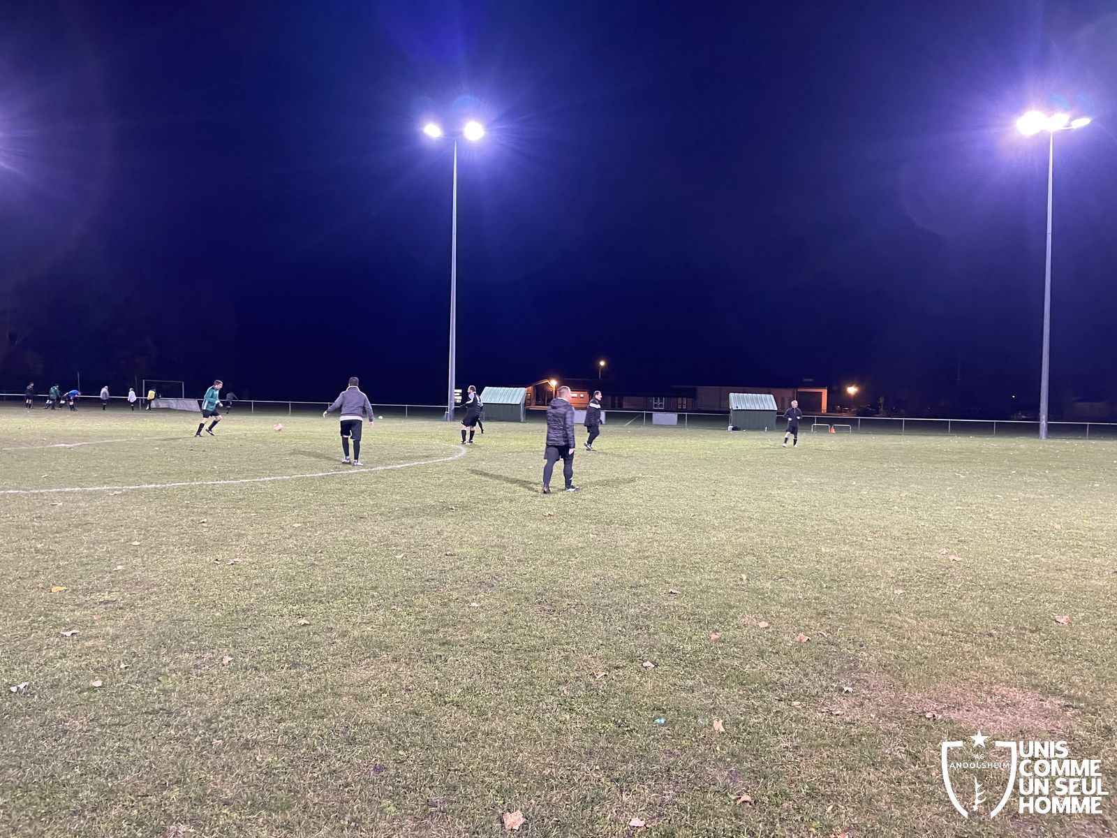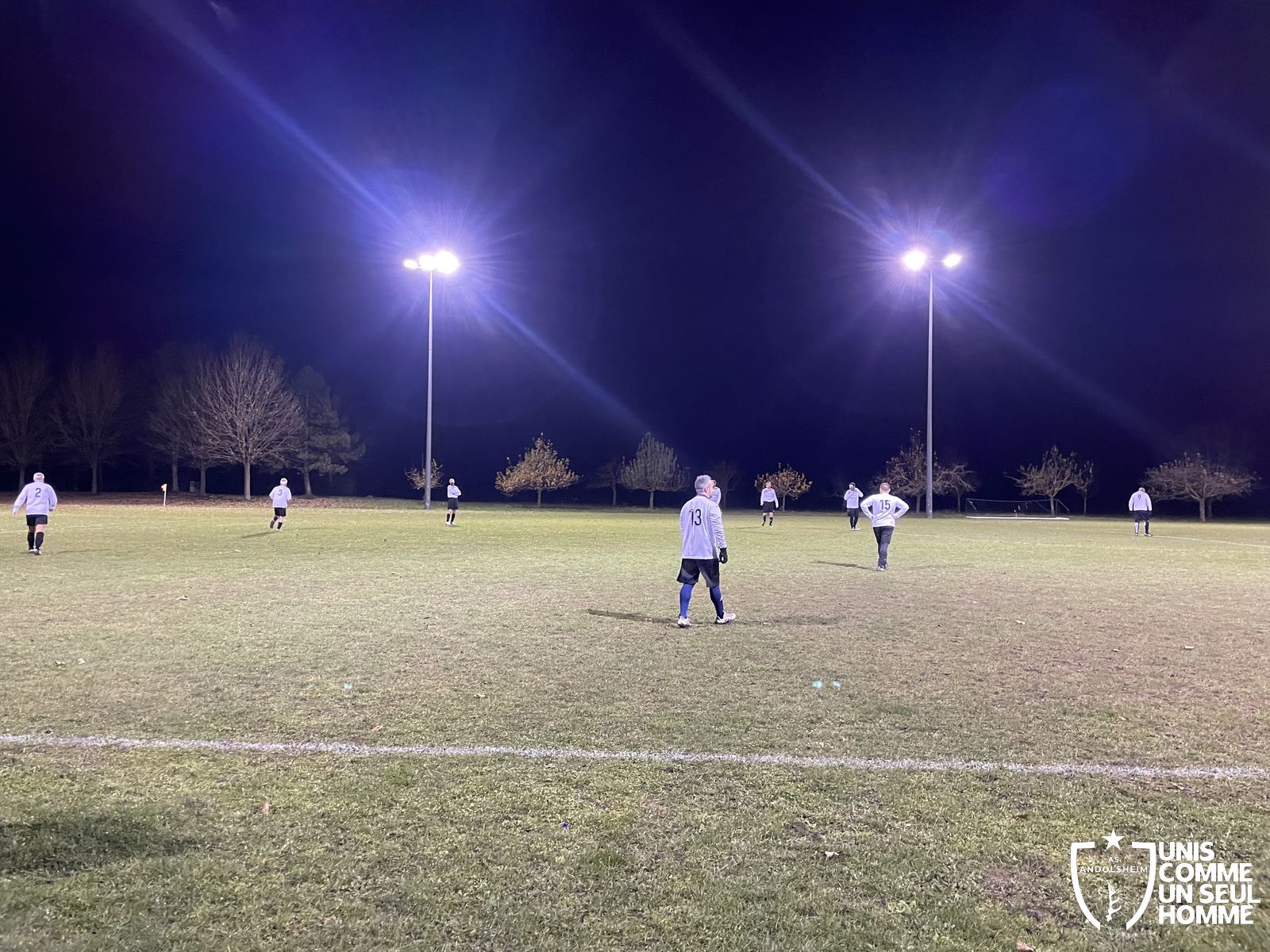 Pas d’évolution dans le jeu… Quelques incursions dans les dix-huit mètres adverses mais nos attaquants conservent trop la balle et se font bloquer systématiquement. Nos adversaires du jour ajoutent encore un troisième but, peut-être hors-jeu, mais pour sur validé par l’arbitre. A moins de dix minutes de la fin, Alexis S tente de sauver l’honneur par une belle frappe enroulée qui finit juste au-dessus de la transversale.