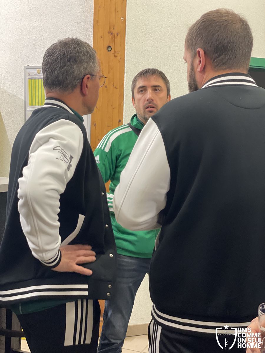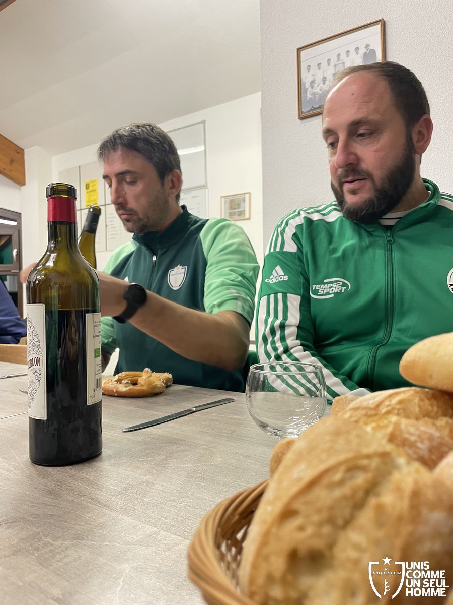 Le temps de la troisième mi-temps est arrivé. Merci à Gonzo pour la dégustation œnologique lors du repas concocté par nos hôtes. Comme d’habitude, on a refait le match avec nos camarades de l’AS Elsenheim et tout cela dans une très bonne ambiance. Merci beaucoup pour l’accueil et à bientôt pour le match retour.
