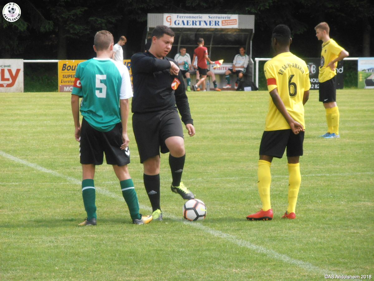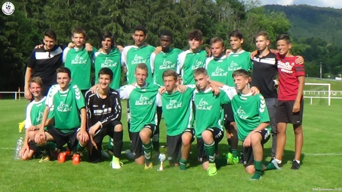 "Les U18 de l'Asa étaient en route vers l'infini, voir même au delà, en se rendant à St-Amarin jouer la finale départementale catégorie A. Un public nombreux, composé de parents, de proches, de petites amies, avait fait le déplacement. Je souligne le soutien indéfectible de la fameuse « bande à Matter », le kop le mieux organisé du Haut-Rhin, qui s'est rendu en force à cette finale du bout du monde. Rappelons à nos chers lecteurs que la bourgade champêtre de St-Amarin est au fin fond de la vallée de Thann juste avant la France de l'intérieur. C'est la limite de l'Alsace et donc la fin du monde civilisé. Bref, après vingt minutes de jeu qui se déroulent dans notre moitié de terrain, l'incontournable Nathan Dos Reis marque sur un contre… et contre le cours du jeu. S’il aura fallu un penalty à une certaine équipe bleue, trois heures plus tôt, pour ouvrir le score, une occasion aura suffi pour une certaine équipe verte ! Ensuite ça va se gâter très légèrement ... Les saint amarinois vont nous mettre un but toutes les douze minutes environ entre la trentième et la quatre-vingtieme. Score final 5 à 1 pour cette finale qui ne se jouait pas sur terrain neutre. Pas de regret. Le bilan de nos garçons est brillant. Résumé de la longue marche: un titre de champion acquis un match avant la fin du championnat. Une écrasante victoire à domicile pour le dernier match de championnat. Une large victoire toujours à domicile pour la demi-finale départementale. Enfin, une finale honorable à l'extérieur. A défaut de toucher l’infini, vous touchez un ticket pour la catégorie Promo ! Mesdemoiselles Lise et Ludivine, courageuses à l'entraînement, Messieurs les joueurs, Messieurs les entraîneurs: Bravo et Merci !