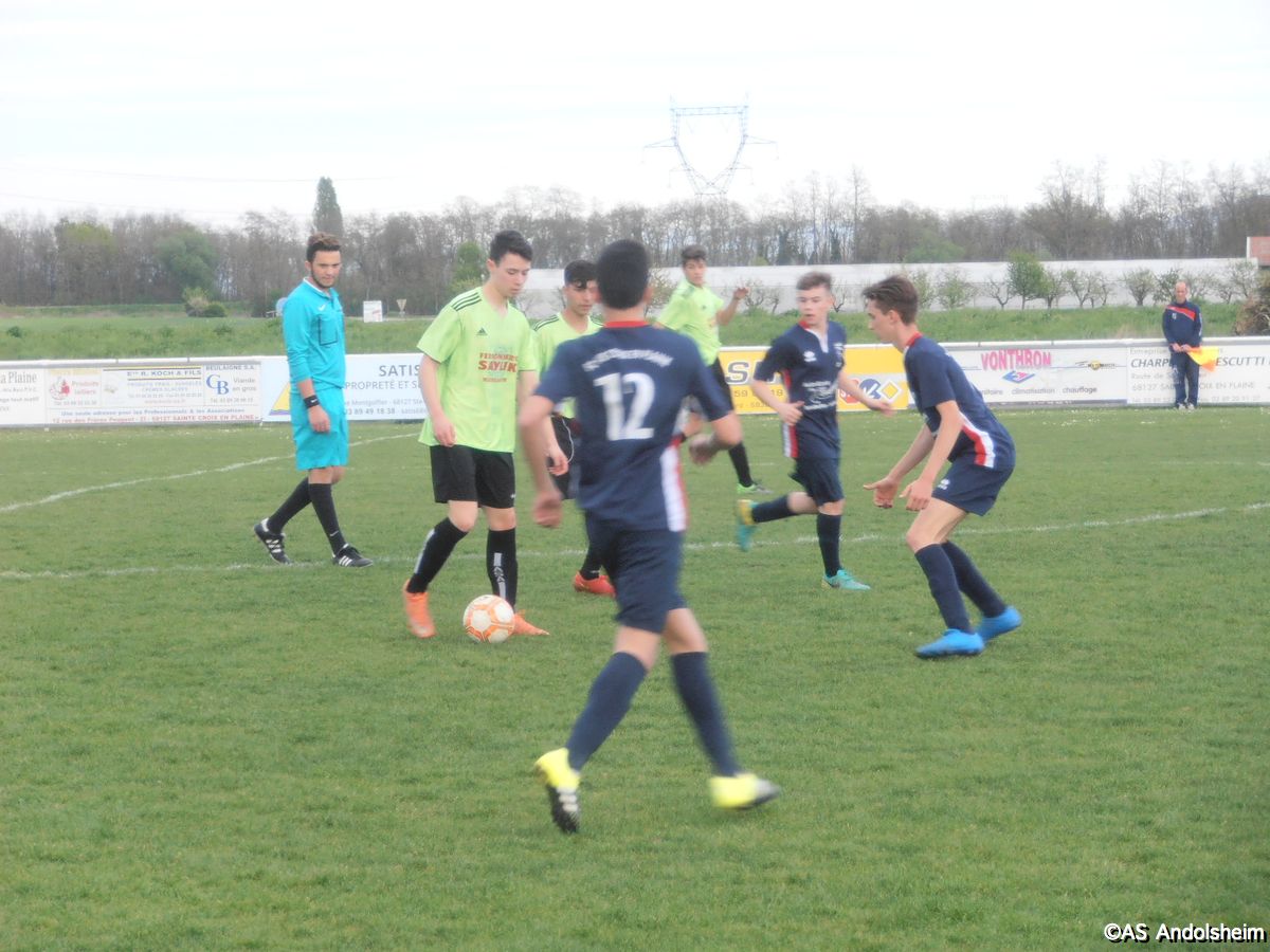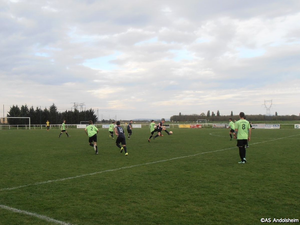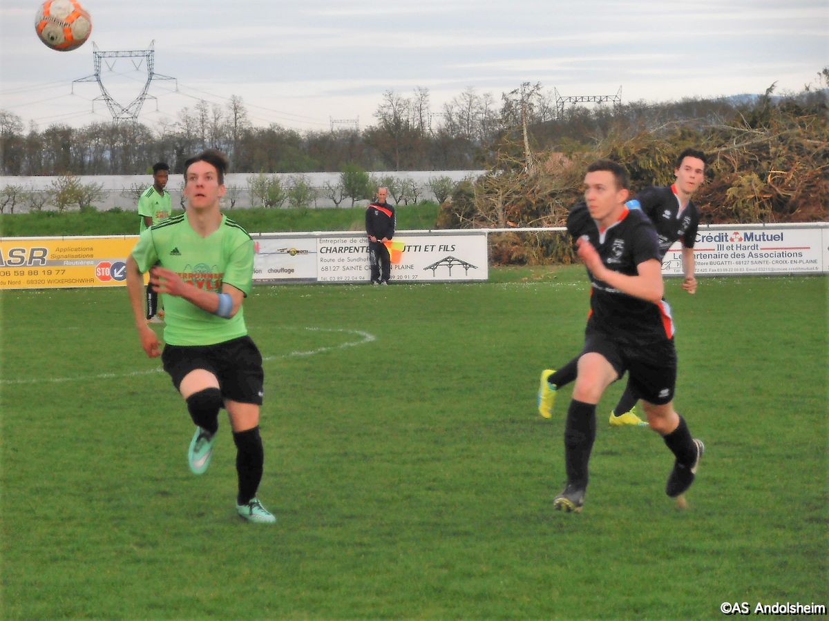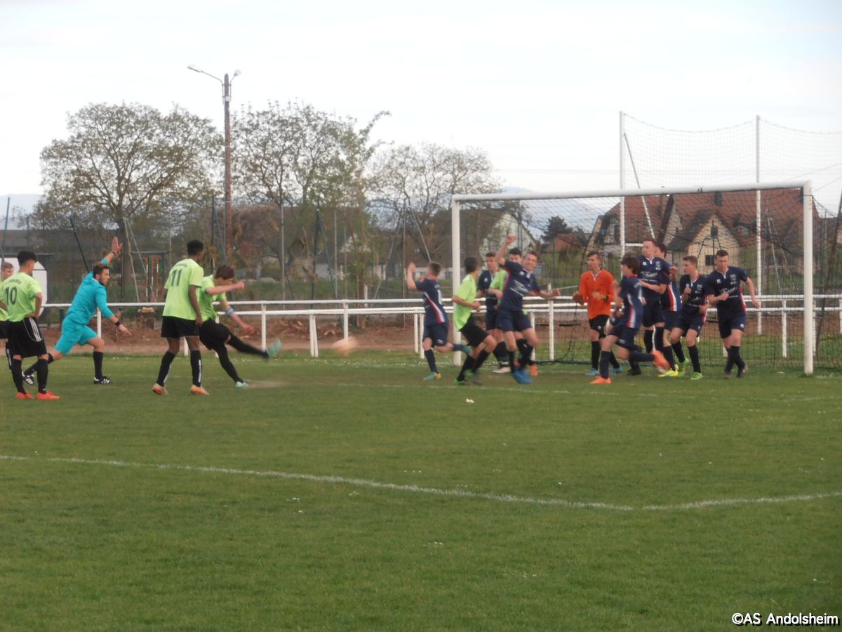 "En cette avant-veille de veillée pascale, nos U18 ont porté leur croix à Ste Croix en Plaine. Menés dès la dixième minute, nos garçons égalisent dans la foulée grâce à un coup franc dans les 16 mètres. Voir les deux premières photos. Cinquante minutes et 5 cartons jaunes plus tard nous sommes menés 5 à 1. Je précise que cette averse de cartons jaunes, très sévère et non prévue par météo France, a mouillé les deux équipes. A cinq minutes de la fin Andolsheim réduit à 5 à 2 mais la messe est dite : nous nous inclinons face à une équipe médiocre. Manque de motivation, déficit de communication entre les joueurs et les coaches, absence du gardien titulaire. On peut lister les raisons. Je laisse Sylvain et Charla discuter avec leurs joueurs. Rendez-vous lundi de paques à domicile à 15H00 pour recevoir Hatstat. Pour la résurrection ?"