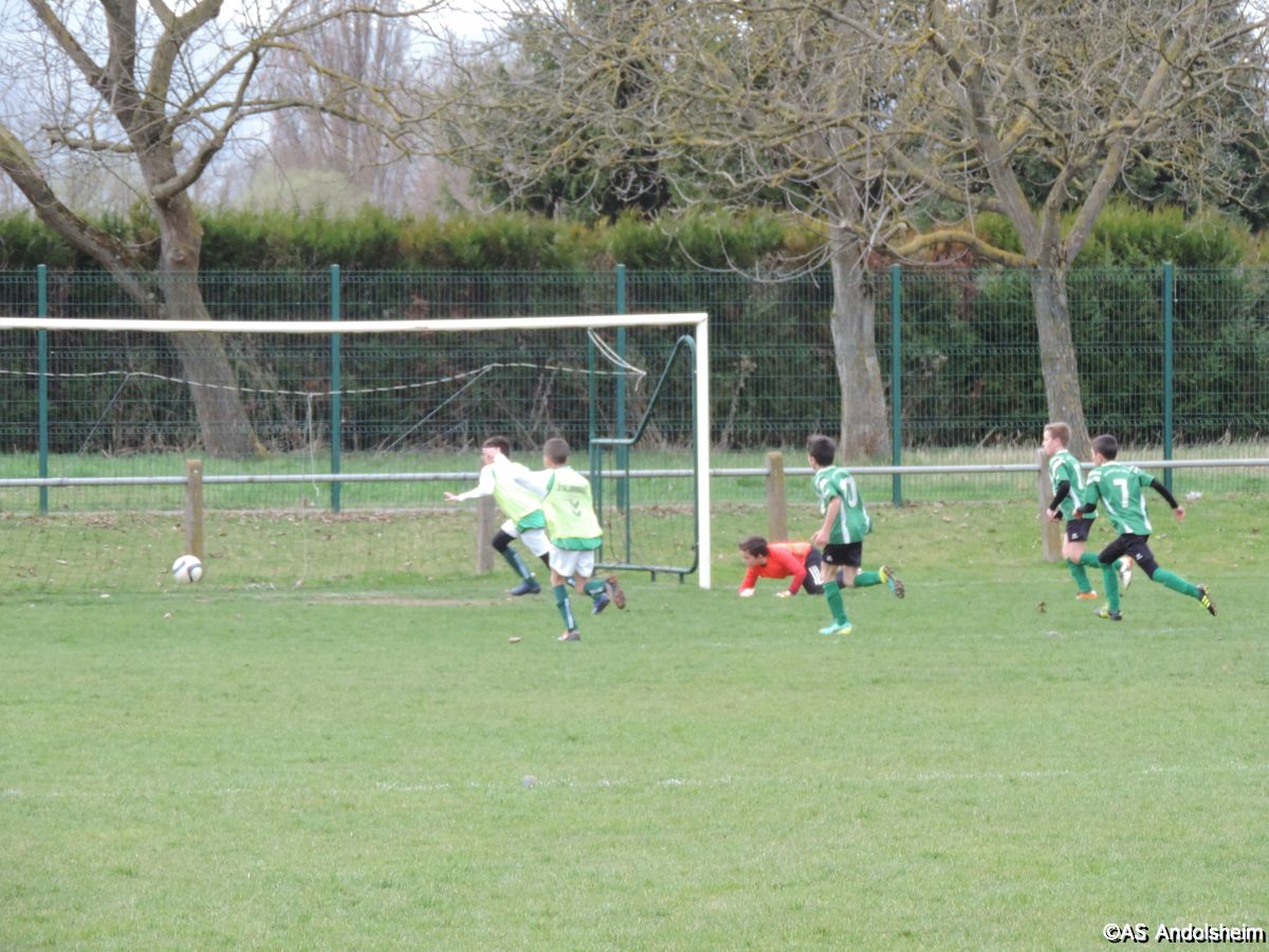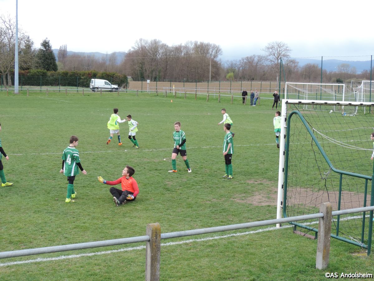 "Ce samedi le 18/03/2017 les U11A de Patrice ont rencontré à domicile l'équipe de Canton Vert 2.En première mi-temps l'A.S.A n'arrive pas à ouvrir le score : score 0-0