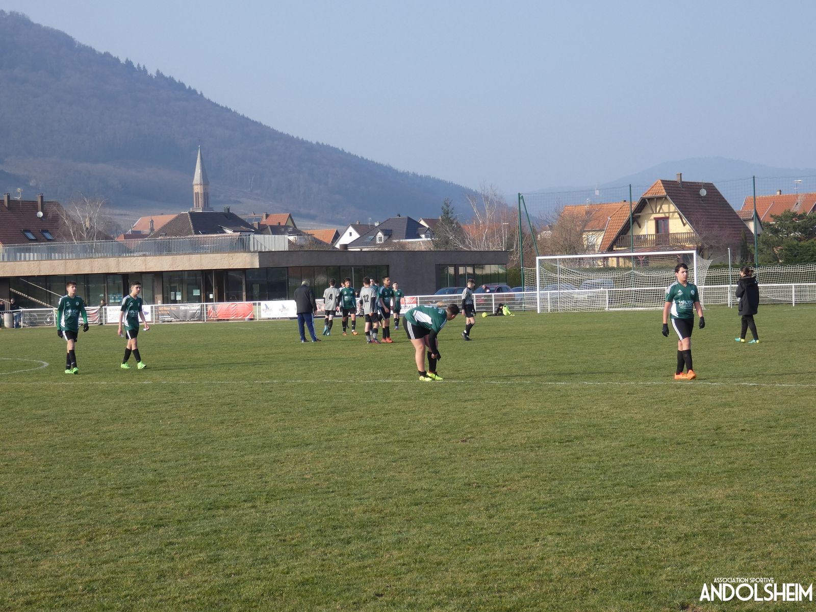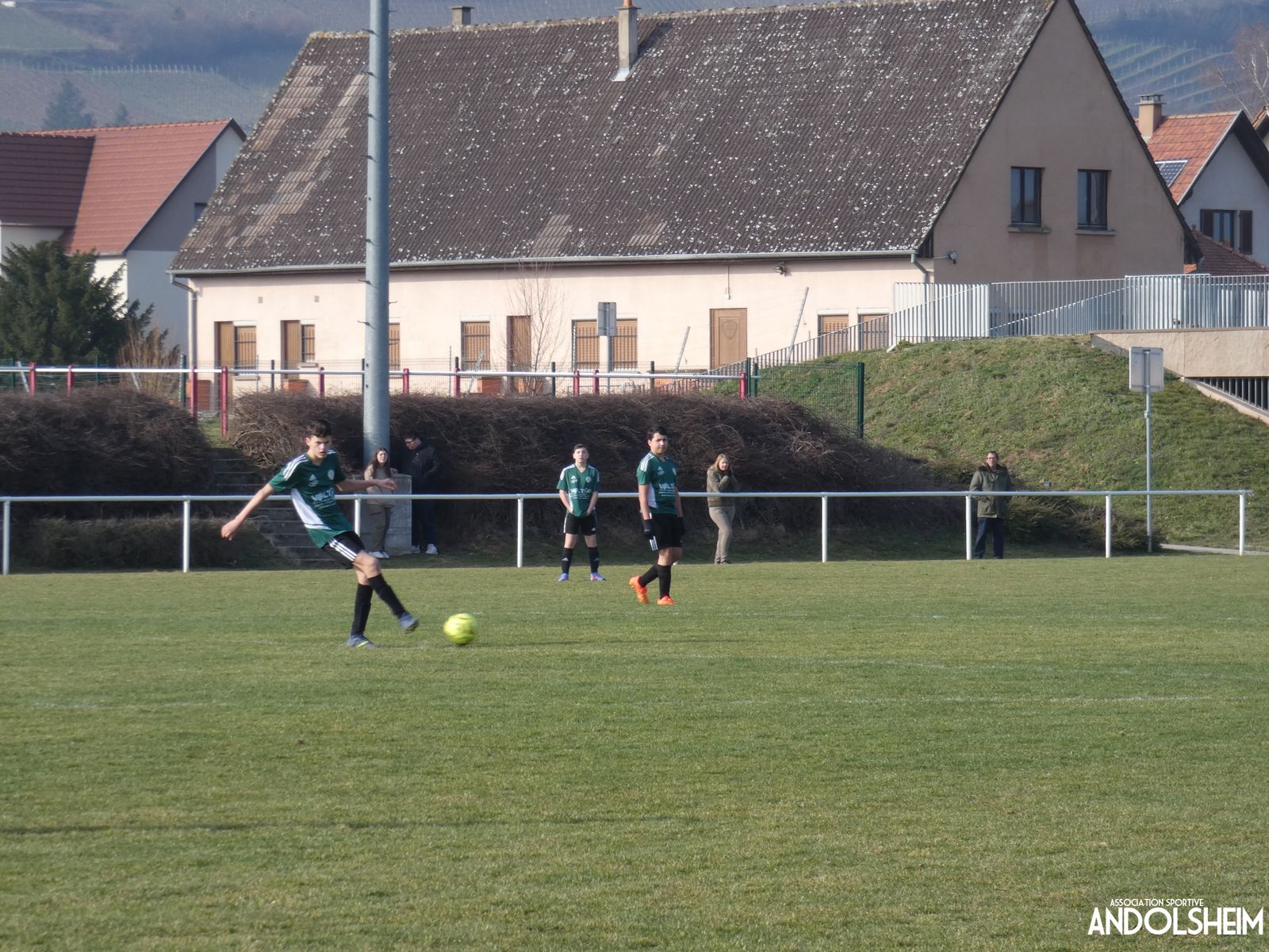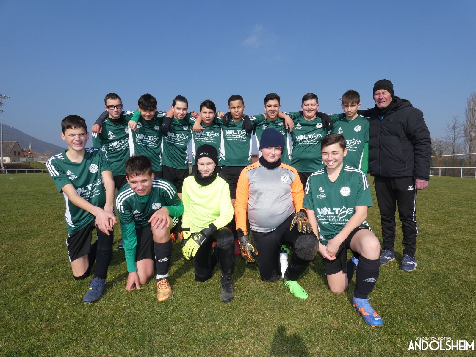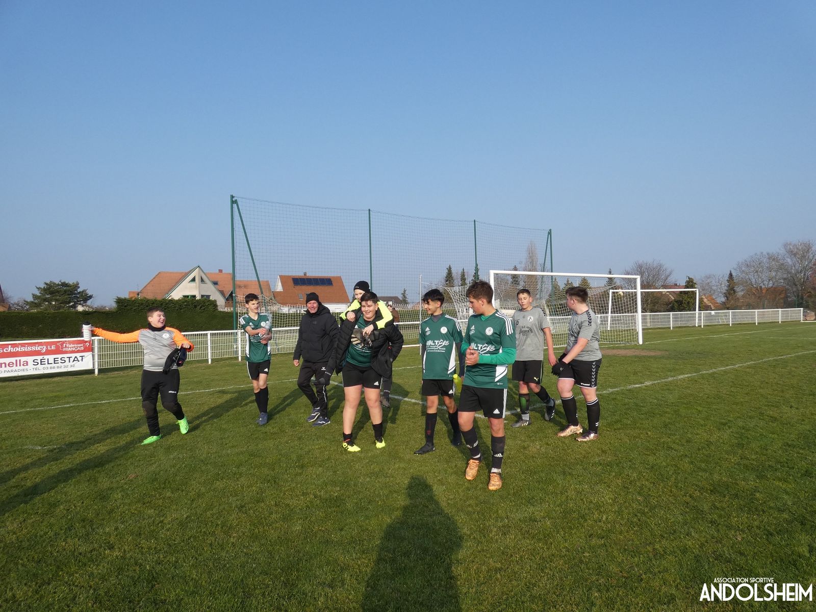 Après la belle victoire de notre équipe fanion en coupe d’Alsace sur les terres bas-rhinoises, c’est au tour de nos U15-2 de se confronter au Racing club Kintzheim. Nos Verts se sont donc déplacés ce samedi après-midi sur les terrains du RCK pour un match amical à l’initiative de Serge.