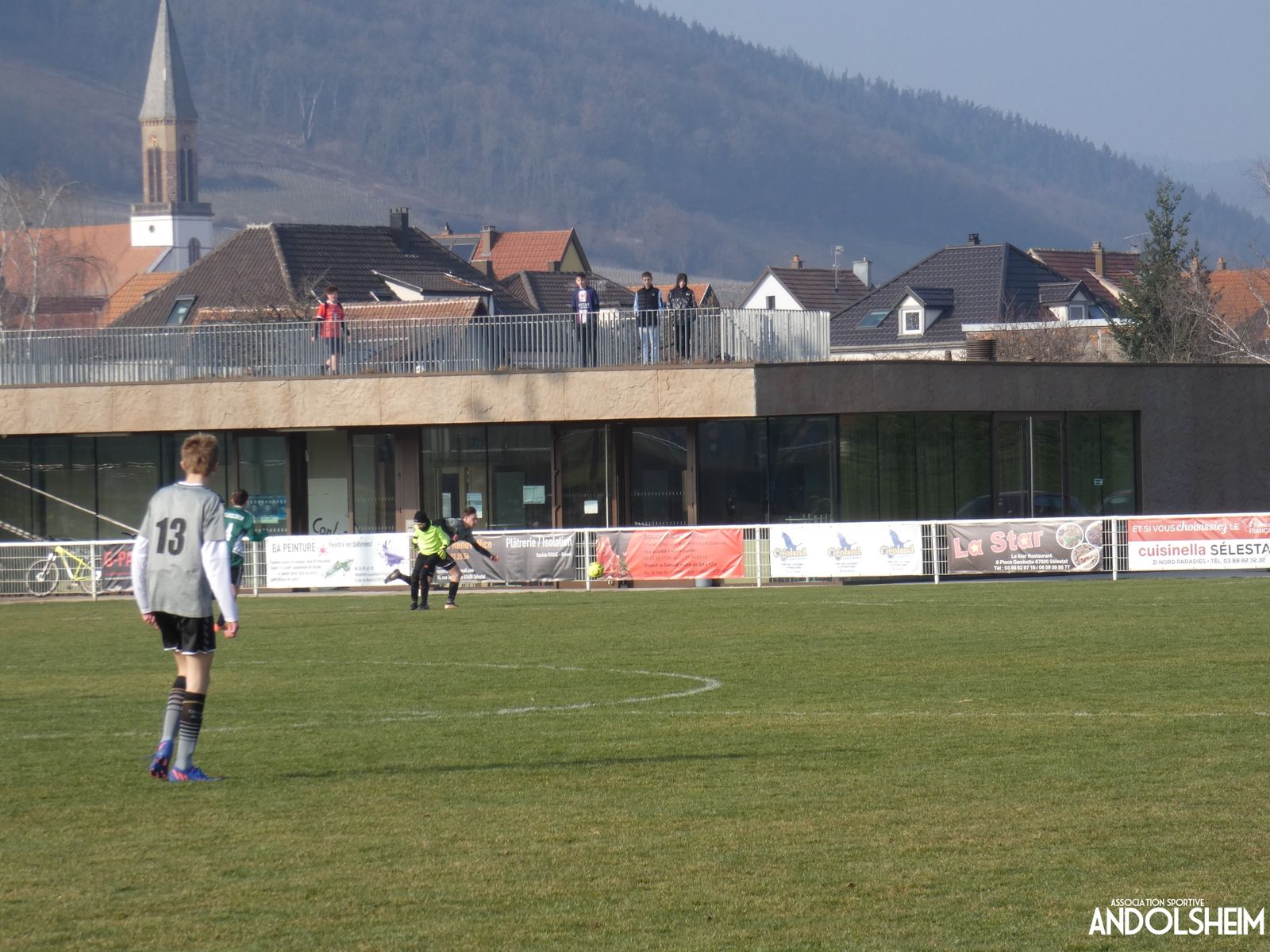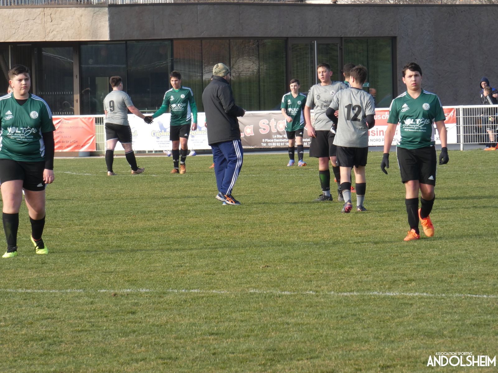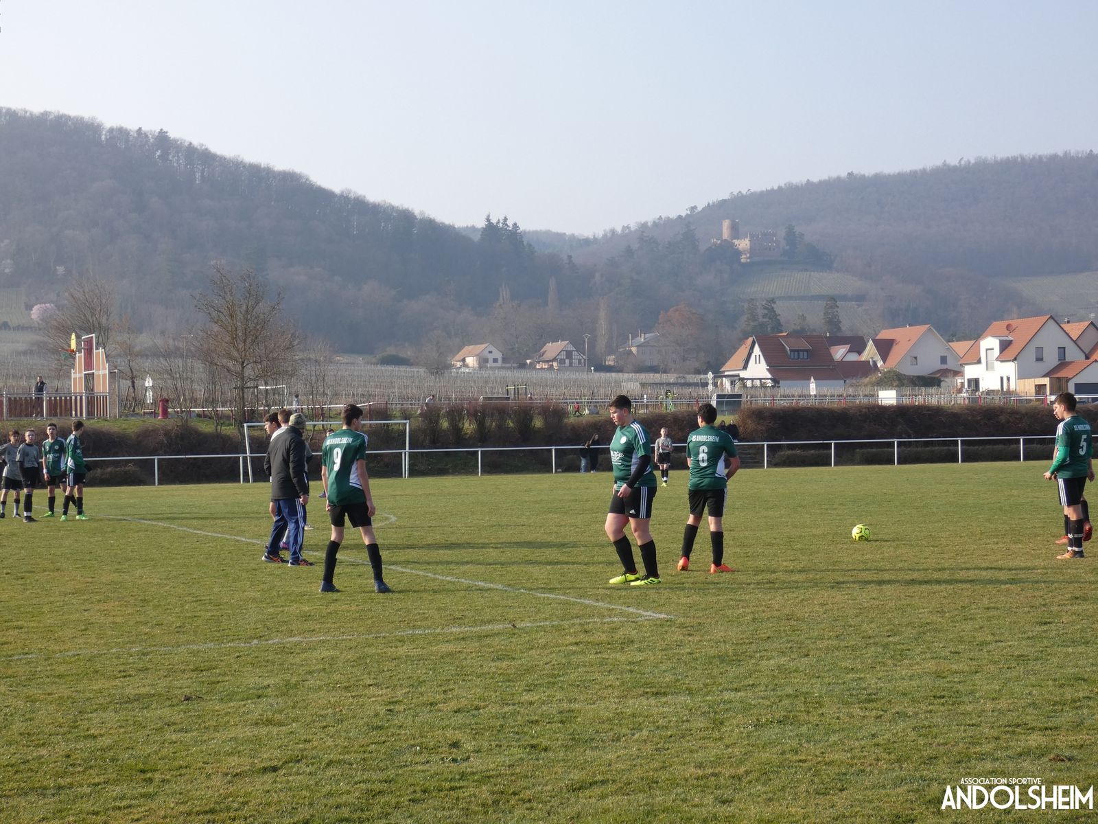 Après la belle victoire de notre équipe fanion en coupe d’Alsace sur les terres bas-rhinoises, c’est au tour de nos U15-2 de se confronter au Racing club Kintzheim. Nos Verts se sont donc déplacés ce samedi après-midi sur les terrains du RCK pour un match amical à l’initiative de Serge.