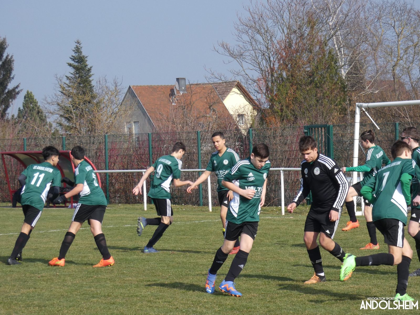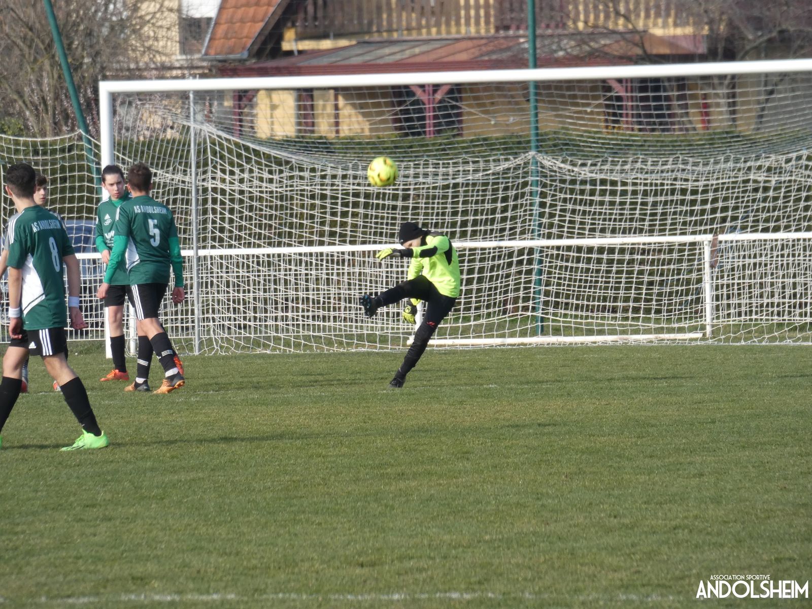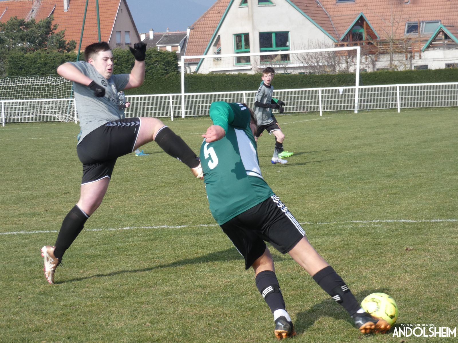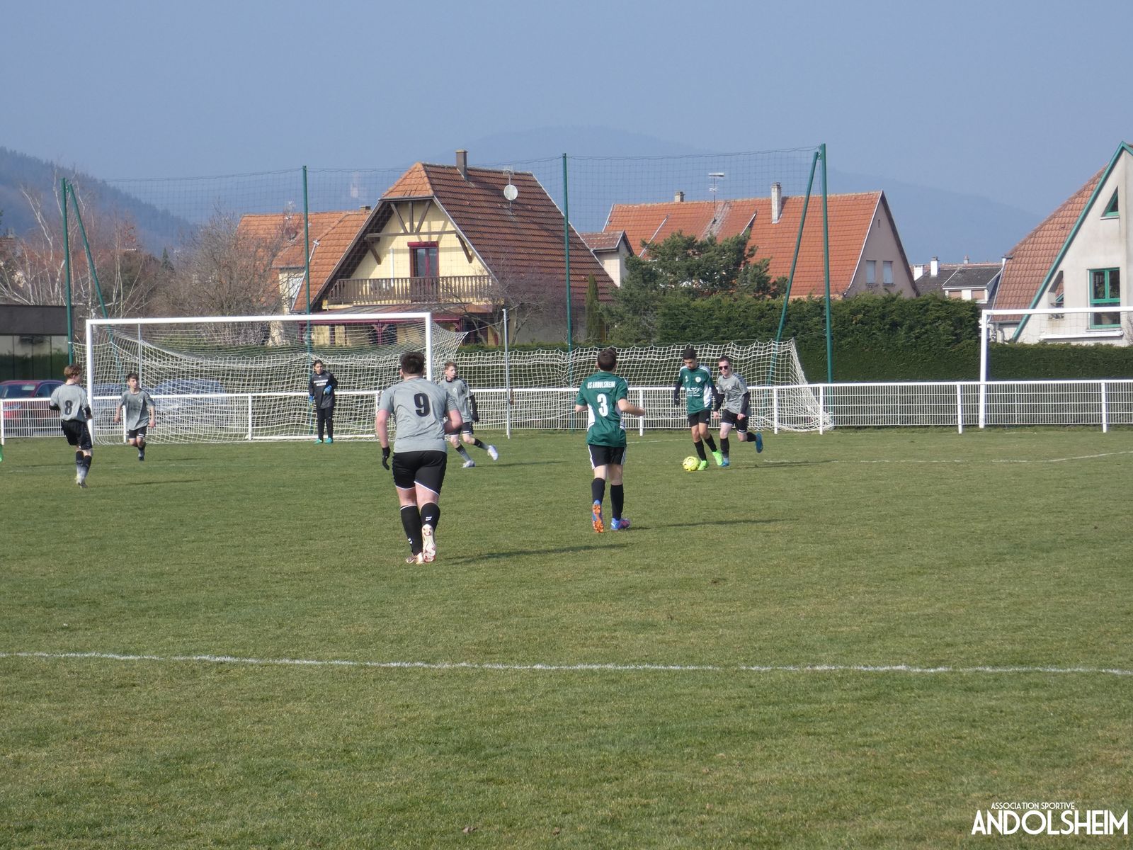 Après la belle victoire de notre équipe fanion en coupe d’Alsace sur les terres bas-rhinoises, c’est au tour de nos U15-2 de se confronter au Racing club Kintzheim. Nos Verts se sont donc déplacés ce samedi après-midi sur les terrains du RCK pour un match amical à l’initiative de Serge.