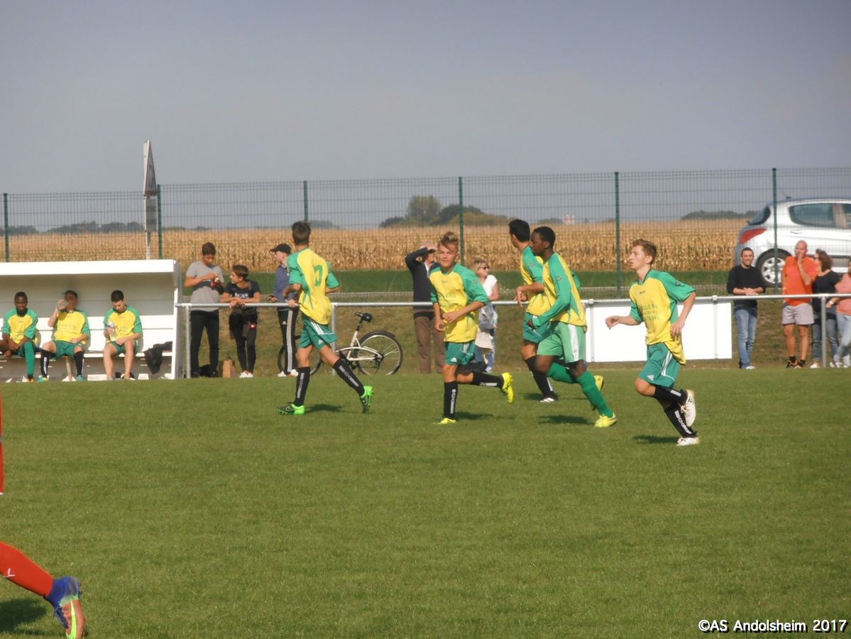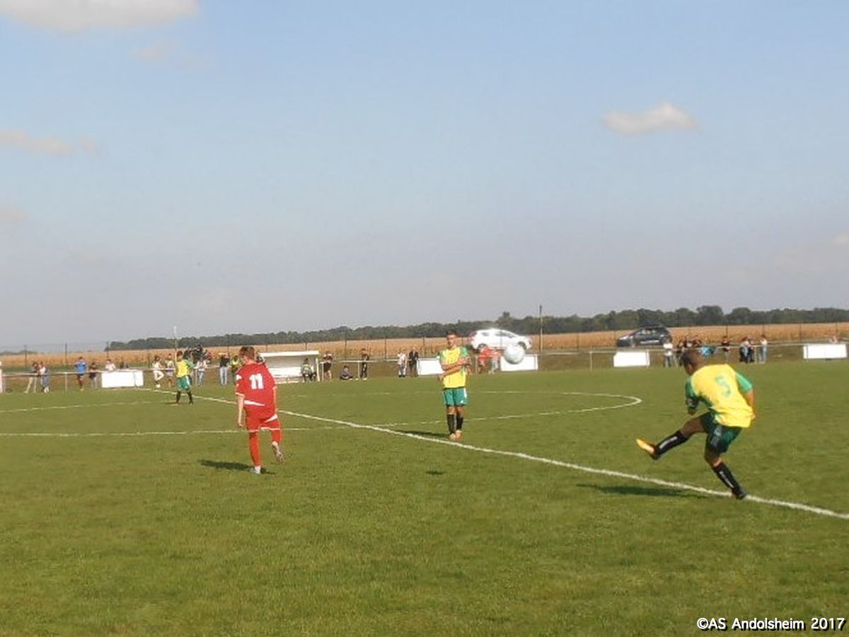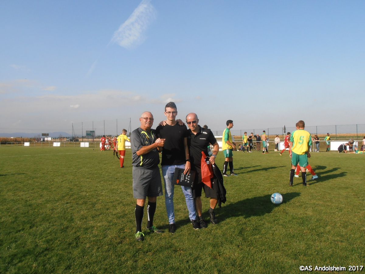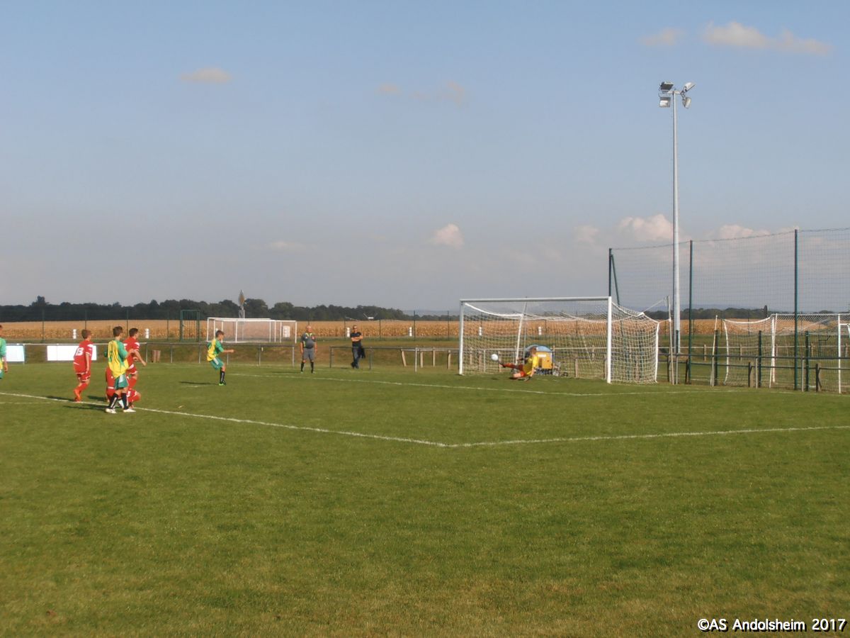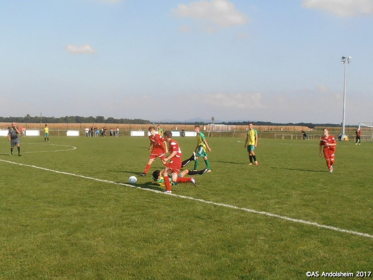 "Nos U18A recevaient Sundhoffen en ce samedi ensoleillé et à peine refroidi par un très léger vent du nord. L’ASA marque à la 37ème, la cinquantième, la soixantième sur penalty. Sundhoffen réduit le score cinq minutes plus tard sur penalty également. Mais il était écrit que nous gagnerions ce derby et Andolsheim tue le match à cinq minutes de la fin. Victoire 4 à 1. Match très viril, sifflé par Jean Claude qui fut convoqué à la dernière minute car l’arbitre initialement désigné par la LAFA nous a fait faux bond au dernier moment. Notre arbitre local a sifflé impartialement et a sorti quelques biscottes. Toutes jaunes. On souhaite bon rétablissement à Romain, bien blessé en seconde période. Gaëtan, interviewé à la fin du match, retient « une bonne intensité » et se déclare satisfait. Il ajoute que « le placement peut encore être amélioré, surtout au milieu, lors des relances ». Rappelons enfin que Tom a pris un seul but en 3 matchs officiels, et encore, sur penalty. Bon weekend à tous, et encore une fois : Merci Jean Claude !"