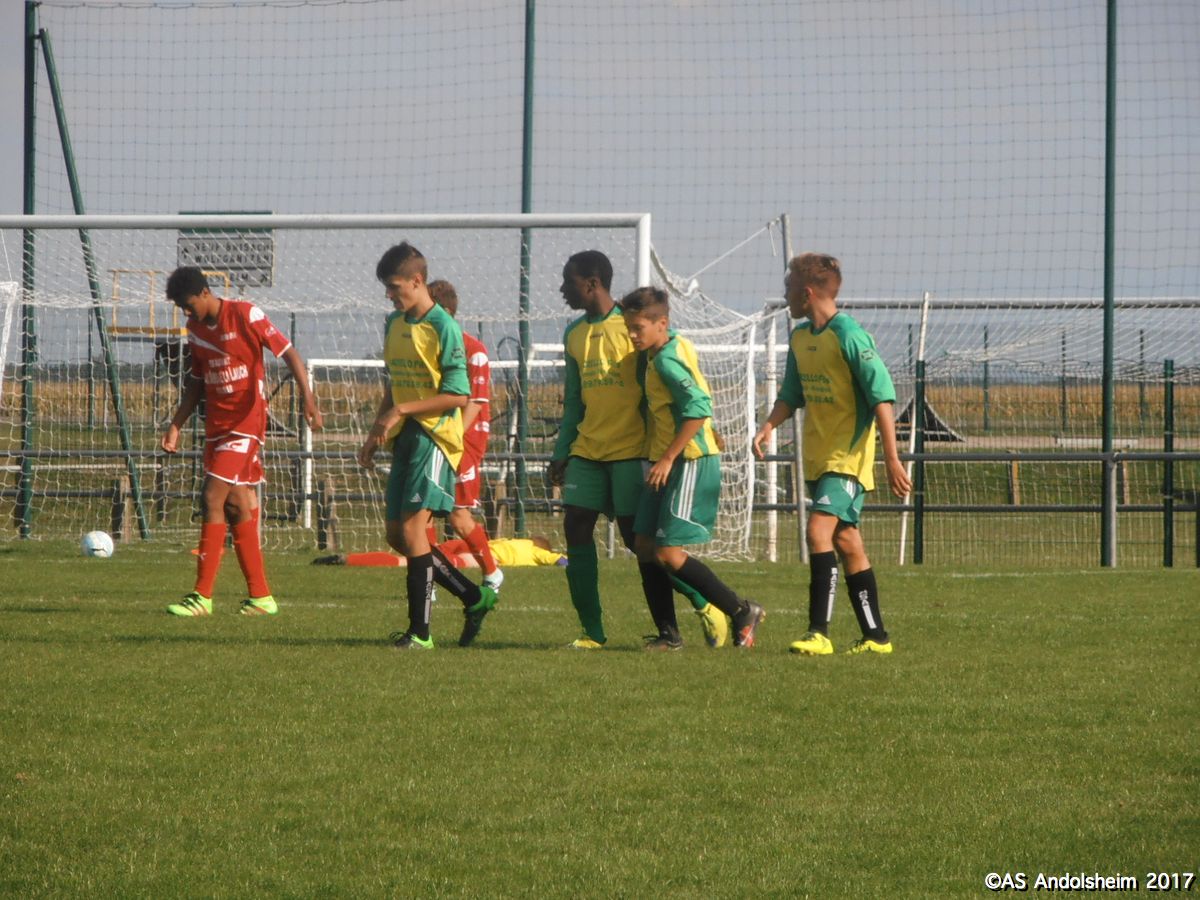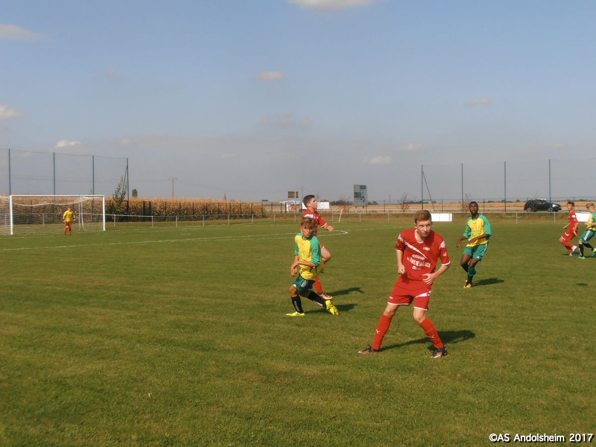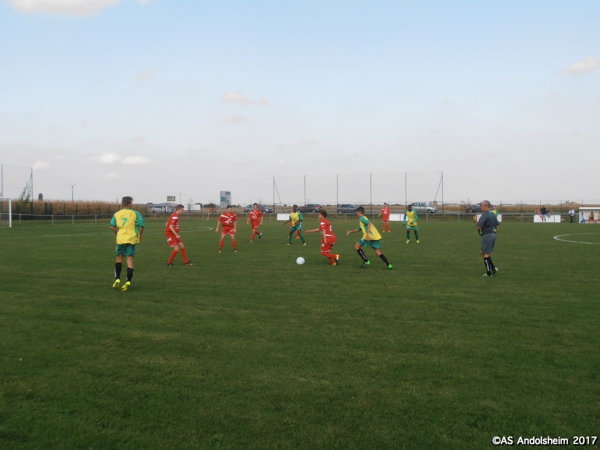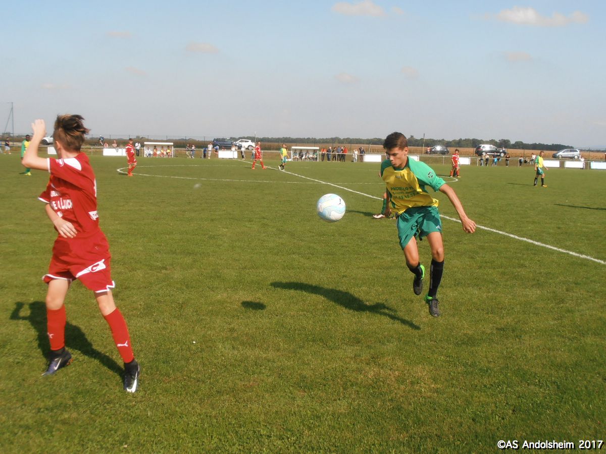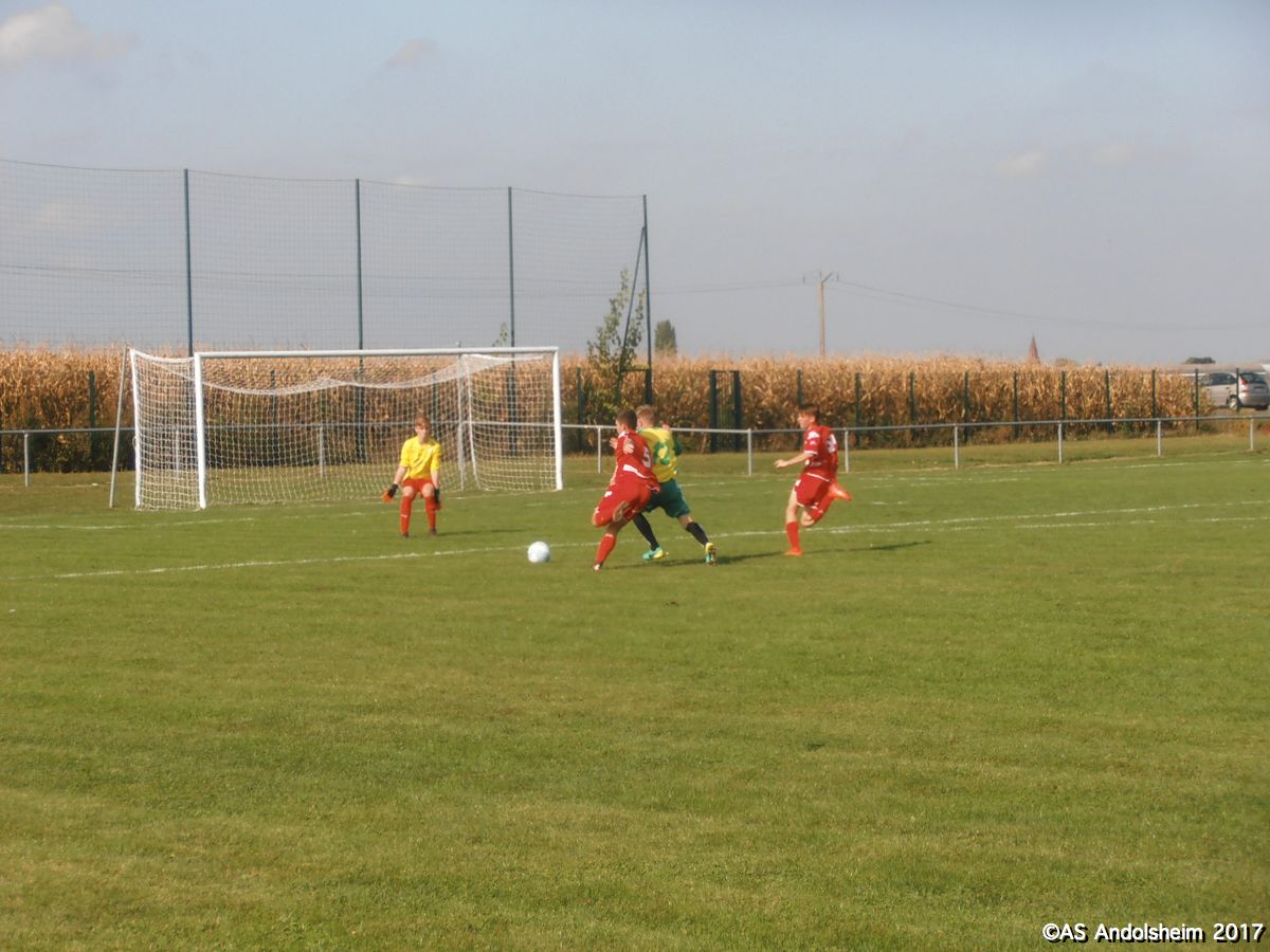 "Nos U18A recevaient Sundhoffen en ce samedi ensoleillé et à peine refroidi par un très léger vent du nord. L’ASA marque à la 37ème, la cinquantième, la soixantième sur penalty. Sundhoffen réduit le score cinq minutes plus tard sur penalty également. Mais il était écrit que nous gagnerions ce derby et Andolsheim tue le match à cinq minutes de la fin. Victoire 4 à 1. Match très viril, sifflé par Jean Claude qui fut convoqué à la dernière minute car l’arbitre initialement désigné par la LAFA nous a fait faux bond au dernier moment. Notre arbitre local a sifflé impartialement et a sorti quelques biscottes. Toutes jaunes. On souhaite bon rétablissement à Romain, bien blessé en seconde période. Gaëtan, interviewé à la fin du match, retient « une bonne intensité » et se déclare satisfait. Il ajoute que « le placement peut encore être amélioré, surtout au milieu, lors des relances ». Rappelons enfin que Tom a pris un seul but en 3 matchs officiels, et encore, sur penalty. Bon weekend à tous, et encore une fois : Merci Jean Claude !"