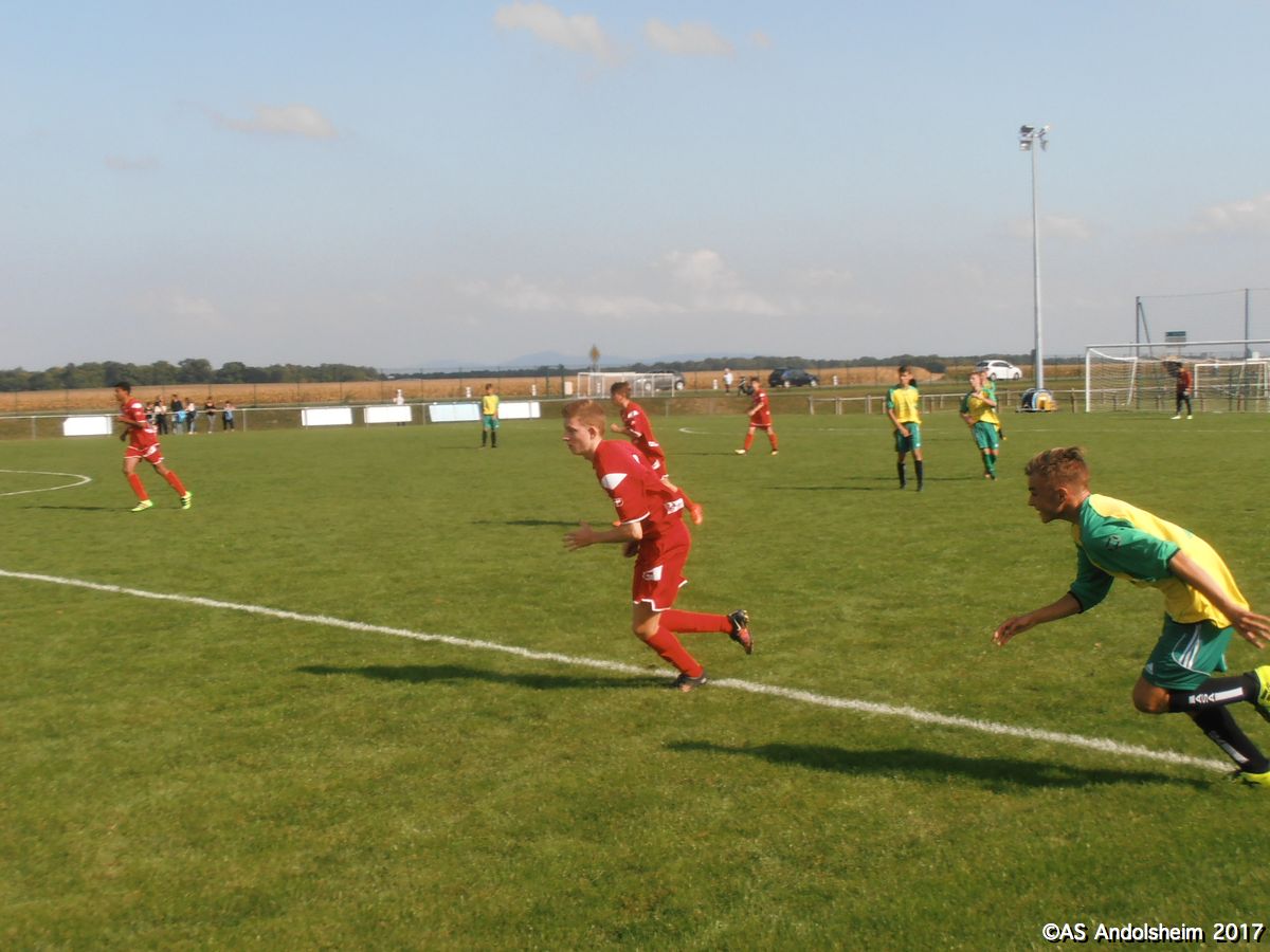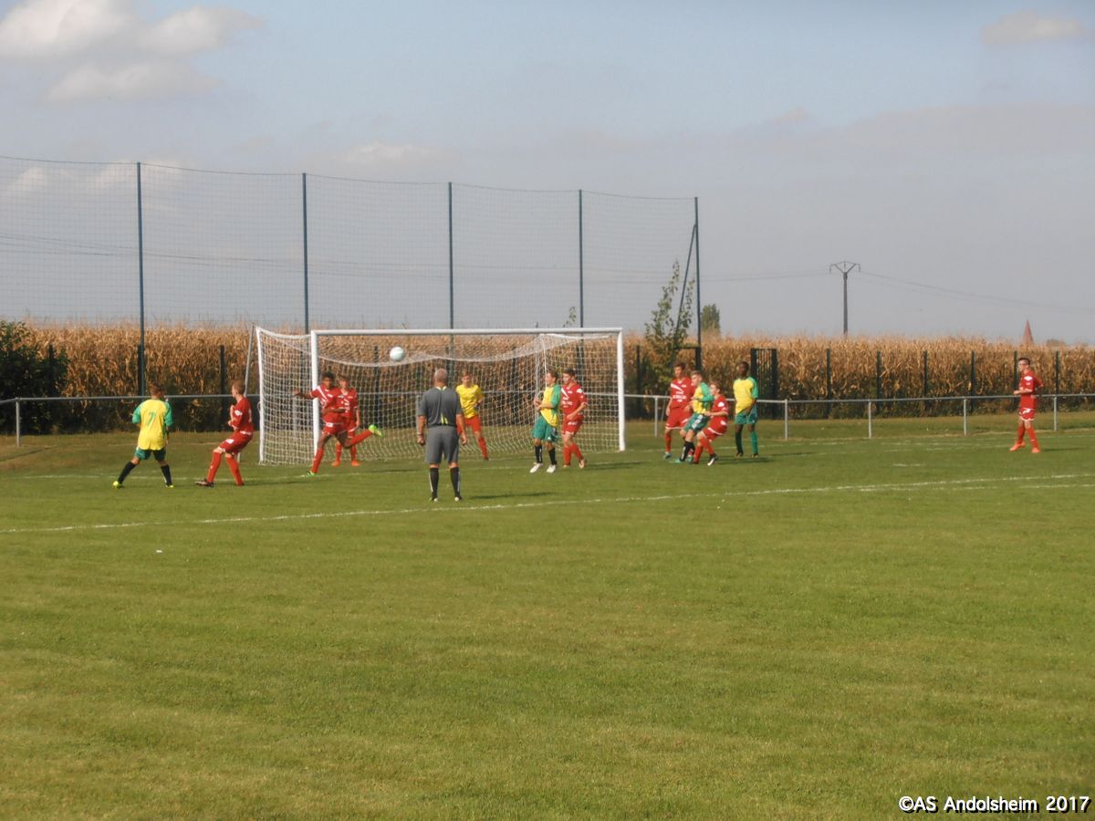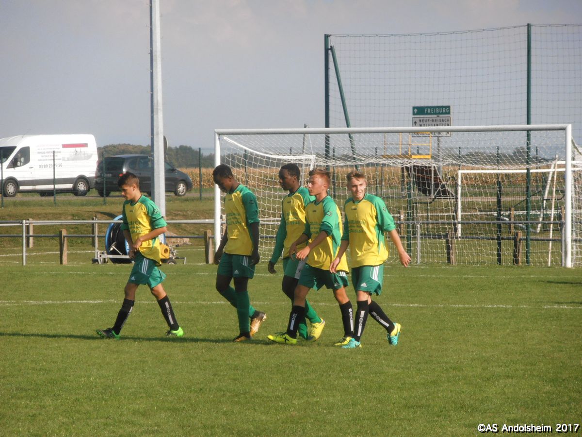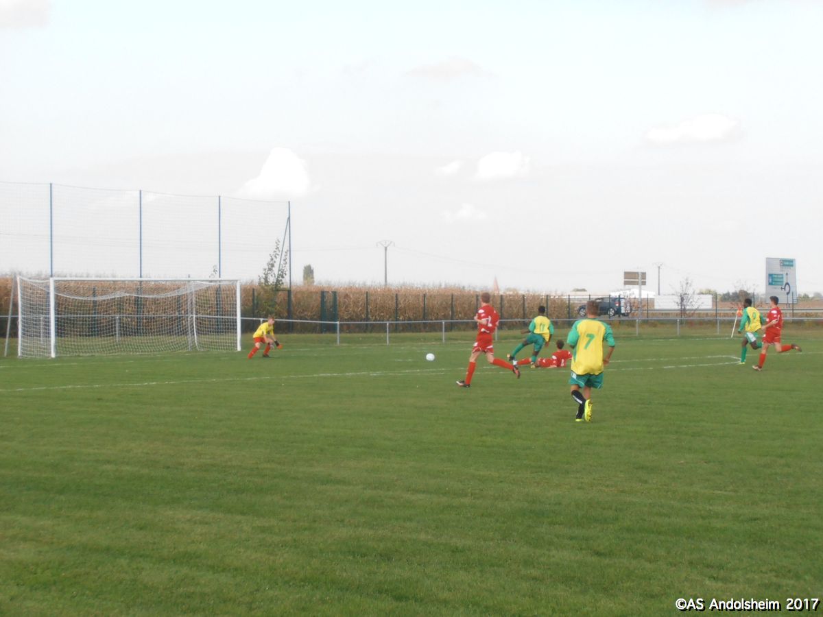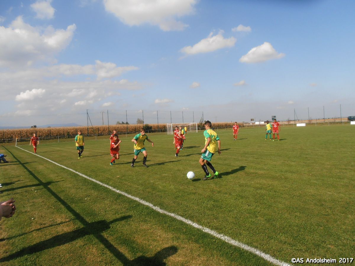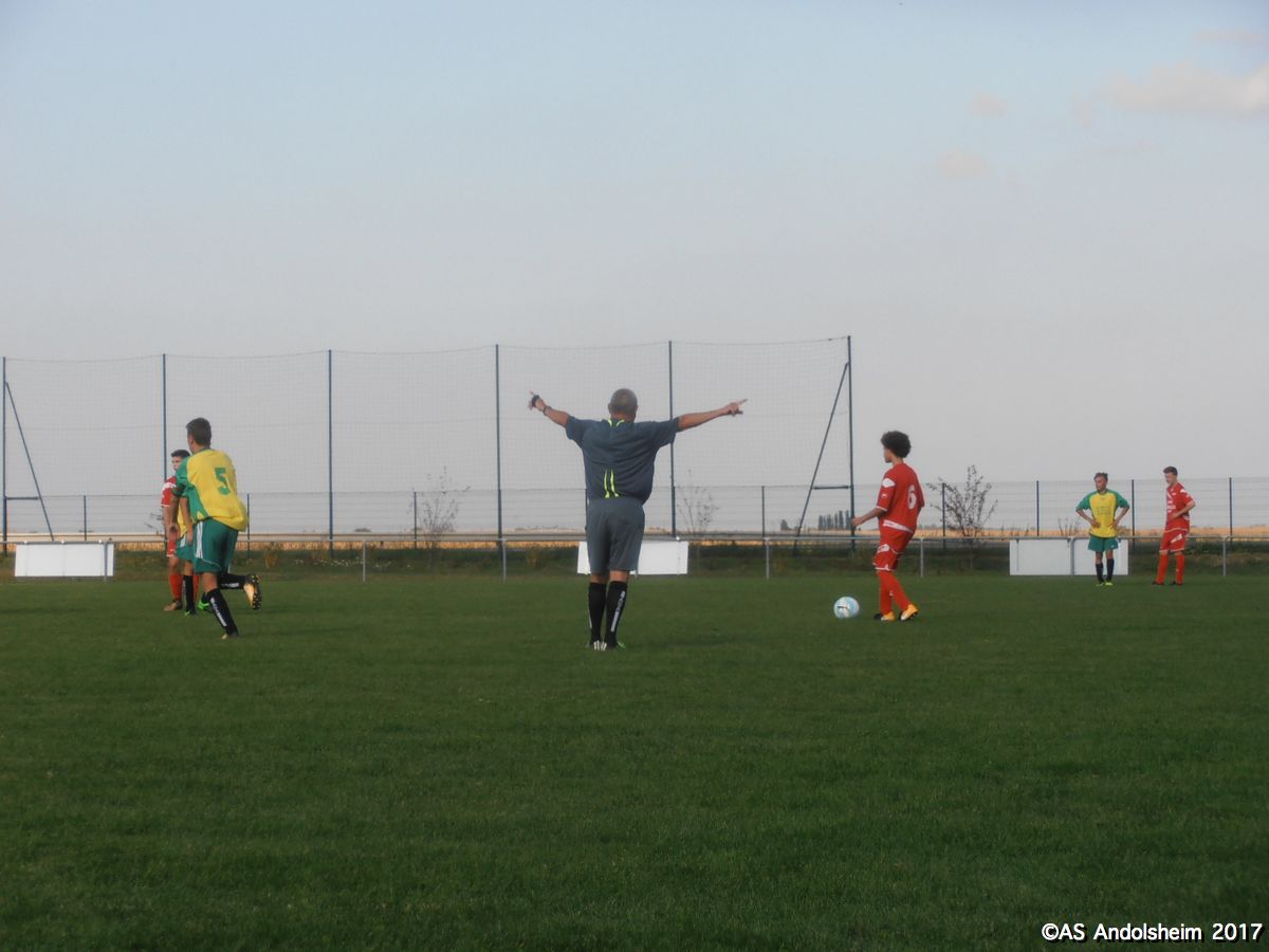 "Nos U18A recevaient Sundhoffen en ce samedi ensoleillé et à peine refroidi par un très léger vent du nord. L’ASA marque à la 37ème, la cinquantième, la soixantième sur penalty. Sundhoffen réduit le score cinq minutes plus tard sur penalty également. Mais il était écrit que nous gagnerions ce derby et Andolsheim tue le match à cinq minutes de la fin. Victoire 4 à 1. Match très viril, sifflé par Jean Claude qui fut convoqué à la dernière minute car l’arbitre initialement désigné par la LAFA nous a fait faux bond au dernier moment. Notre arbitre local a sifflé impartialement et a sorti quelques biscottes. Toutes jaunes. On souhaite bon rétablissement à Romain, bien blessé en seconde période. Gaëtan, interviewé à la fin du match, retient « une bonne intensité » et se déclare satisfait. Il ajoute que « le placement peut encore être amélioré, surtout au milieu, lors des relances ». Rappelons enfin que Tom a pris un seul but en 3 matchs officiels, et encore, sur penalty. Bon weekend à tous, et encore une fois : Merci Jean Claude !"