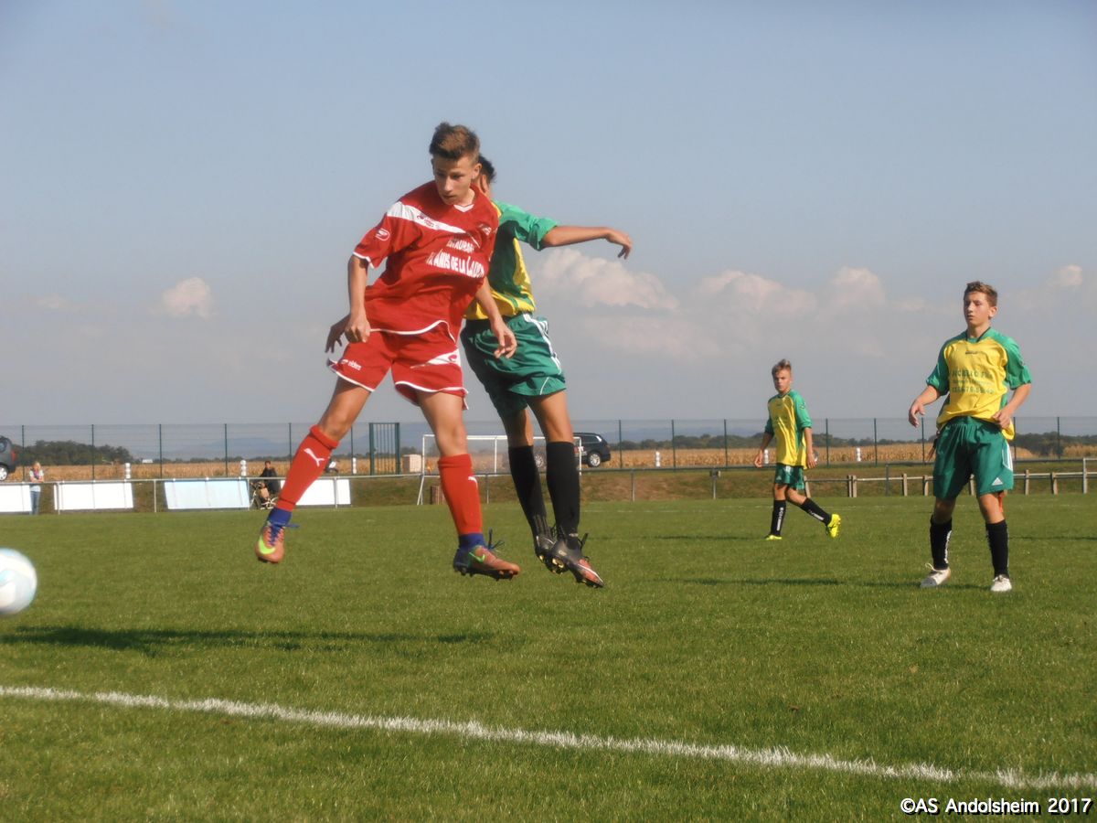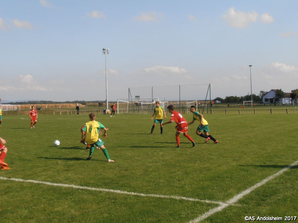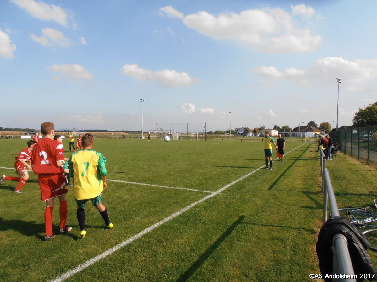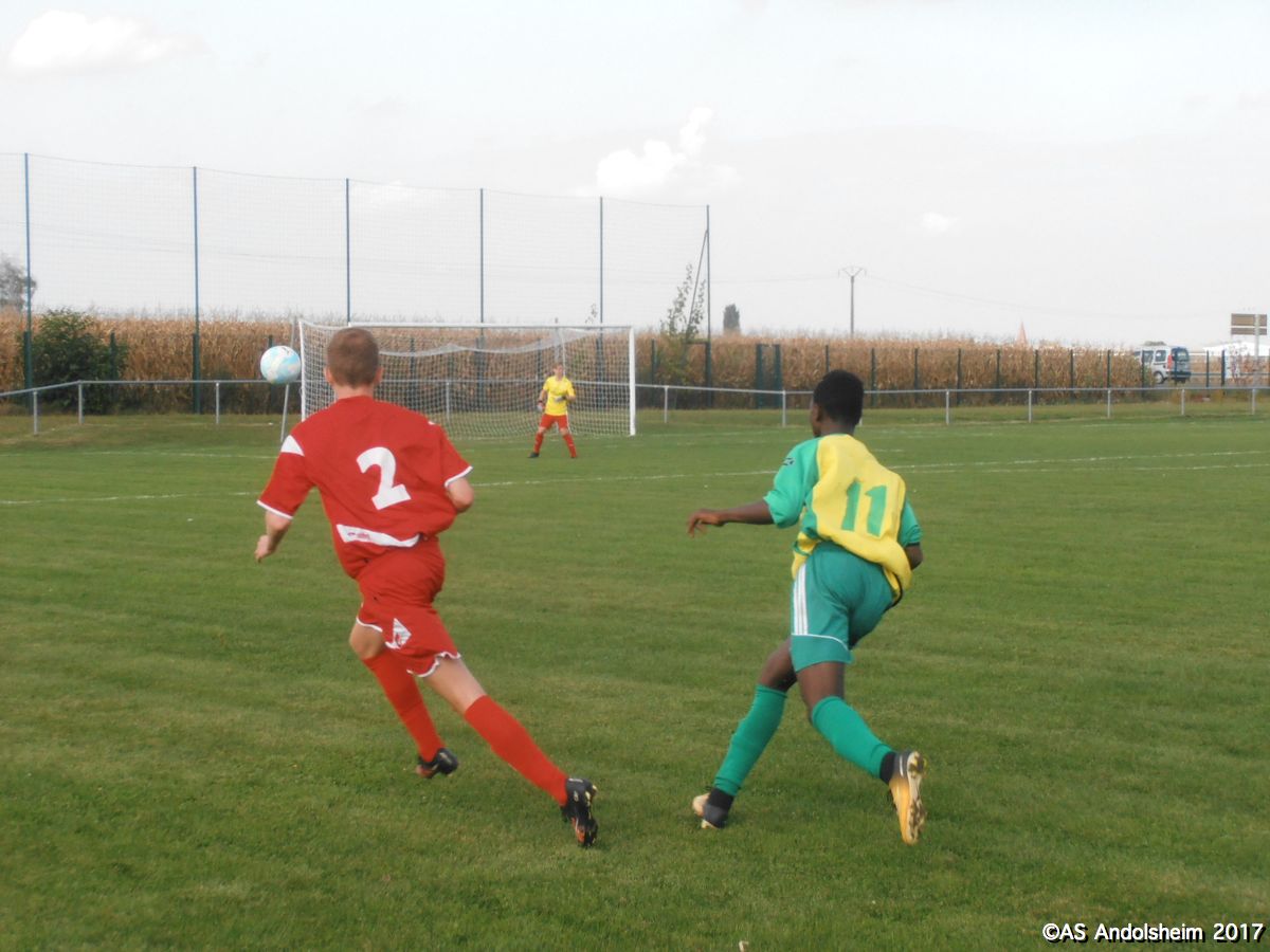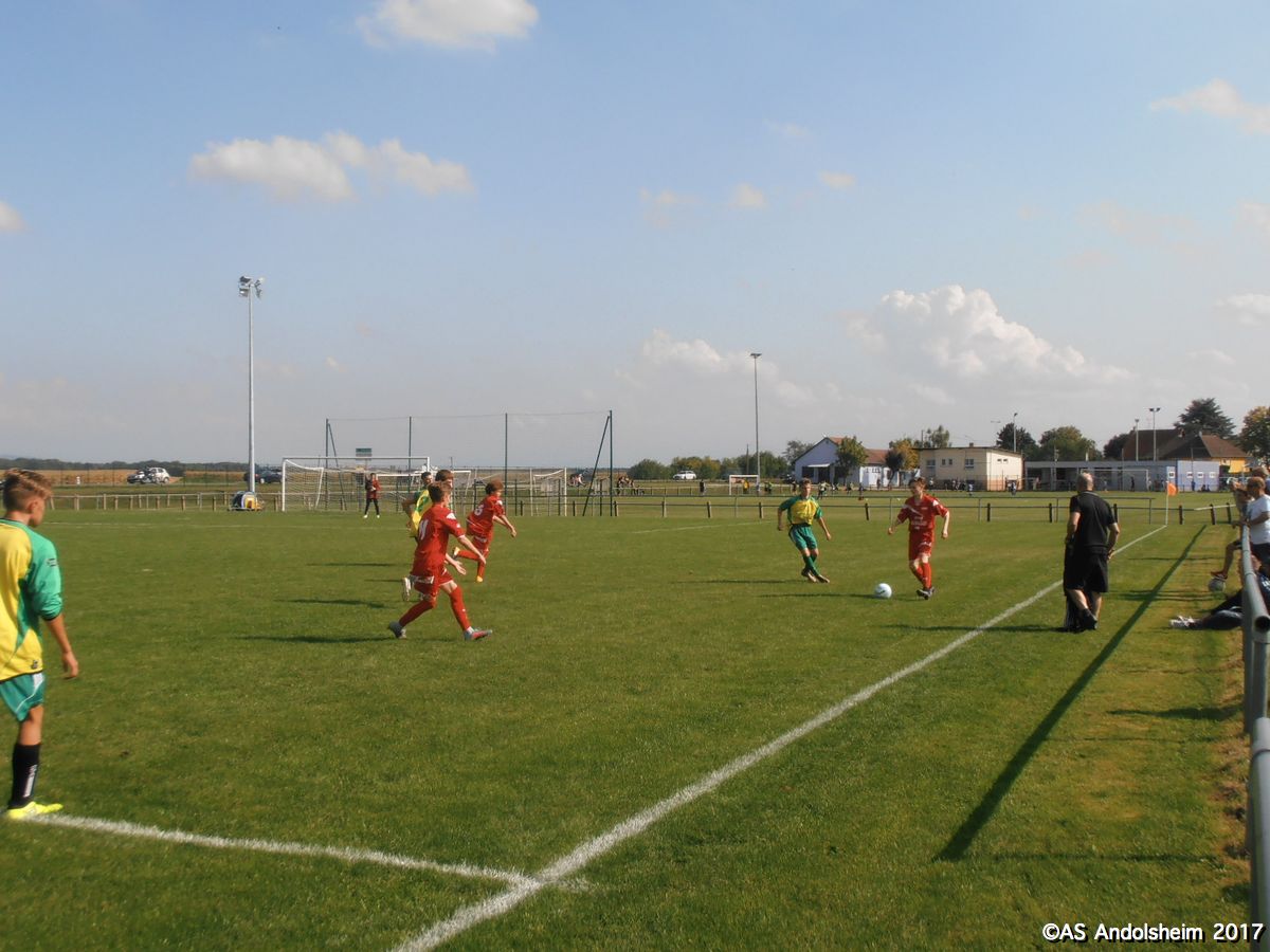 "Nos U18A recevaient Sundhoffen en ce samedi ensoleillé et à peine refroidi par un très léger vent du nord. L’ASA marque à la 37ème, la cinquantième, la soixantième sur penalty. Sundhoffen réduit le score cinq minutes plus tard sur penalty également. Mais il était écrit que nous gagnerions ce derby et Andolsheim tue le match à cinq minutes de la fin. Victoire 4 à 1. Match très viril, sifflé par Jean Claude qui fut convoqué à la dernière minute car l’arbitre initialement désigné par la LAFA nous a fait faux bond au dernier moment. Notre arbitre local a sifflé impartialement et a sorti quelques biscottes. Toutes jaunes. On souhaite bon rétablissement à Romain, bien blessé en seconde période. Gaëtan, interviewé à la fin du match, retient « une bonne intensité » et se déclare satisfait. Il ajoute que « le placement peut encore être amélioré, surtout au milieu, lors des relances ». Rappelons enfin que Tom a pris un seul but en 3 matchs officiels, et encore, sur penalty. Bon weekend à tous, et encore une fois : Merci Jean Claude !"