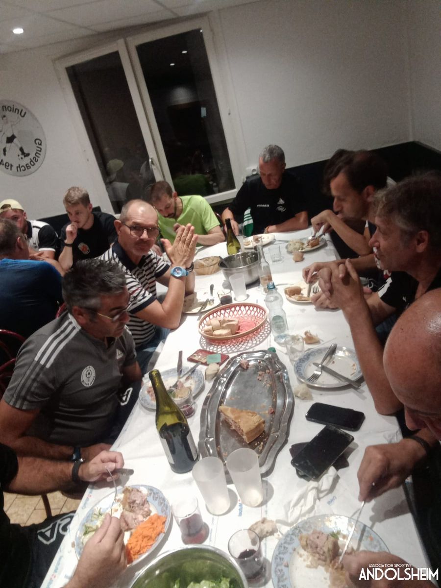 Score final sans appel de 7 à 0 avec aussi un manque de lumière à la nuit tombante qui de toute façon n’aurait pas fait inverser le résultat. Vous aurez compris, le terrain et l’éclairage ne sont que des prétextes moqueurs qui n’effacent en rien le mérite de US Gunsbach sur ce match. Merci encore pour l’accueil et bravo à eux ; et il faut aussi souligner que notre reprise autour d’une bière (même plusieurs) était tellement attendue que promis on fera mieux la prochaine fois sur l’aspect du résultat et du jeu. La force verte est toujours là et on sera toujours les meilleurs sur la 3ème mi-temps. Nous sommes comme l’informatique, une bonne mise à jour et on repartira de nouveau vers l’avant. À la semaine prochaine…