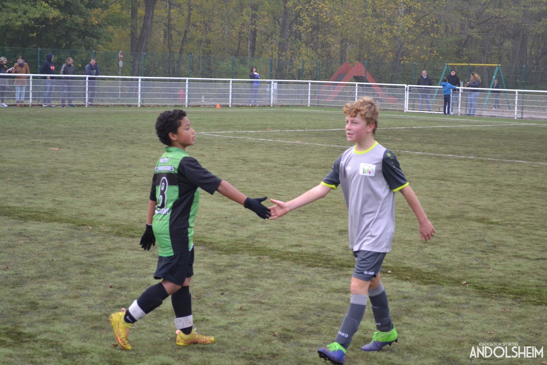 À peine quelques minutes plus tard c'est Thibault RADAKOVIC qui nous mettait a l'abri d'un retour de notre adversaire du jour 0-3. C'est donc logiquement suite à notre envie d'en découdre une bonne fois pour toutes que le virevoltant Bryan BODEIN marquait le dernier but de cette rencontre 0-4. À noter la super prestation de nos gardiens Enguerrand DONNADIEU et Joshua ATTIACH qui auront préservé leurs cages aux inviolées. Les coachs Laurent et Rafaël espèrent que nous sommes sur la bonne voie. Merci aux garçons et leurs parents toujours présents et comme tous les week-ends merci Arnaud pour les photos