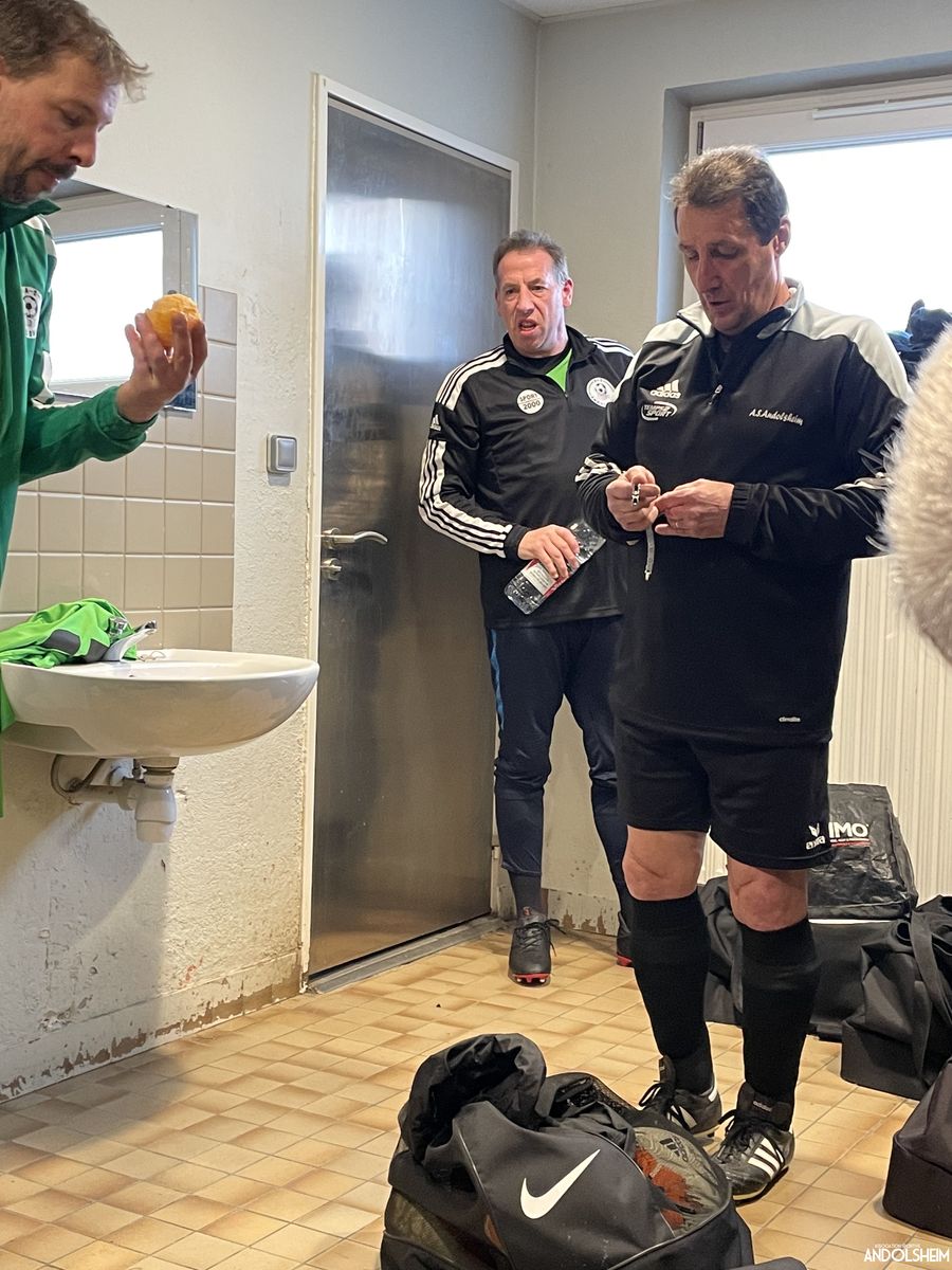 Dès le coup d’envoi, l’équipe est bien en place cependant dès la cinquième minute nos adversaires du jour ouvrent la marque. José, « pas encore assez chaud » admettra doucement en fin de match que « ce but là est pour lui ». Qu’importe, le jeu se poursuit et nos jeunes anciens tiennent plutôt pas mal, à l’exception du tendon et du mollet de Gillou qui tirera sa révérence dès la dixième. Le terrain et le temps sont de la partie pour passer un match agréable. 0-1 à la mi-temps.