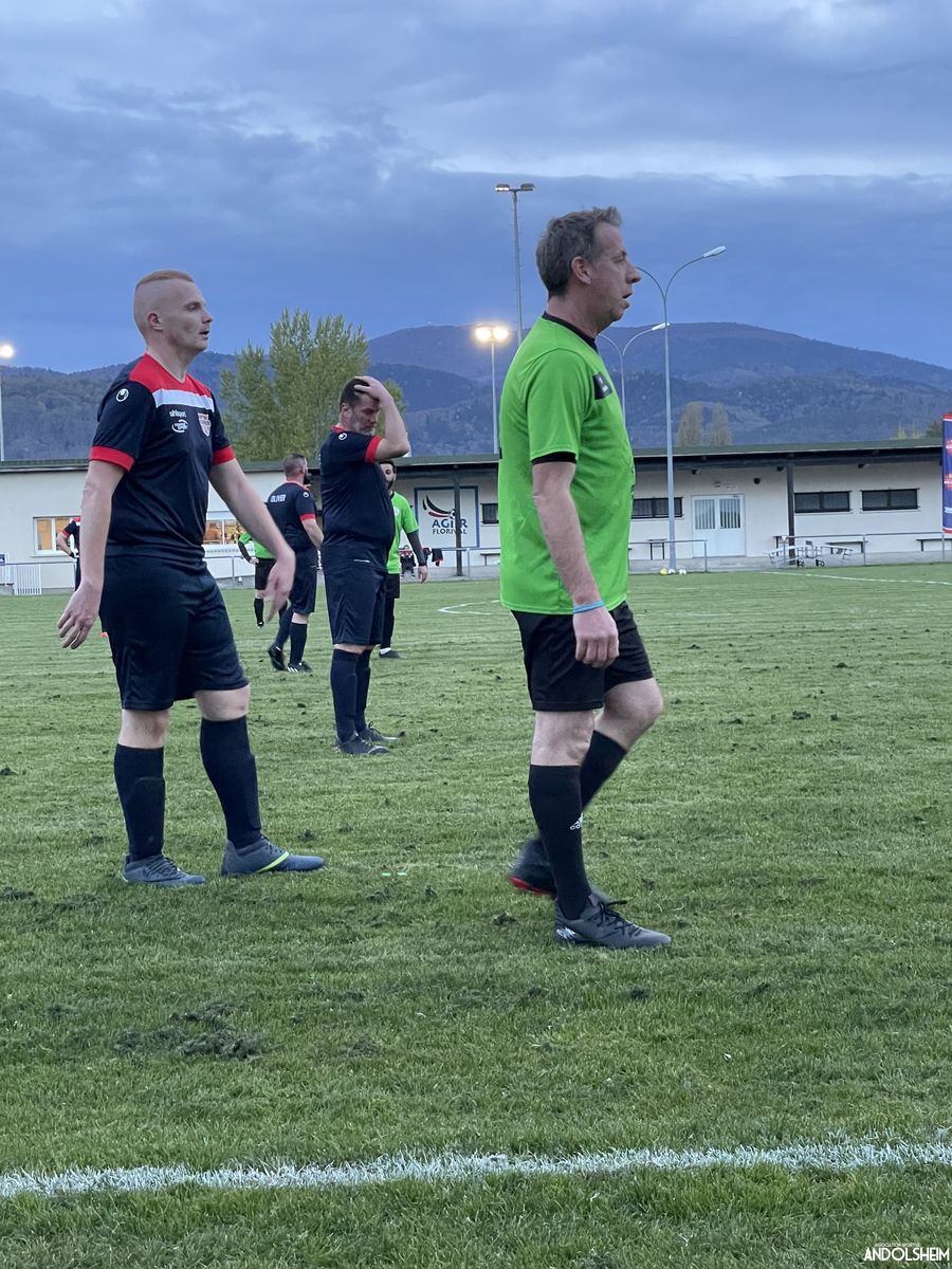 Changement de terrain en deuxième mi-temps pour cause d’éclairage. Le jeu est plutôt à l’ avantage des « Verts », mais la puissance et la vitesse d’un milieu adverse causent beaucoup de soucis. Nous prenons encore deux buts contre le cours du jeu, car les occasions ont bien lieu du coté des « verts ». Gilles L tire à plusieurs reprises en direction de la cage adverse mais ça ne rentre pas. C’est finalement Kamel qui débloquera le compteur lors d’une belle incursion dans les 18 mètres de nos hôtes. A noter aussi, un très beau travail de Didier sur son coté droit qui amènera également du danger dans la défense adverse. Beaucoup d’engagement sur les contacts en cette fin de match, le dos de Dada a bien souffert à cause de la botte secrète du Félicien local. A deux minutes du coup de sifflet final, Alexis S récupèrera une balle face au but adverse resté ouvert mais il n’arrivera pas à cadrer correctement, la balle passera juste au dessus de la barre…. Interviewé à distance par le coach, notre Président déclarera « Un bon match de notre part, on a bien joué au foot par séquences. C’était vraiment agréable de reprendre un peu de plaisir sur un terrain ça faisait longtemps ! Perdu 3 à 1 face à une belle équipe puissante et rapide ».