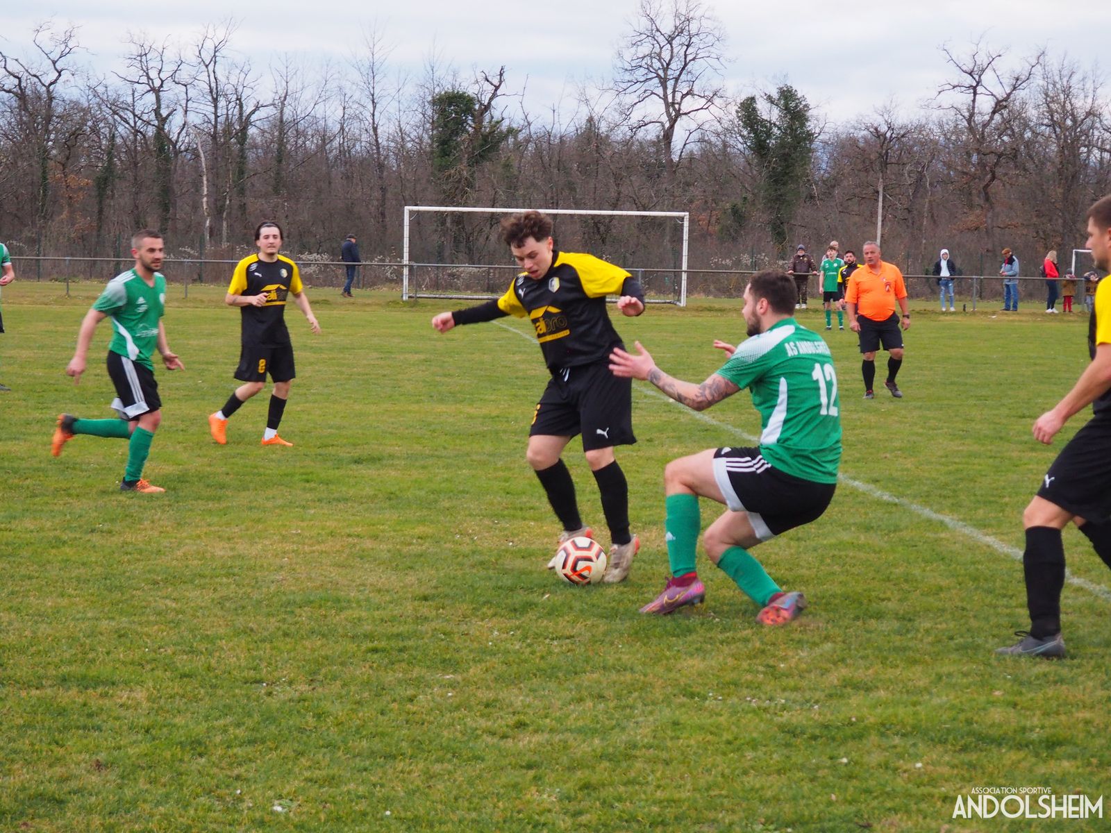 En ce dimanche gris et frisquet, notre équipe fanion se rend à Hirtzfelden. Reprise du championnat. Le FCH nous reçoit sur son second terrain, le terrain d’honneur étant en travaux. L’ASA, décimée par les blessures, aligne une sélection tout de même très honorable et notre coach Gilou est titulaire et capitaine, tandis que Dalep assure le banc. Remercions Jérôme et Laury qui assurent la touche. Et enfin saluons notre président qui a fait le déplacement. Non, pas Emmanuel Macron, l’autre président. Moment solennel avant le coup d’envoi, une minute de silence pour le séisme en Turquie et Syrie. Et ça commence, et plutôt bien. Les verts marquent à la dixième minute, mais l’arbitre de touche voit un hors-jeu. Notre président, oui le bon pas l’autre, est juste dans l’axe et ne voit pas la même chose. La vérité est une question de point de vue. Ce n'est pas un constat footballistique mais philosophique. Bref. À la 17e les jaunes et noirs, plein axe, tirent, Flush la touche, mais elle rentre tout de même, juste sous la barre. Treize minutes plus tard, les locaux remettent ça. Tir en force quasiment dans l’axe, de très loin, et lob. Un peu chanceux franchement. Selon un témoin qui a désiré rester dans l’anonymat le buteur local aurait déposé plusieurs gerbes de fleurs dans une grotte toute proche pour remercier « la grâce divine ». D’autres appellent ça tout simplement « la baraka ». Toujours une question de point de vue. Pause. Sodas nord-américains, cafés sud-américains, boissons alsaciennes. À la 59e, coup de tonnerre, Gabin contrôle habilement dans la surface, tire et marque (deux photos). Allons-nous égaliser ? Un quart d’heure encore et le même Gabin frappe la transversale (photo). Le ballon descend en une fraction de seconde et soulève la craie de la ligne de but ! Selon la VAR, elle n'est pas rentrée, selon la goal line technology elle est rentrée, selon l’arbitre elle n'est pas rentrée, selon Line Renaud, selon Gustave Eiffel, selon le président René Coty…. C’est fatigant. C’est fatigant, parce que maintenant, que le match est narré, on peut mentionner, on doit mentionner, que ces 90 minutes interminables ont été émaillées d’arrêts de jeu intempestifs, de fautes nombreuses, d’insultes copieuses, de provocations permanentes, de réactions injurieuses… Je vous colle tout le dictionnaire des synonymes du mot incivilités ou bien vous avez compris ? Score final 2 à 1 pour les locaux. Et pas encore le printemps, mais déjà beaucoup de noms d'oiseaux… Et ça vaut pour les deux formations. Messieurs, vous avez réalisé une phase "Aller" formidable, vous aviez à noël dernier dix fois plus de points qu’au noël précédent ! Et je ne parle même pas de l’aventure fantastique de la coupe qui est encore en cours ! Alors on positive ! Vous êtes sixième au championnat et au cinquième tour de la coupe d’Alsace : vous nous avez fait vibrer dans la joie et la bonne humeur d'aout à novembre, elle est pas belle la vie à l’ASA ?