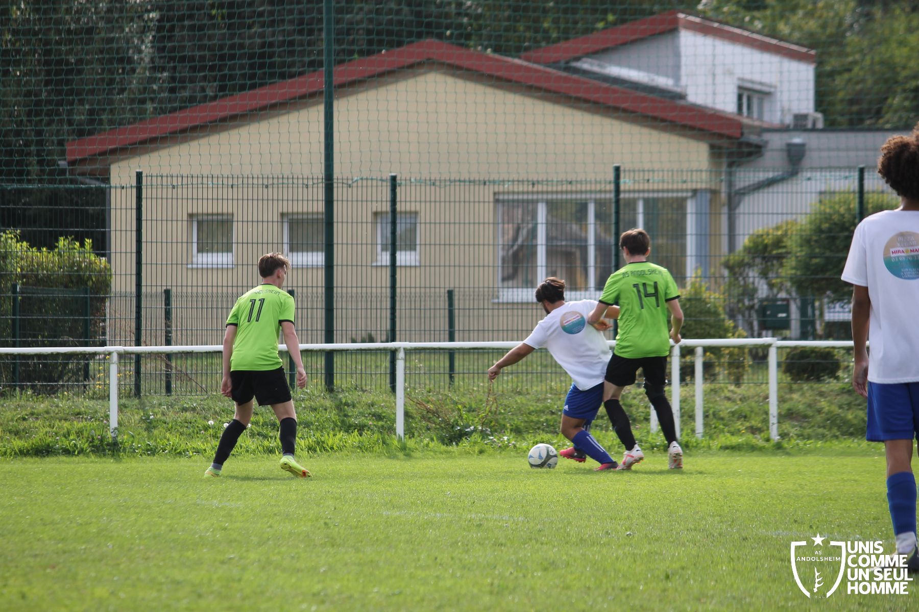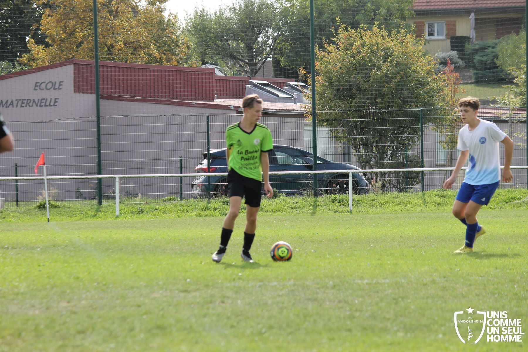 Le même Antonin, dont s’était le retour après son opération des croisés, nous gratifiait d’une barre transversale suite à un superbe coup franc excentré côté gauche, mais c’est finalement la pâte gauche de Kaïs, dans un grand jour, qui doublait le score dans la même situation de coup de pied arrêté.