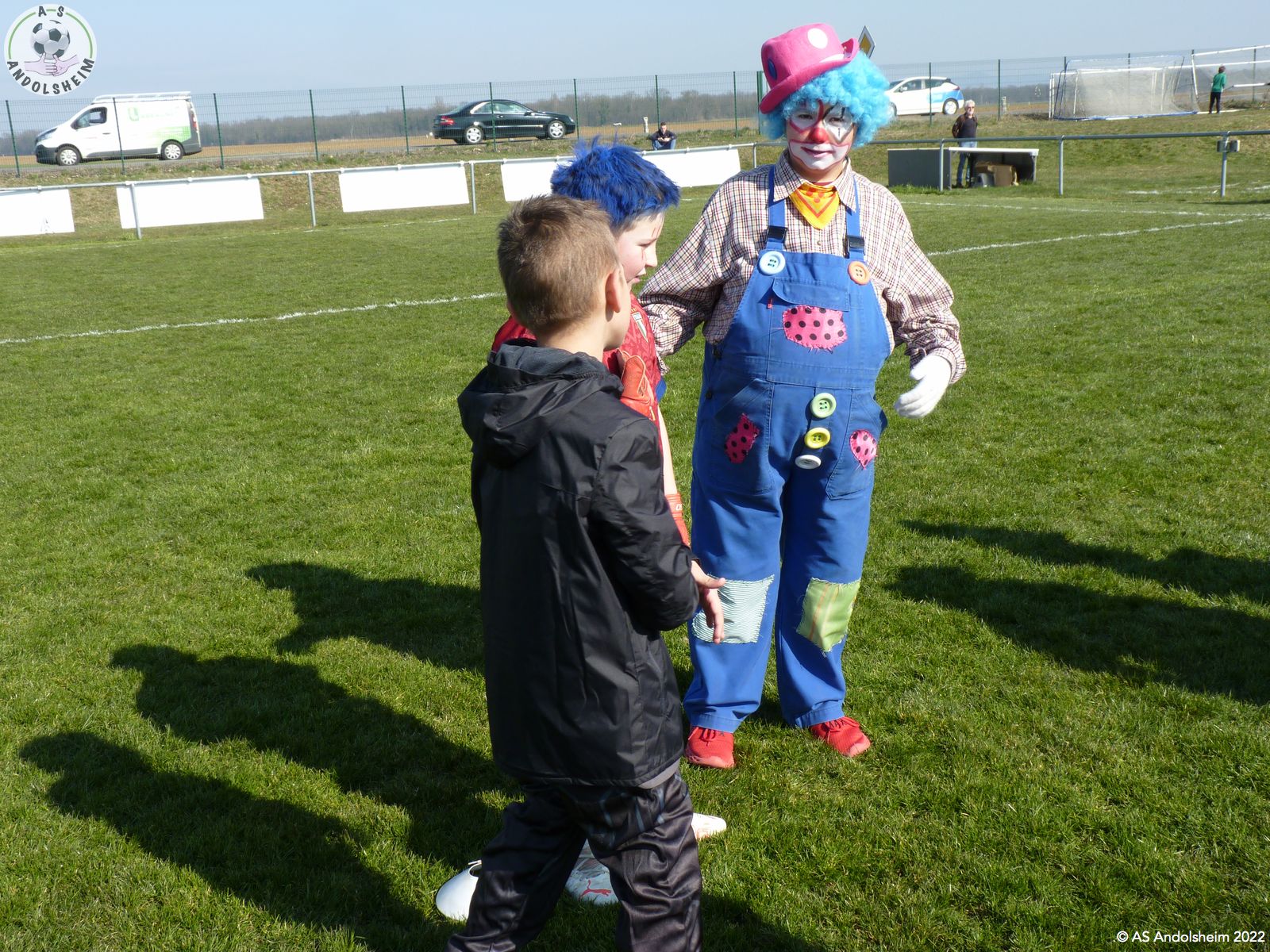Le plateau s'est déroulé sous un beau soleil printanier avec la présence de Paulo le clown alias Louis Abraham joueur U13 qui a assuré l'arbitrage ainsi que Joshua Attiach également un joueur U12.